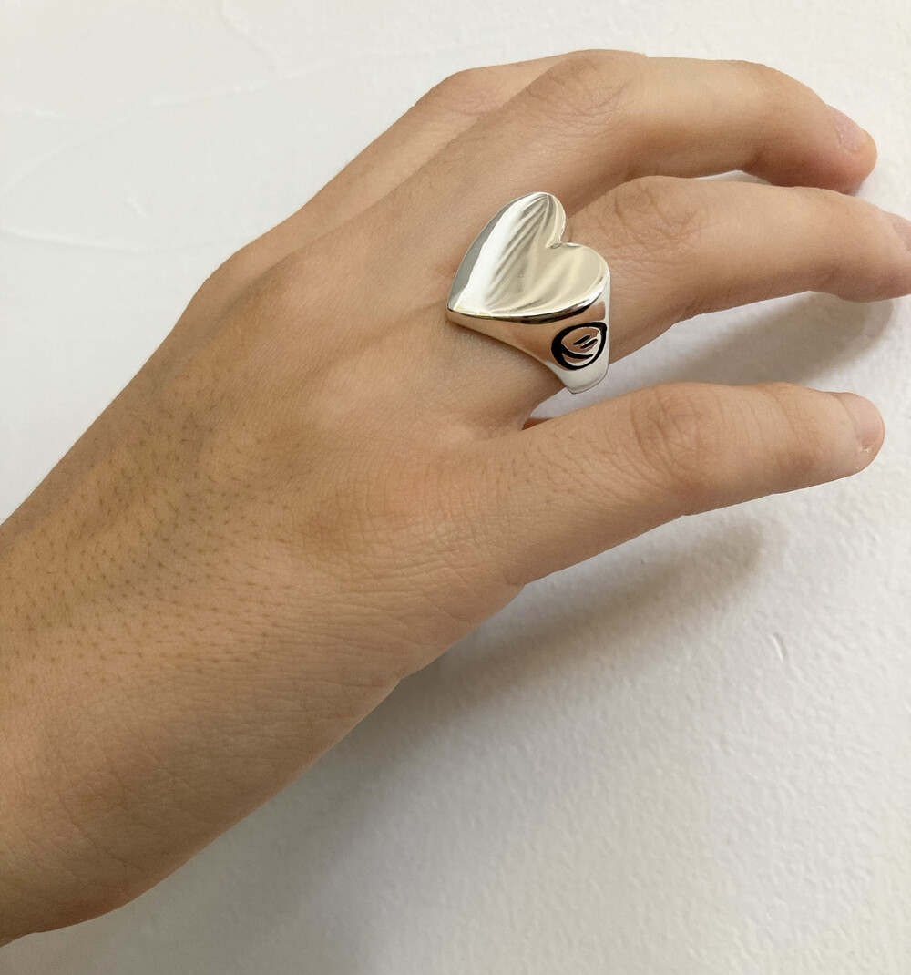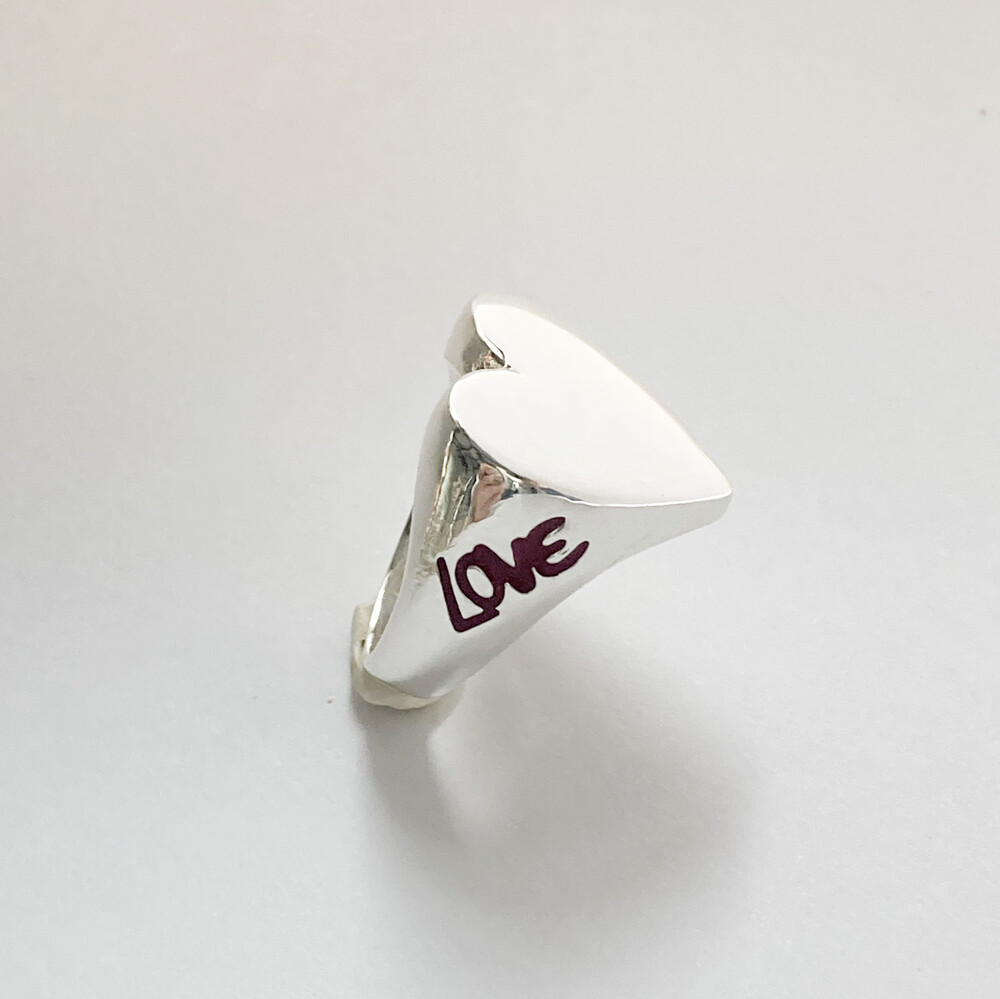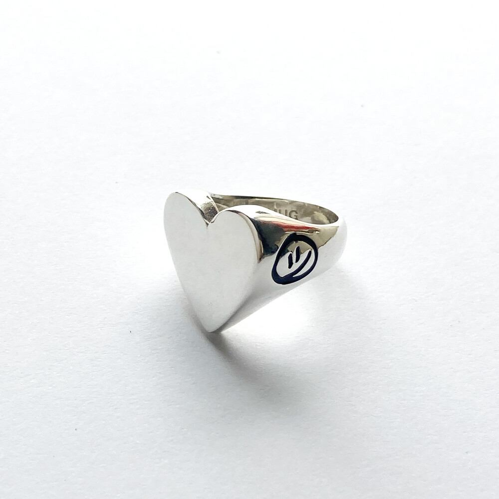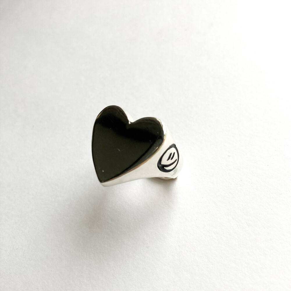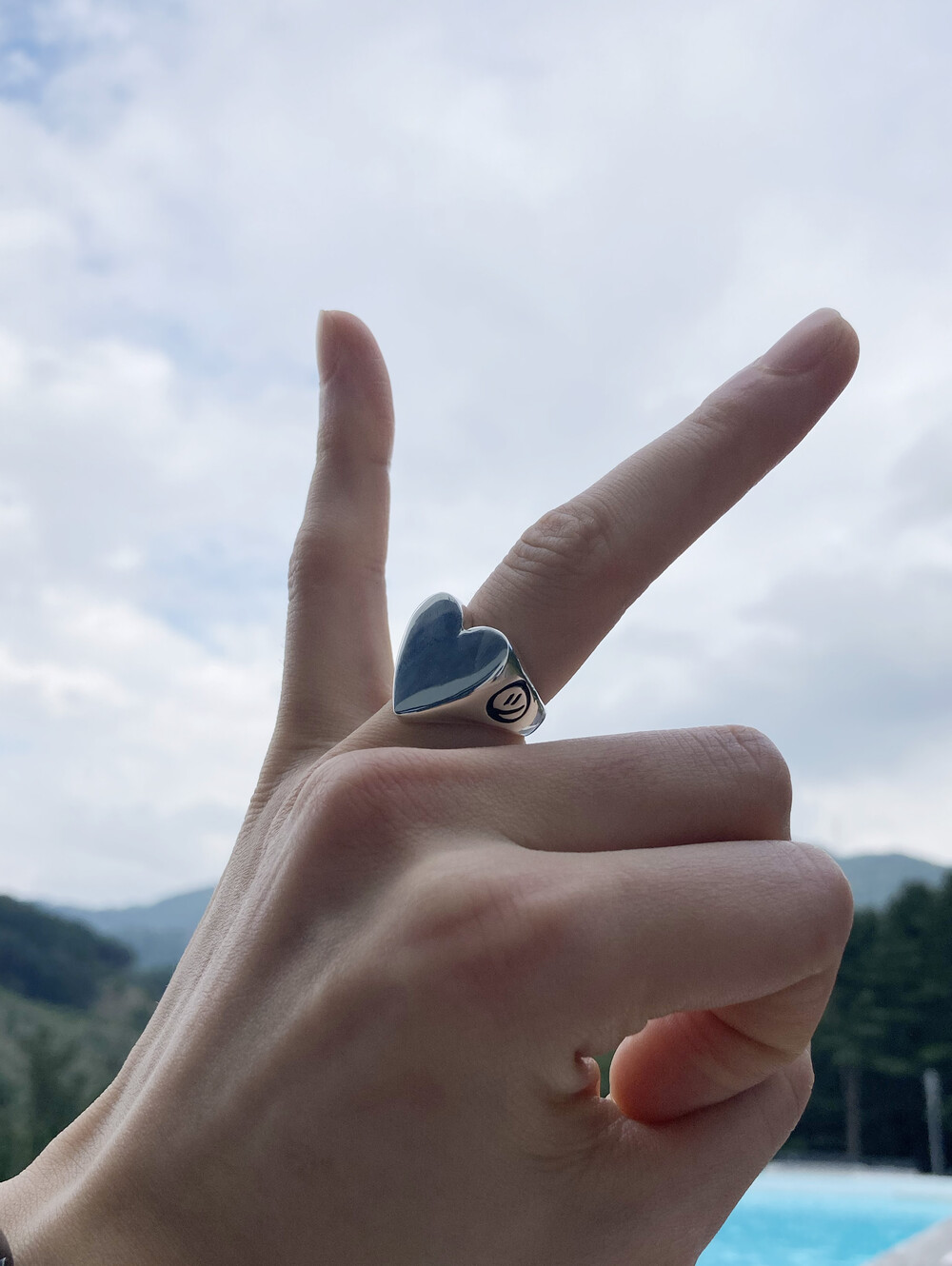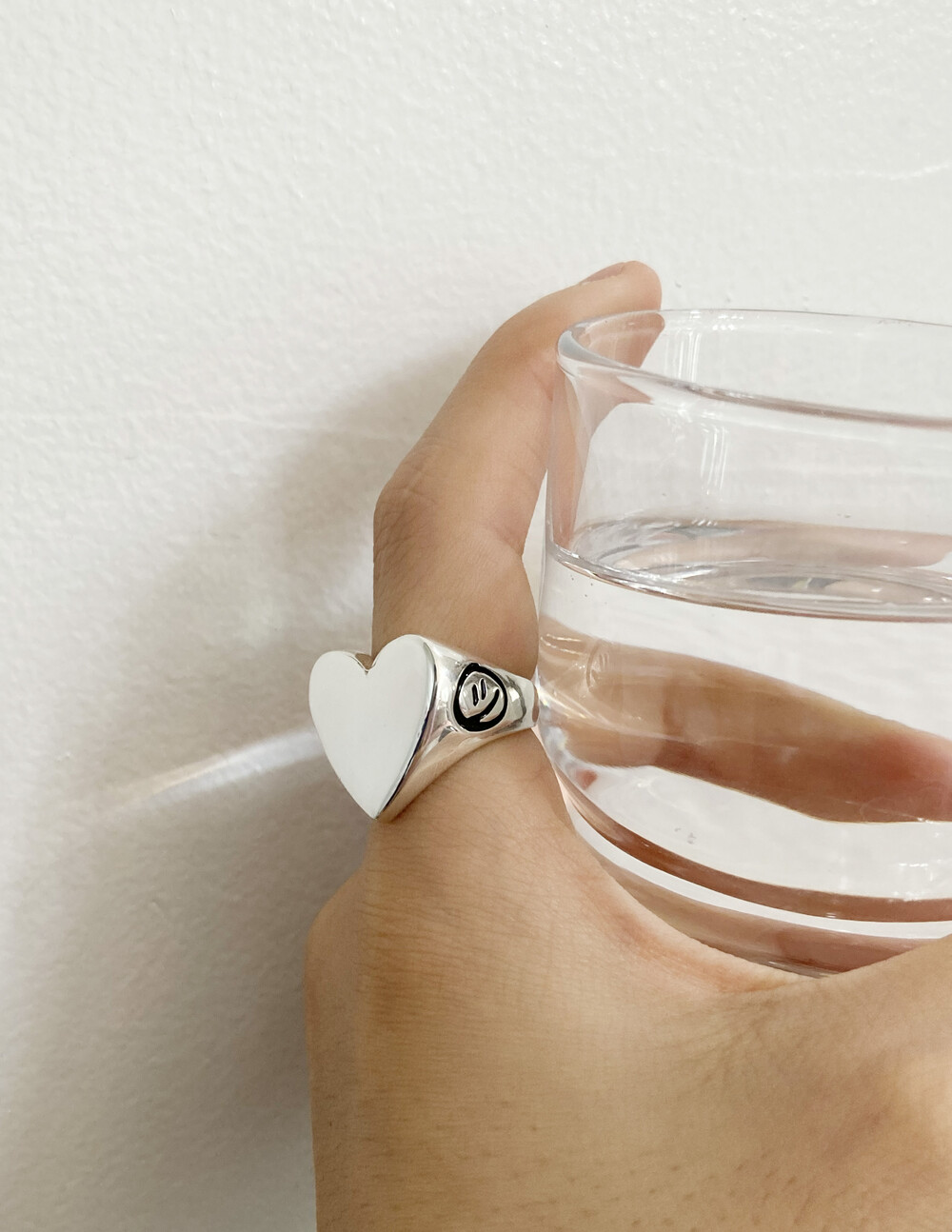 큰 하트 모양의 반지의 양옆으로 손으로 그린 듯한 스마일 페이스와 love가 그려져 있습니다.