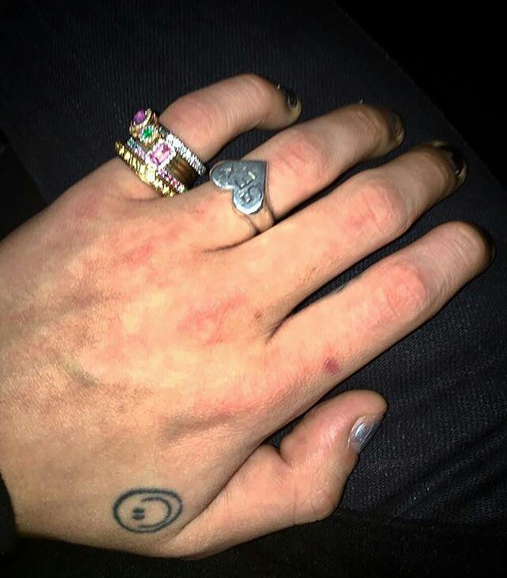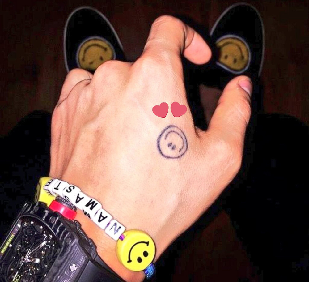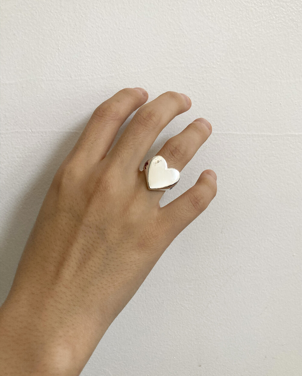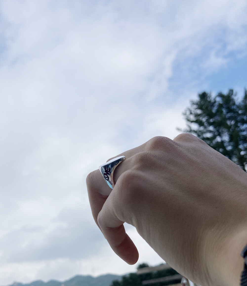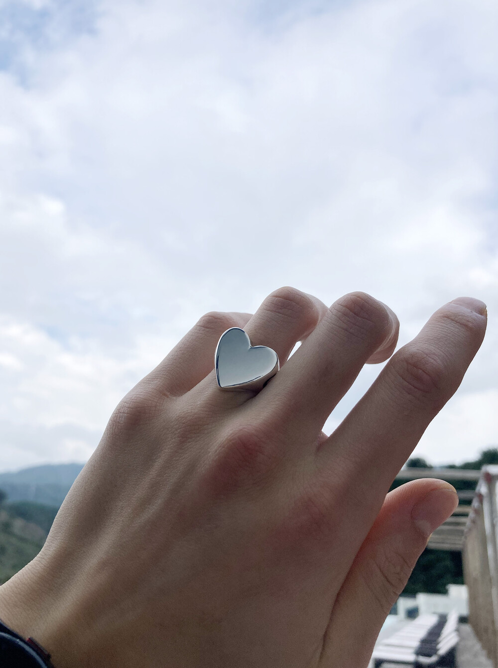 큰 하트 모양의 반지의 양옆으로 손으로 그린 듯한 스마일 페이스와 love가 그려져 있습니다.