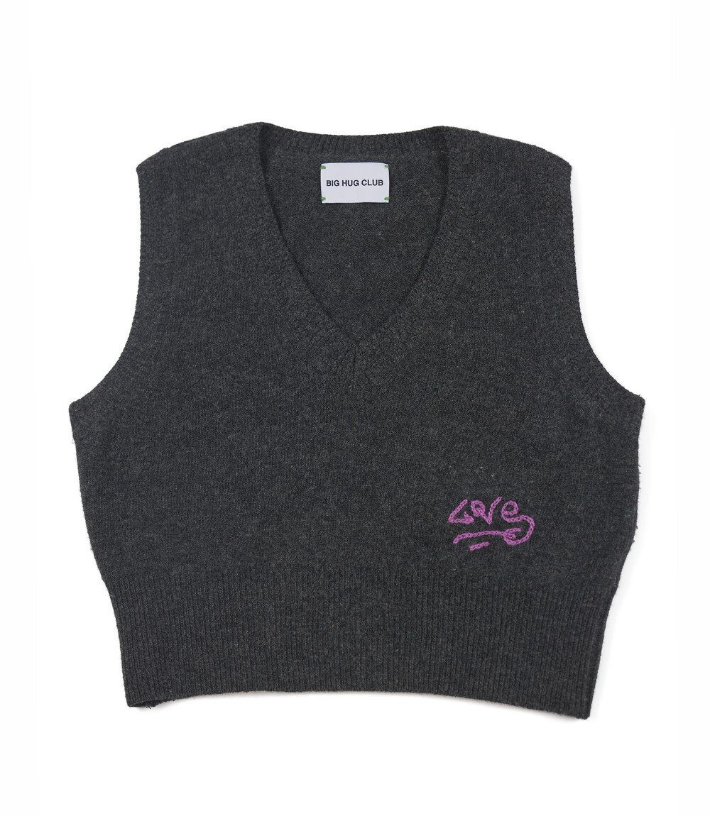 'LOVE YOURSELF'_CHARCOAL GRAY KNIT VEST