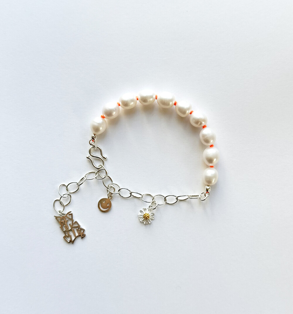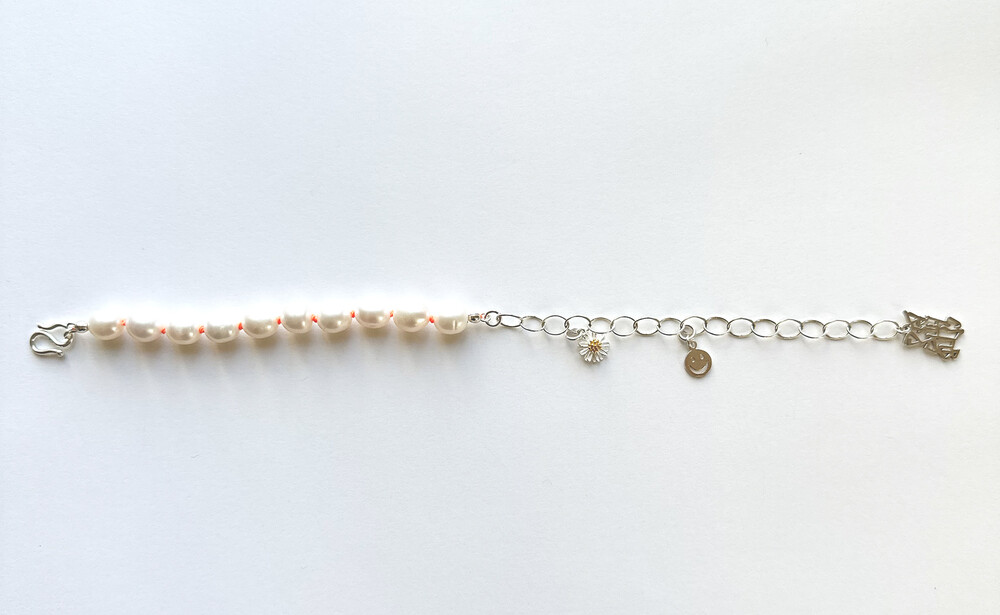 발찌는 진주와 실버의 구성으로 작은 데이지와 스마일이 기본 참으로 달려있습니다.