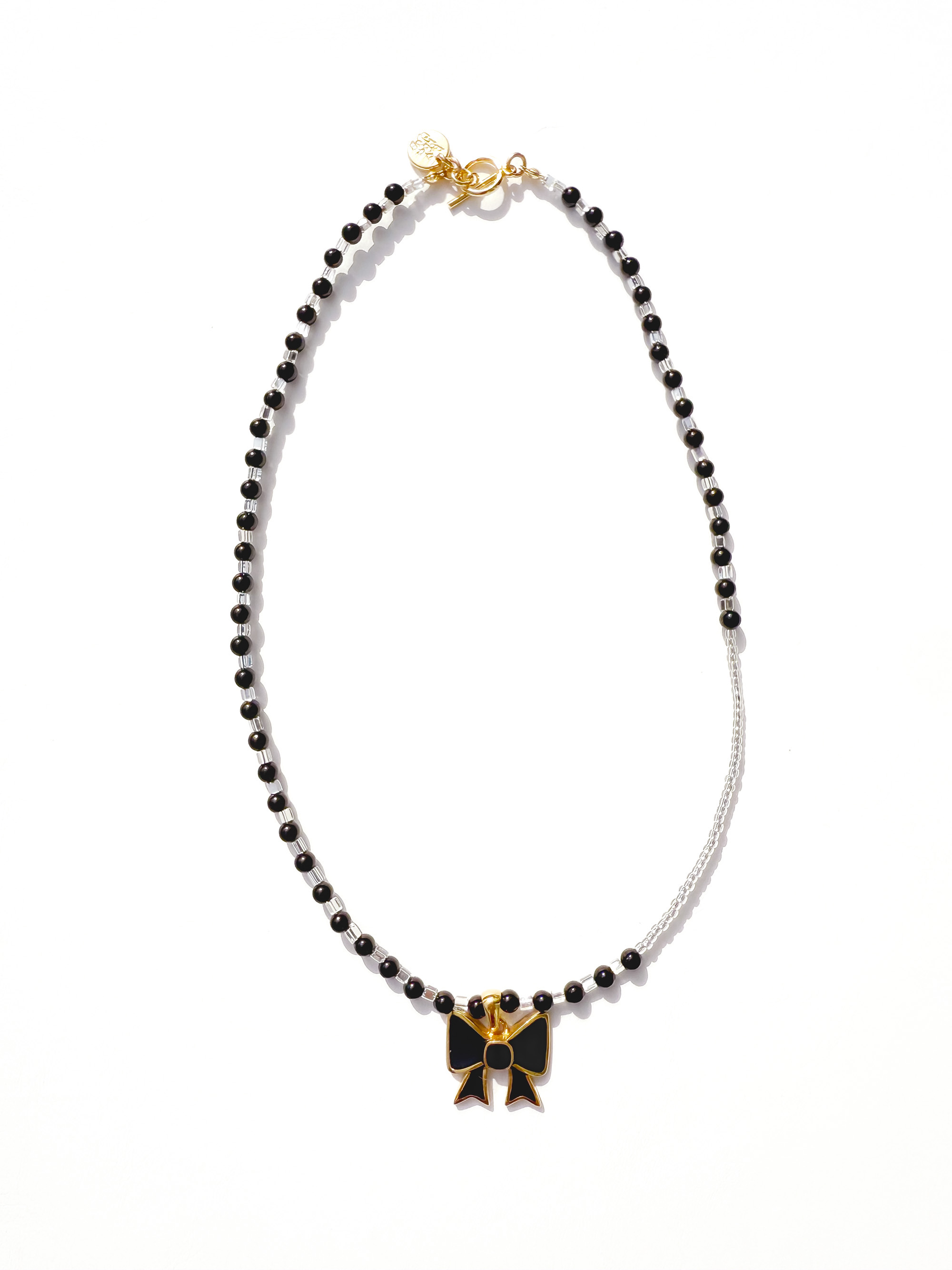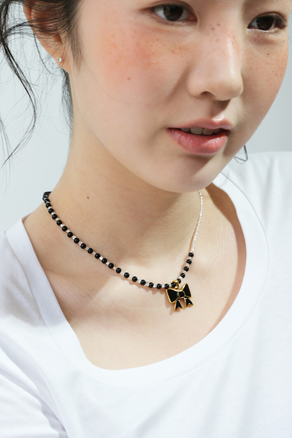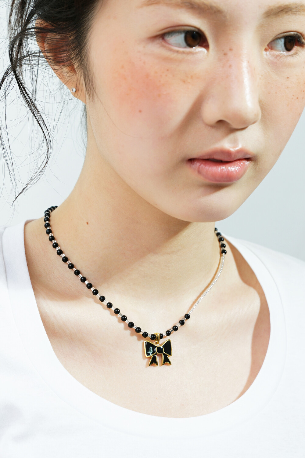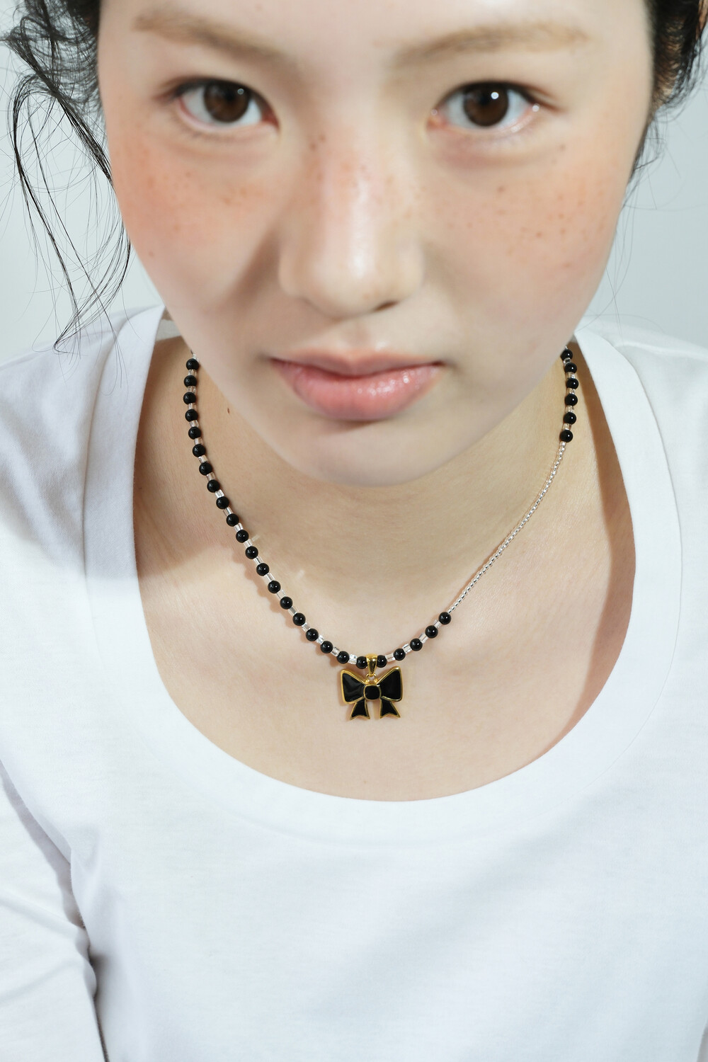블랙 에폭시 보우 펜던트가 포인트가 되는 네크리스입니다.