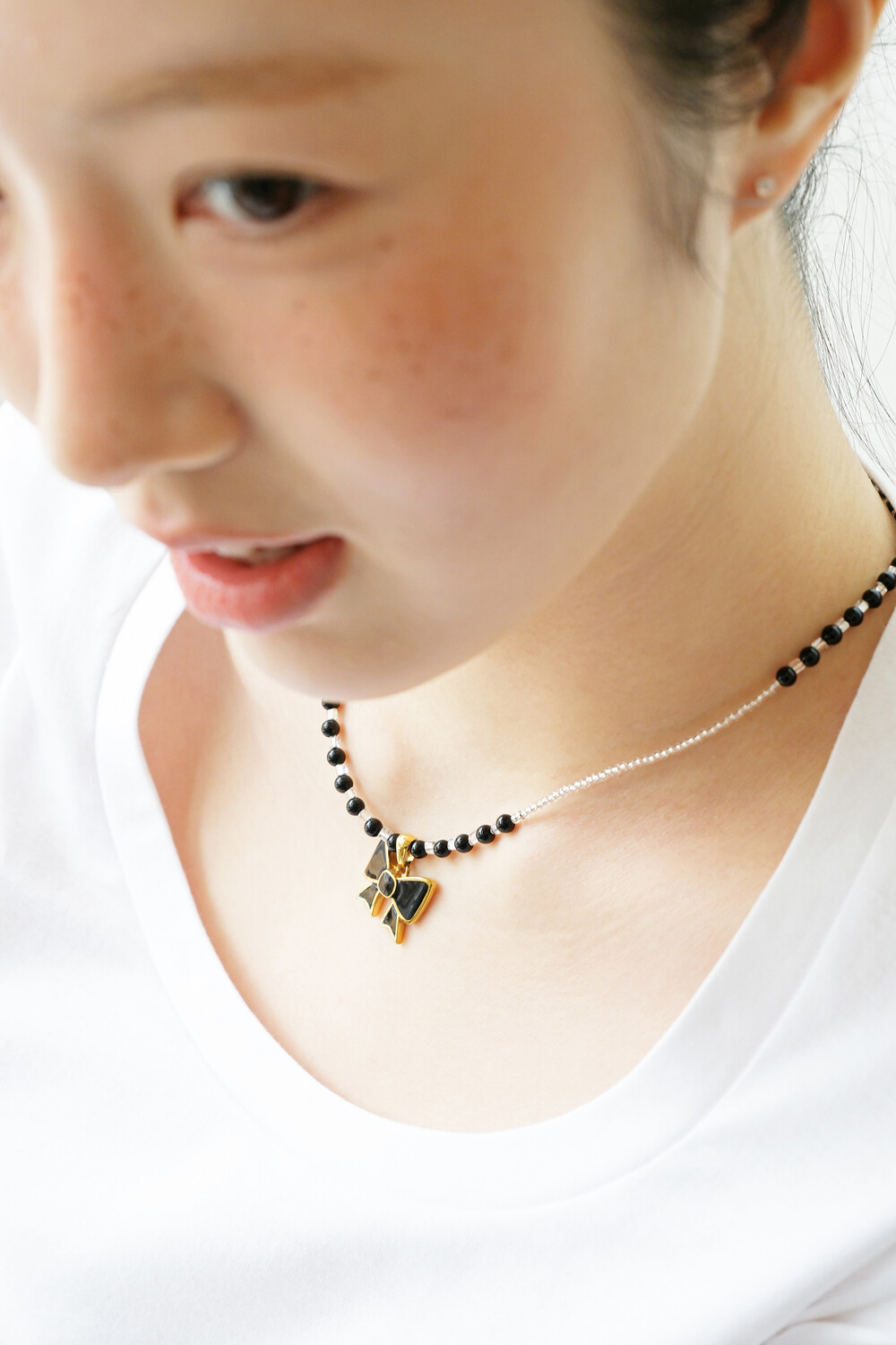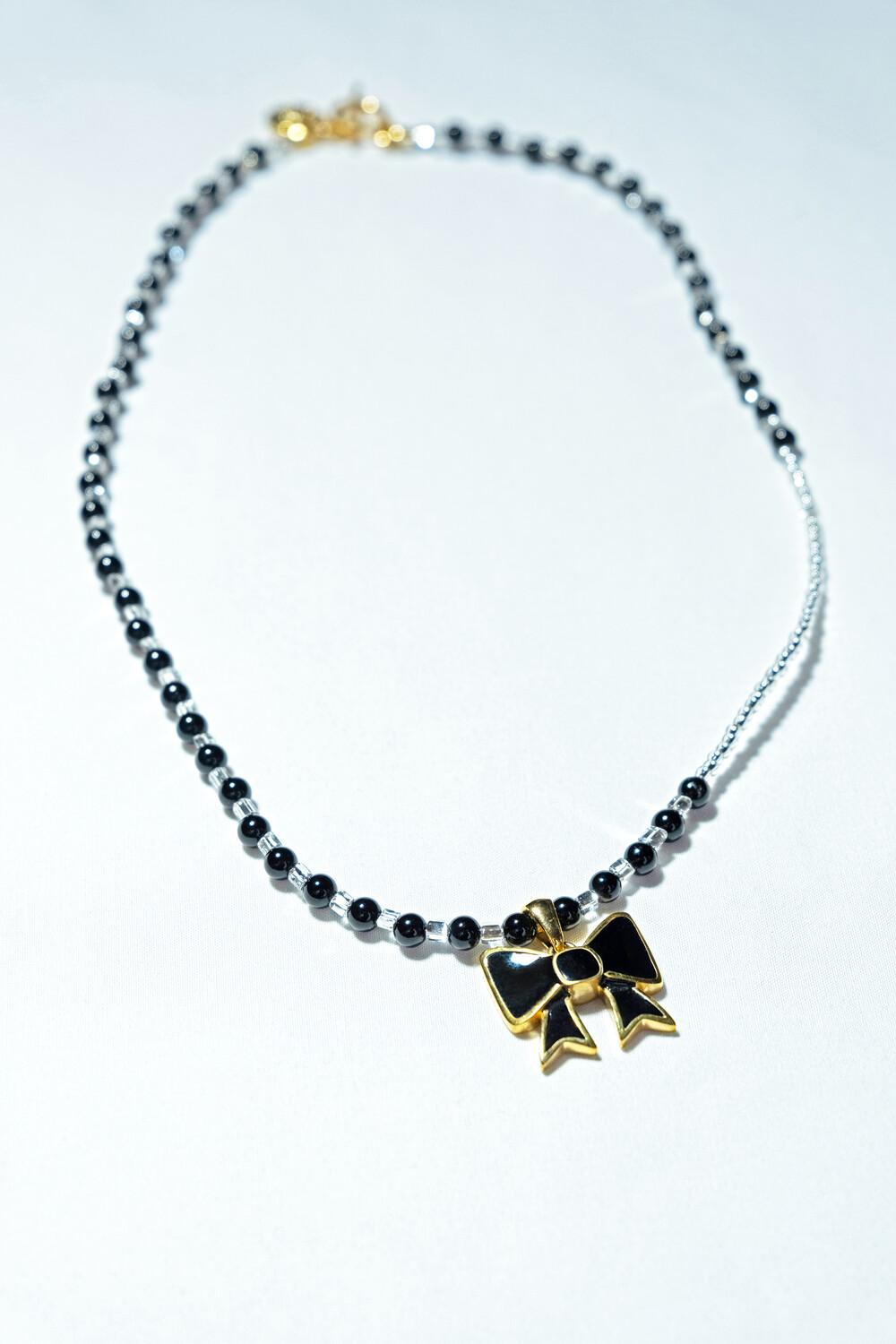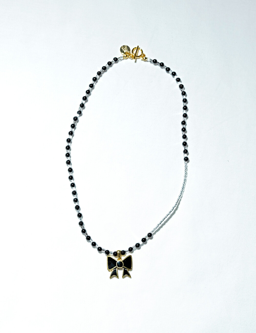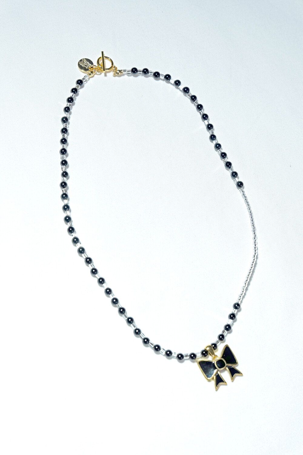블랙 에폭시 보우 펜던트가 포인트가 되는 네크리스입니다.