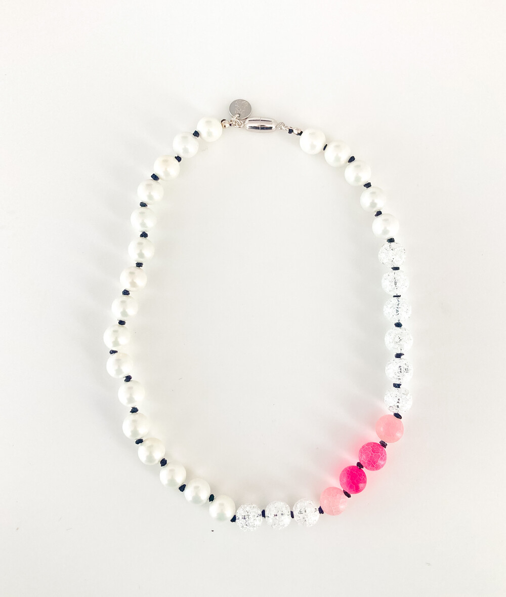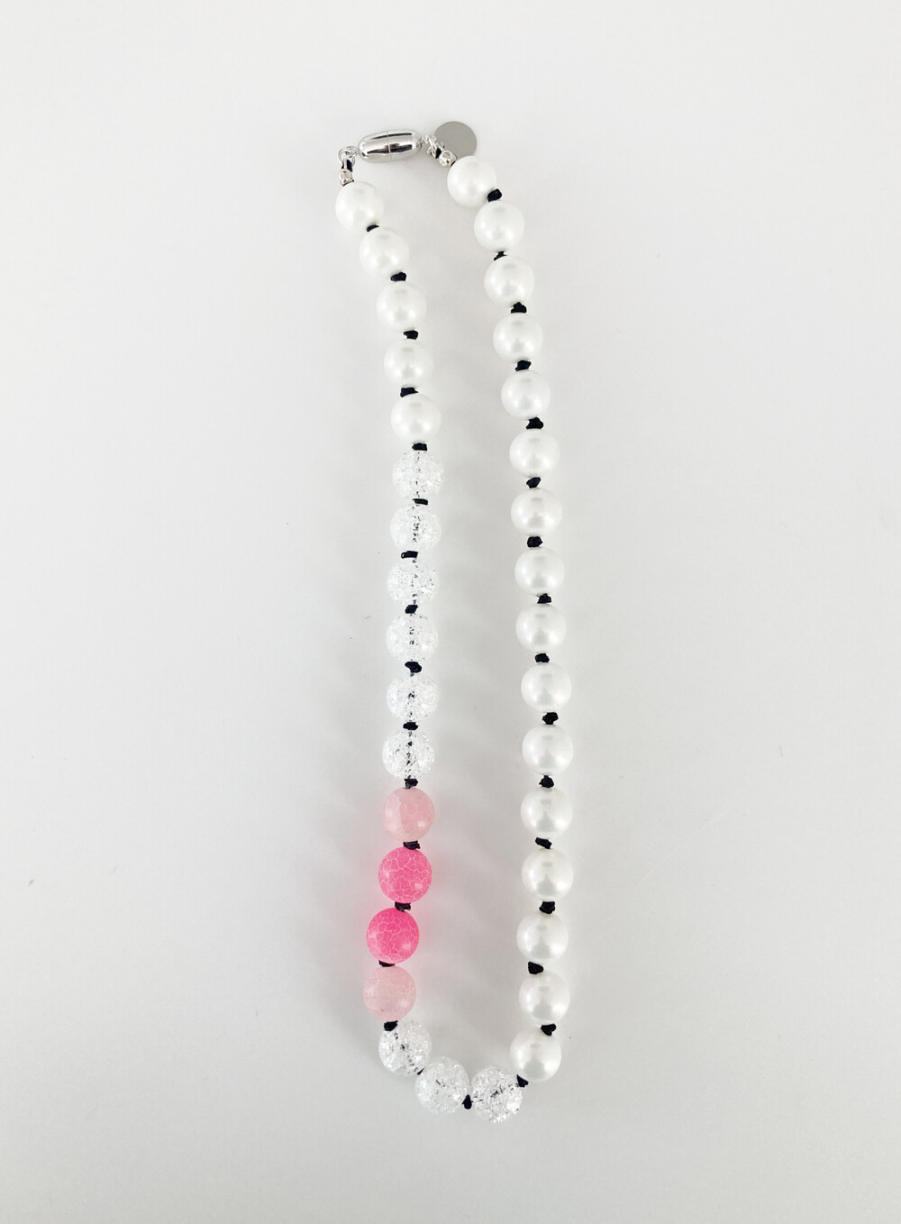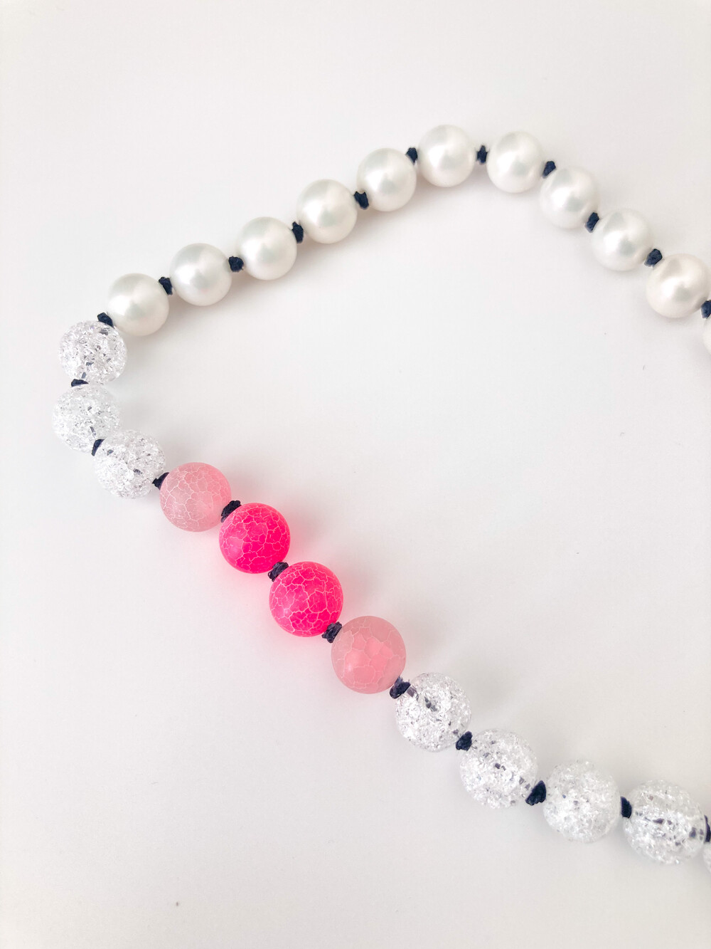 핵 진주와 사탕같은 색감의 원석으로 구성돤 목걸이입니다.