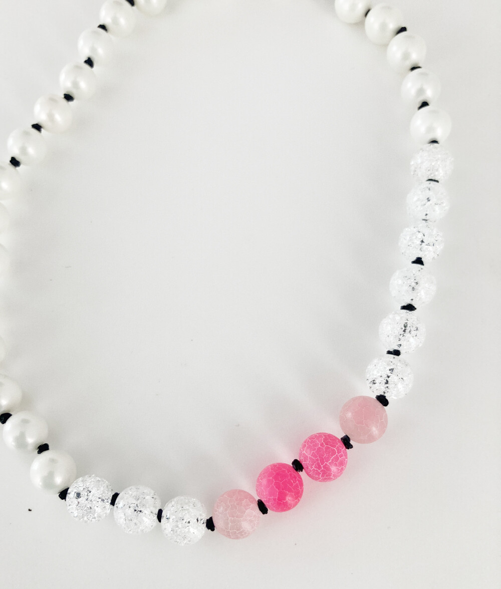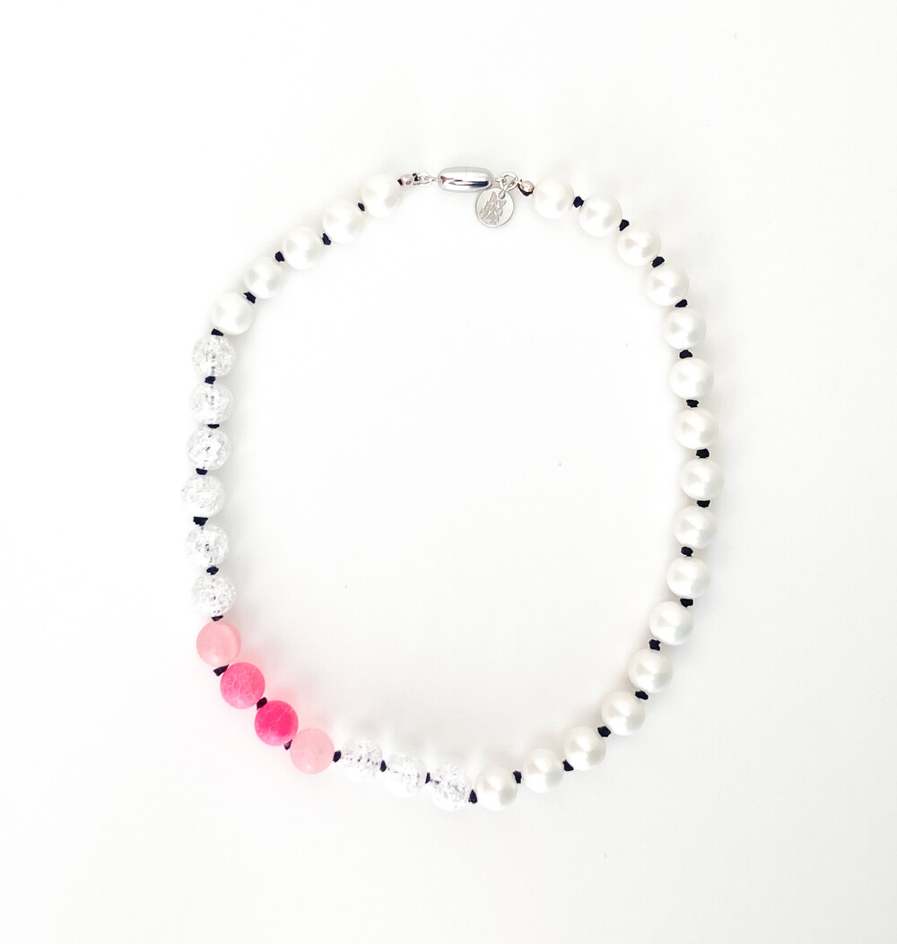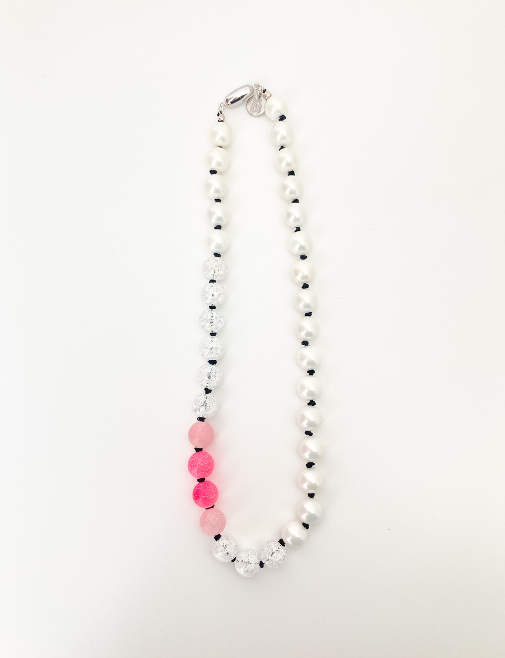 핵 진주와 사탕같은 색감의 원석으로 구성돤 목걸이입니다.