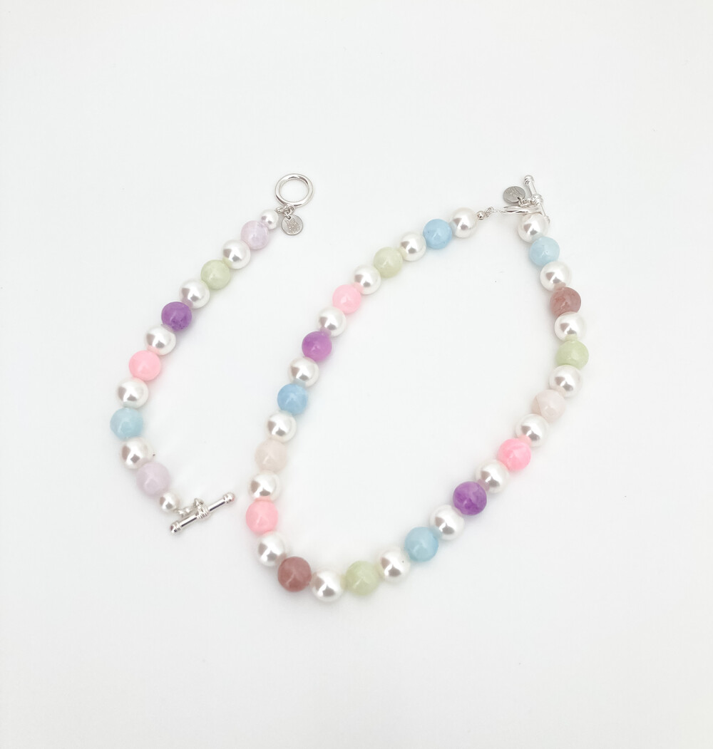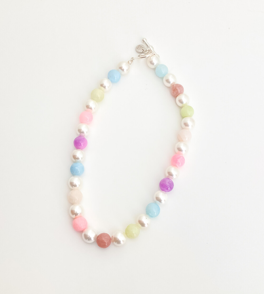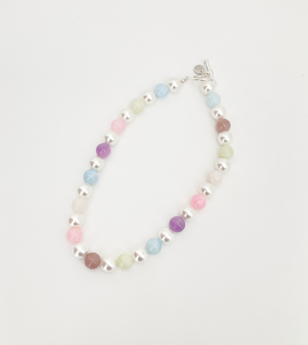 핵 진주와 사탕같은 색감의 원석으로 구성돤 목걸이입니다.