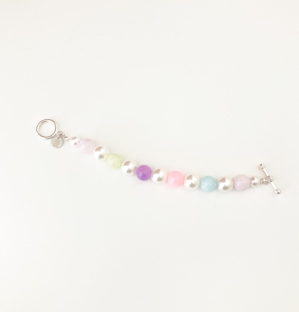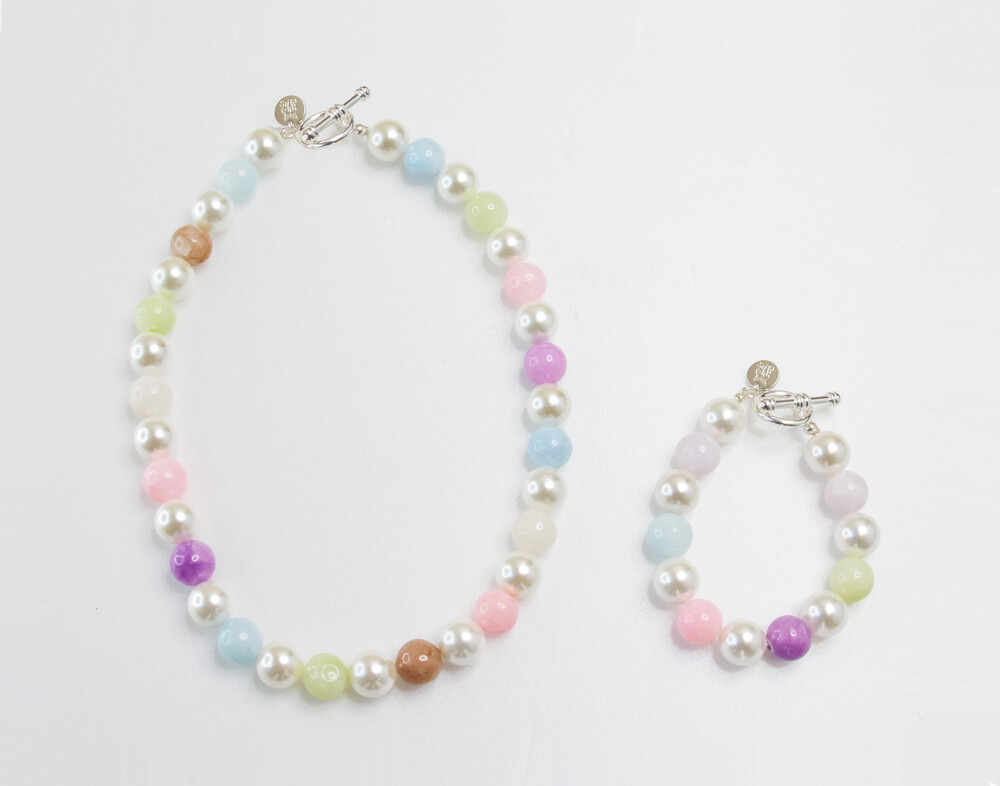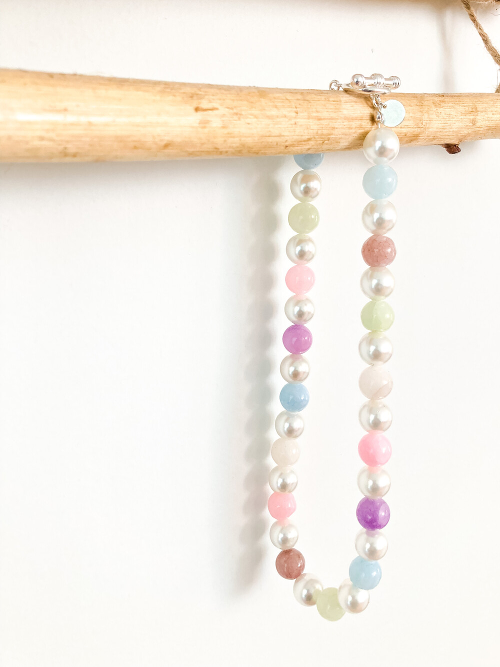핵 진주와 사탕같은 색감의 원석으로 구성돤 목걸이입니다.