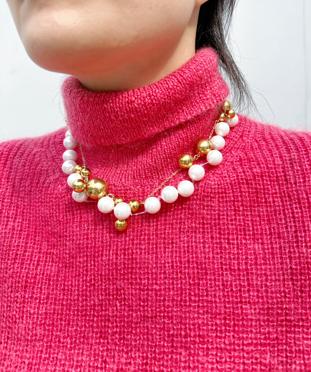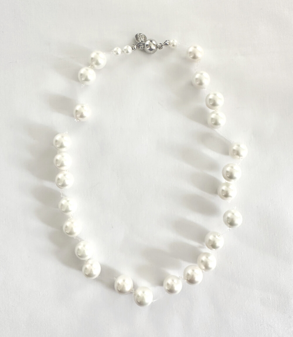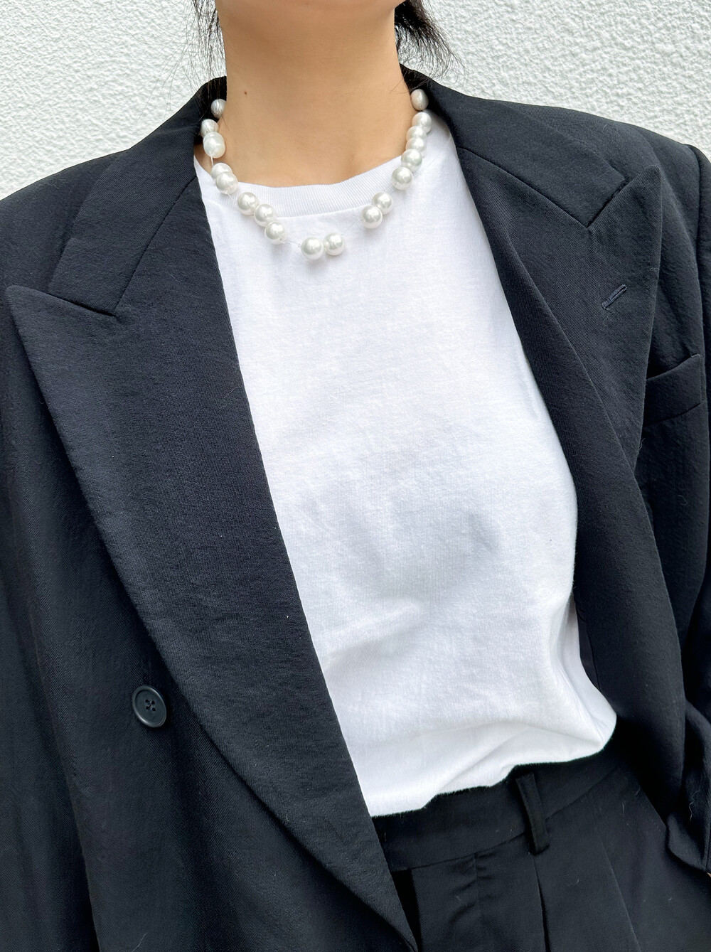 투명한 두꺼운 낚싯줄이 불규칙한 간격으로 띄워 묶은 자유로운 형태의 목걸이로 유니크한 아이템입니다.