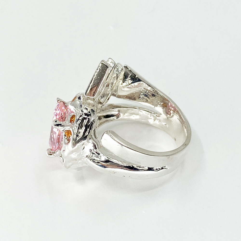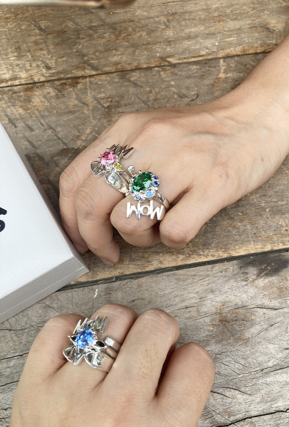 색상이 있는 큐빅과 은의 조화로 알 물림 형식의 방법으로 제작되어 더욱더 신비로운 내추럴한 형태를 가집니다.제작 방식의 특성상 자연스러운 울퉁불퉁한 표면을 가지며 모든 제품 하나하나 다 다른 형태를 가집니다.
