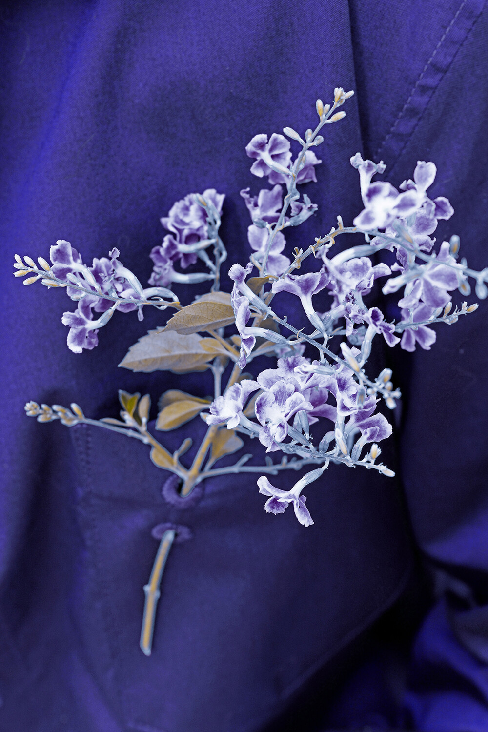 포켓의 작은 구멍 디테일을 활용해 리본이나 꽃을 더하면