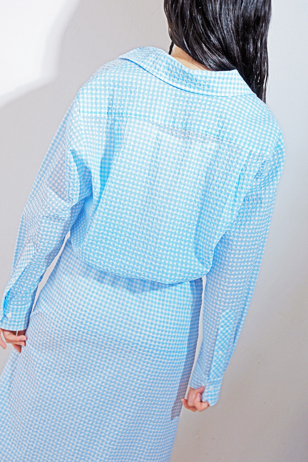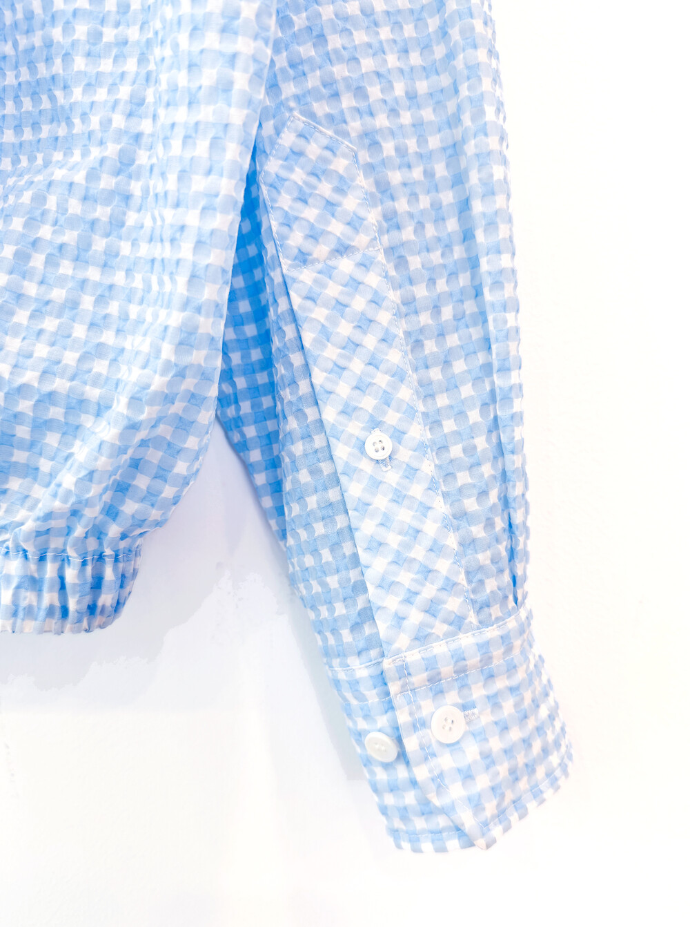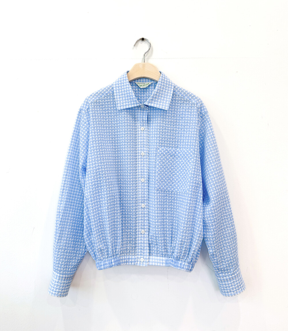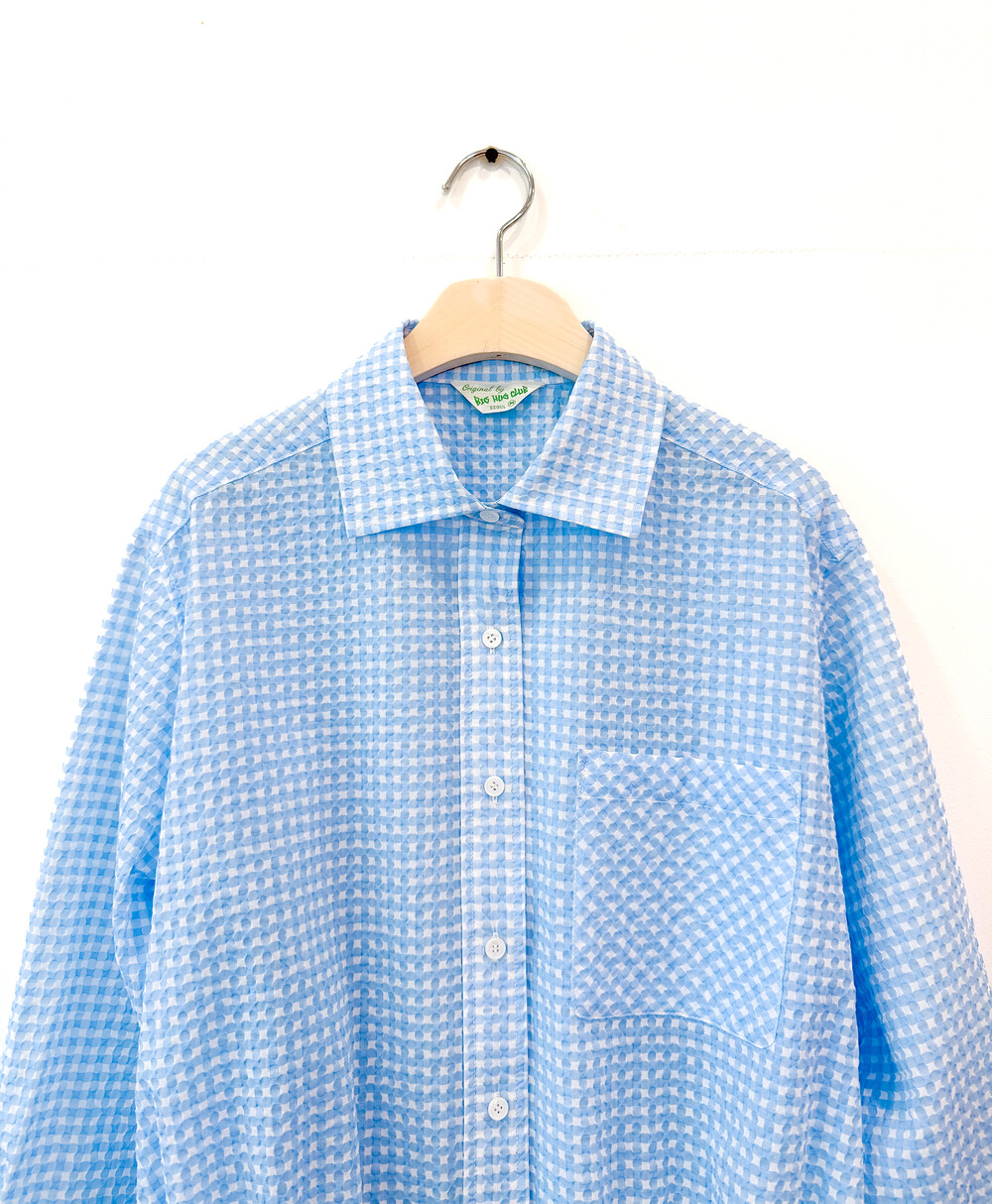 Gingham Seersucker Shirt- Sky Blue