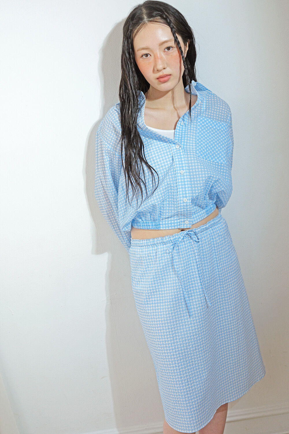 가볍고 산뜻한 깅엄 시어서커 셔츠입니다.