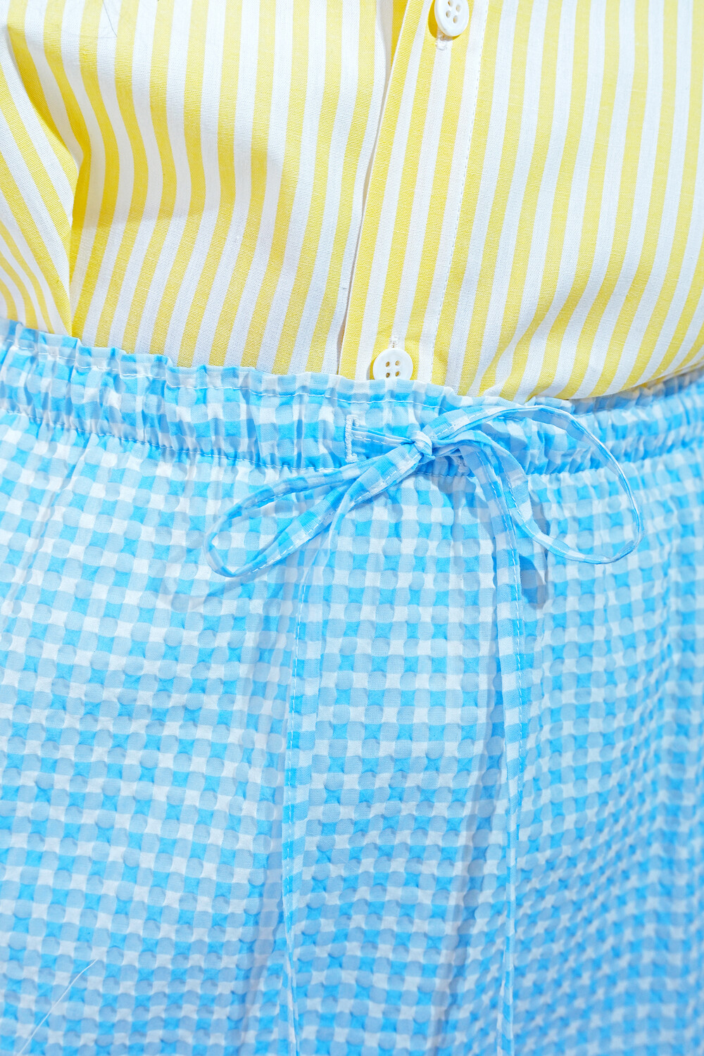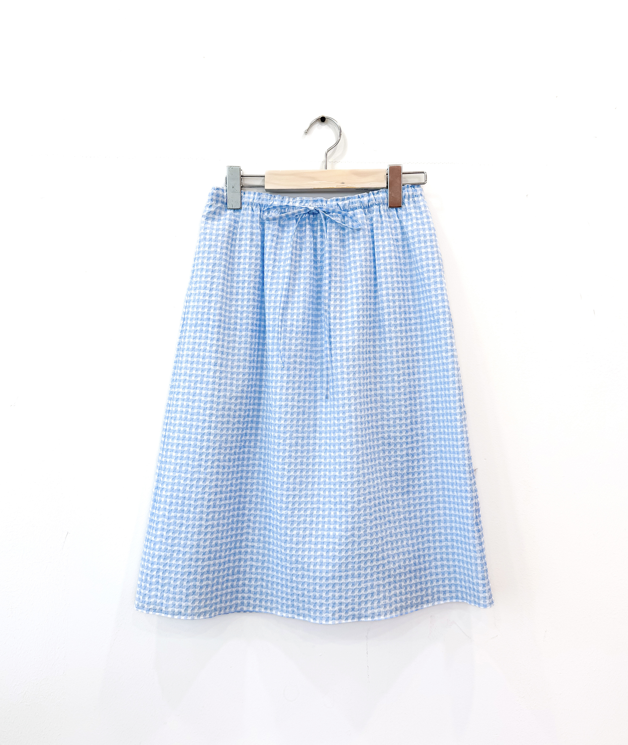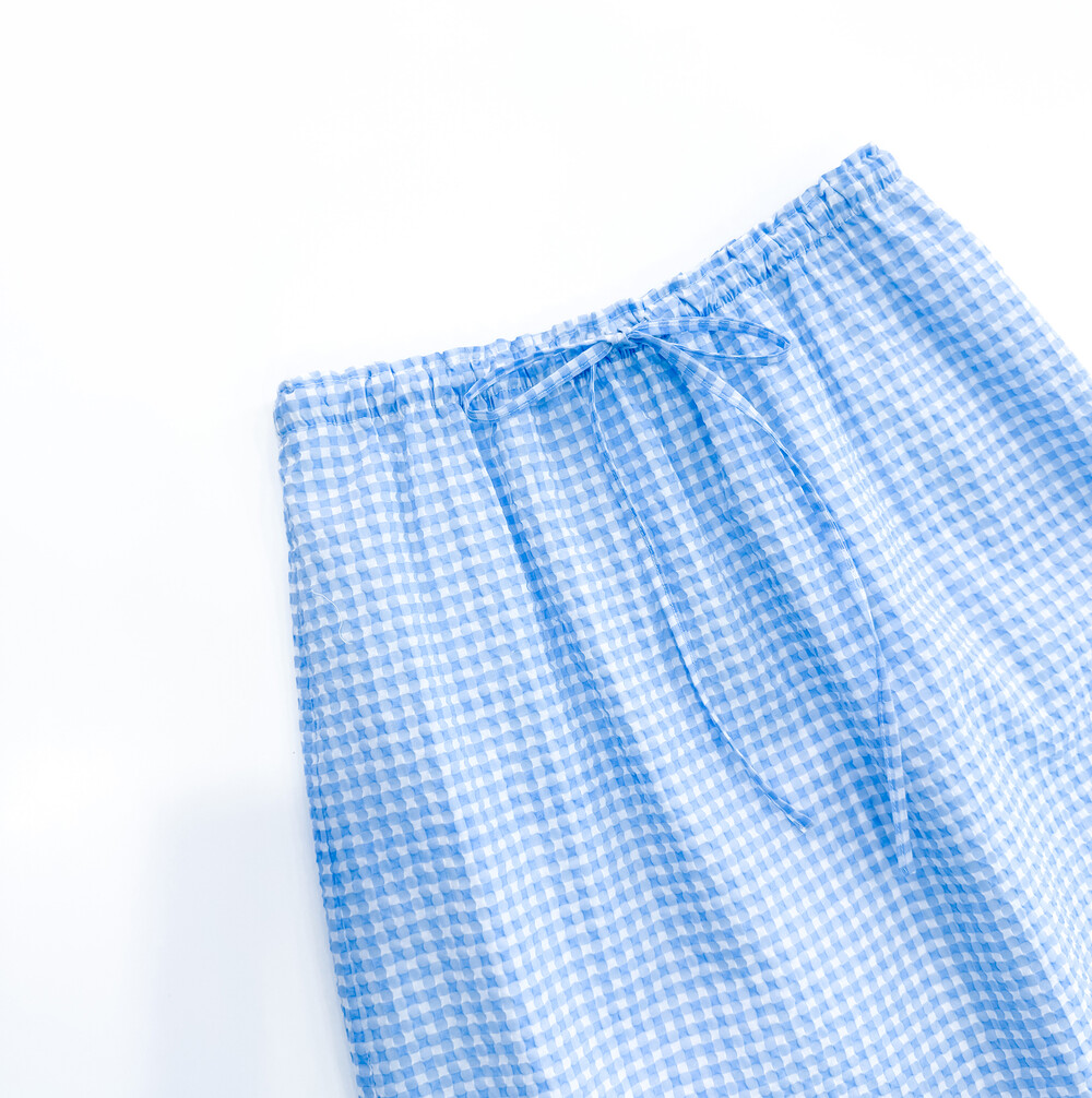가볍고 청량한 블루 톤의 깅엄 시어서커 스커트입니다.