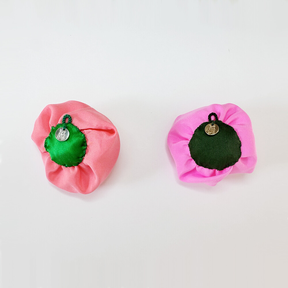 하나하나 손으로 만든 장미로 장식된 핸드메이드 실크 펜던트입니다.
