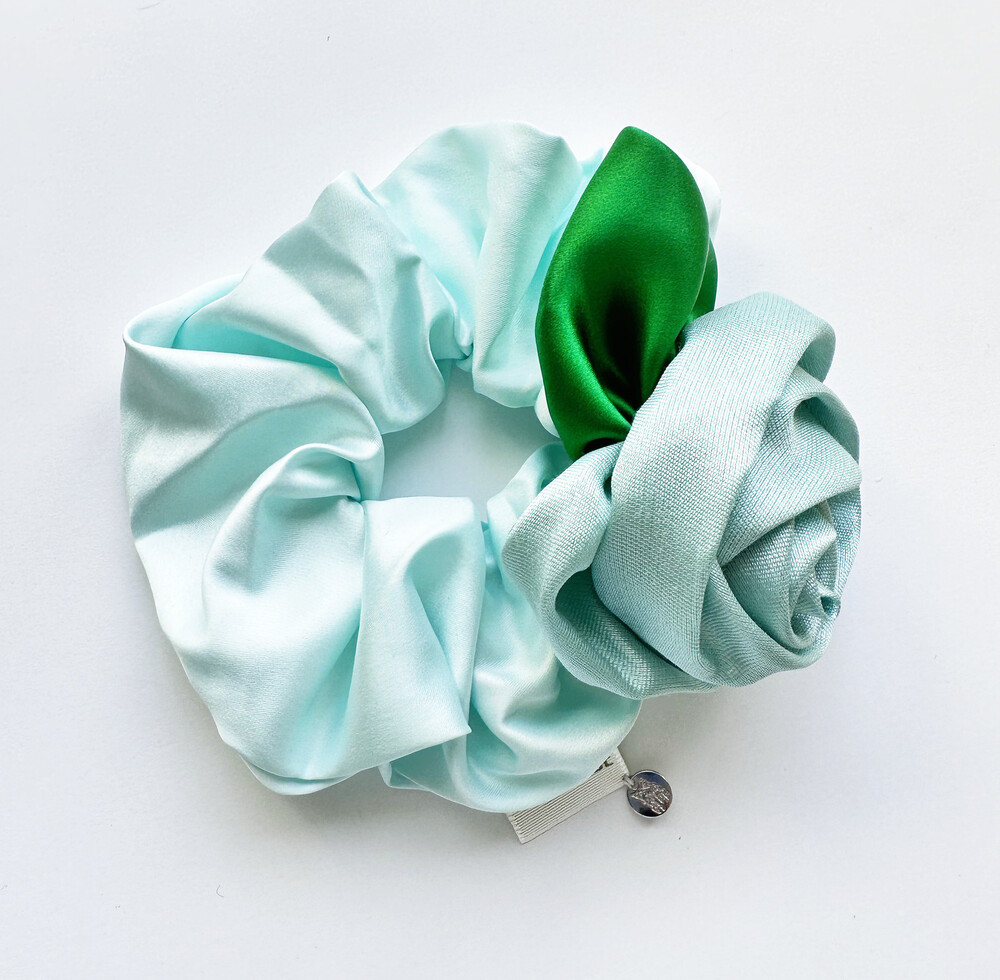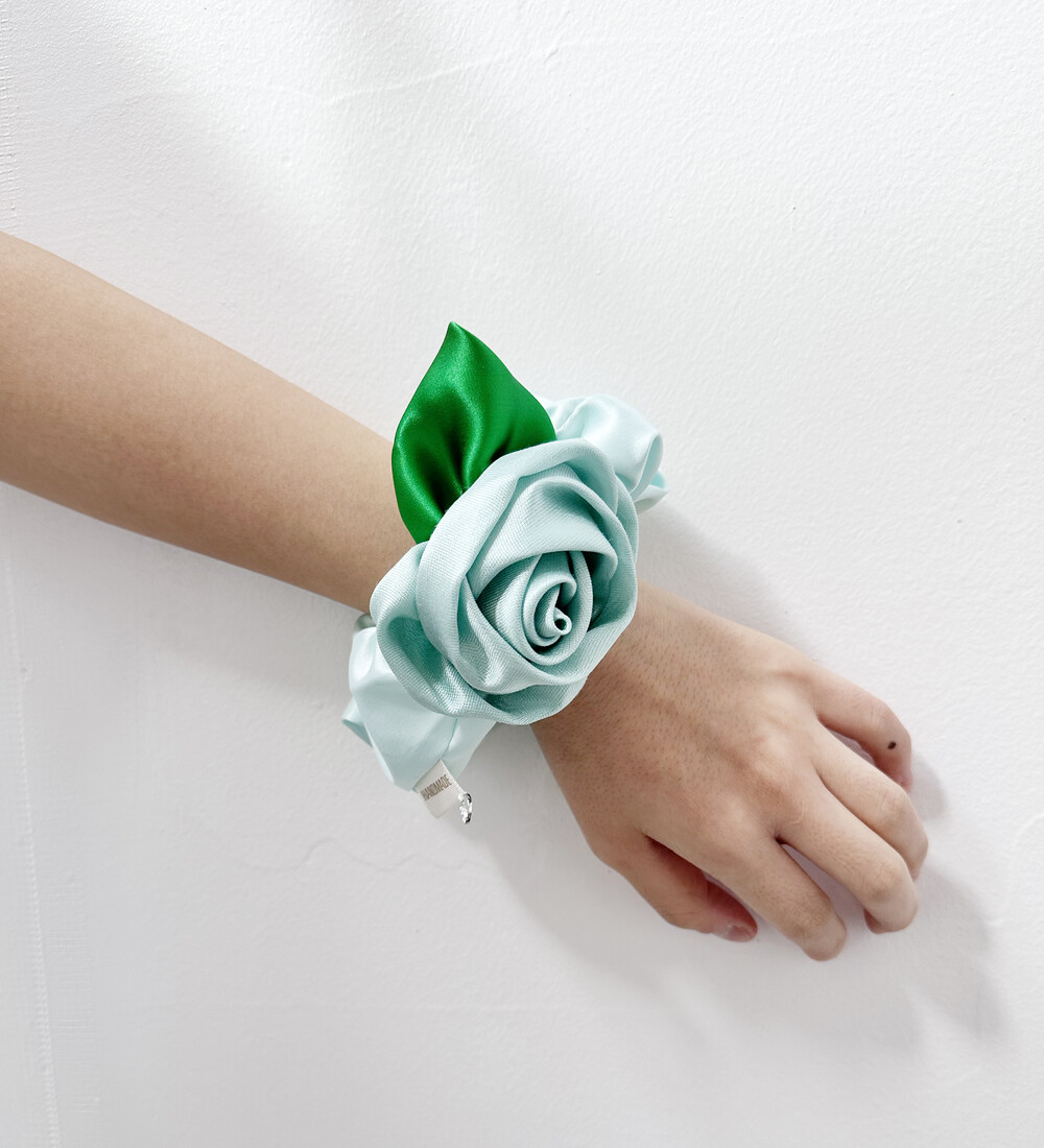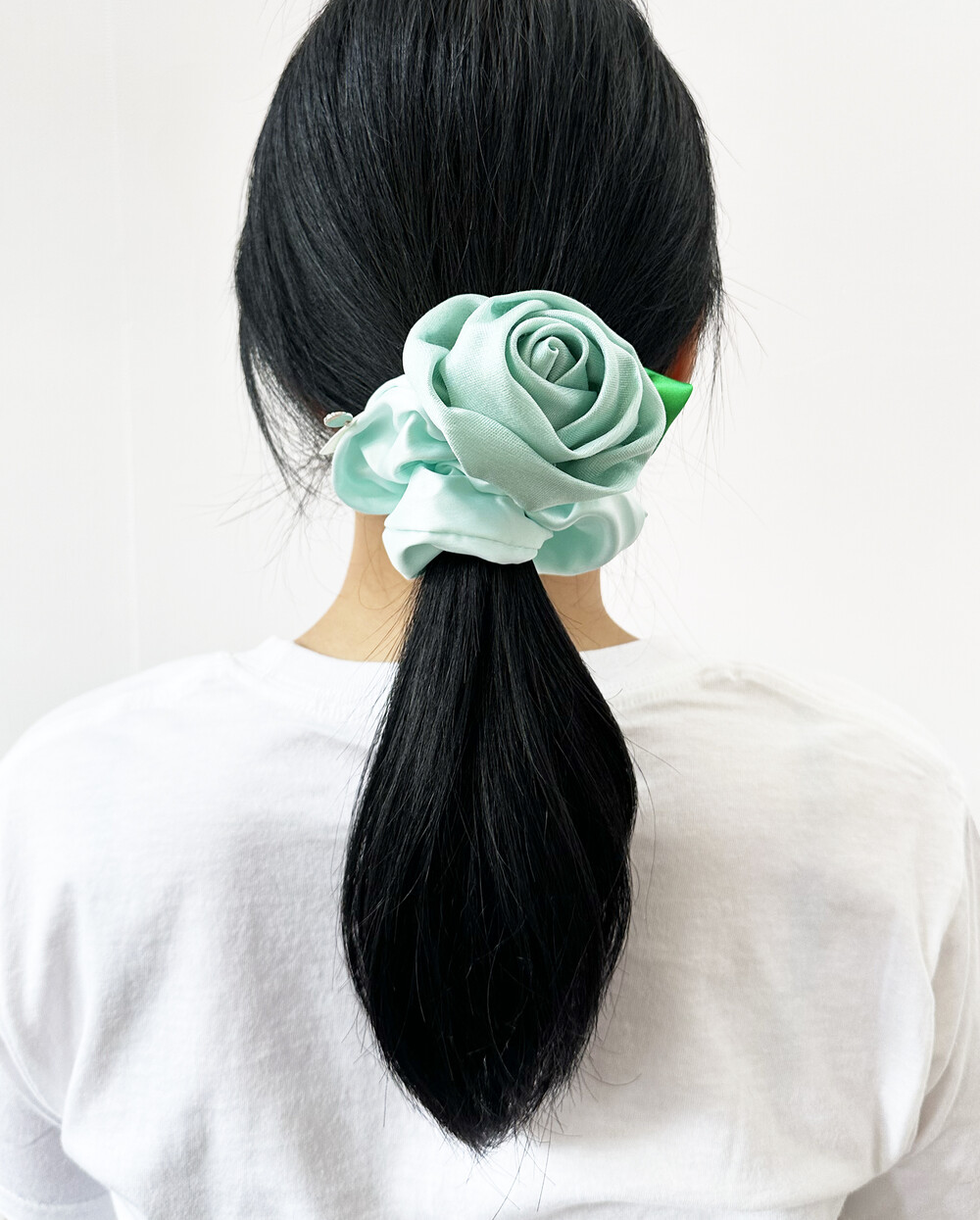 밴드 부분은 폴리 소재의 원단이며 그 외에는 실크로 만들어진 고급스러운 헤어 스크런치입니다.