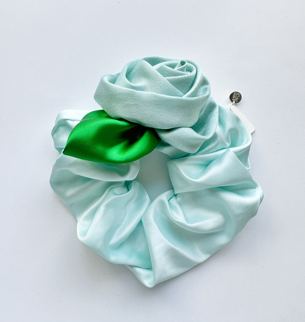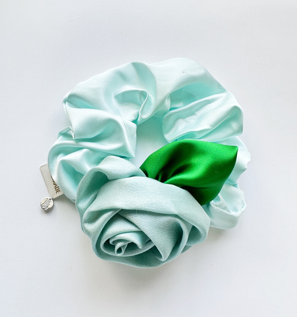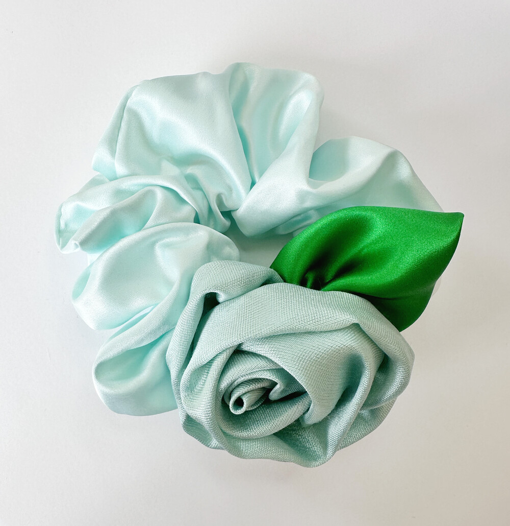 밴드 부분은 폴리 소재의 원단이며 그 외에는 실크로 만들어진 고급스러운 헤어 스크런치입니다.