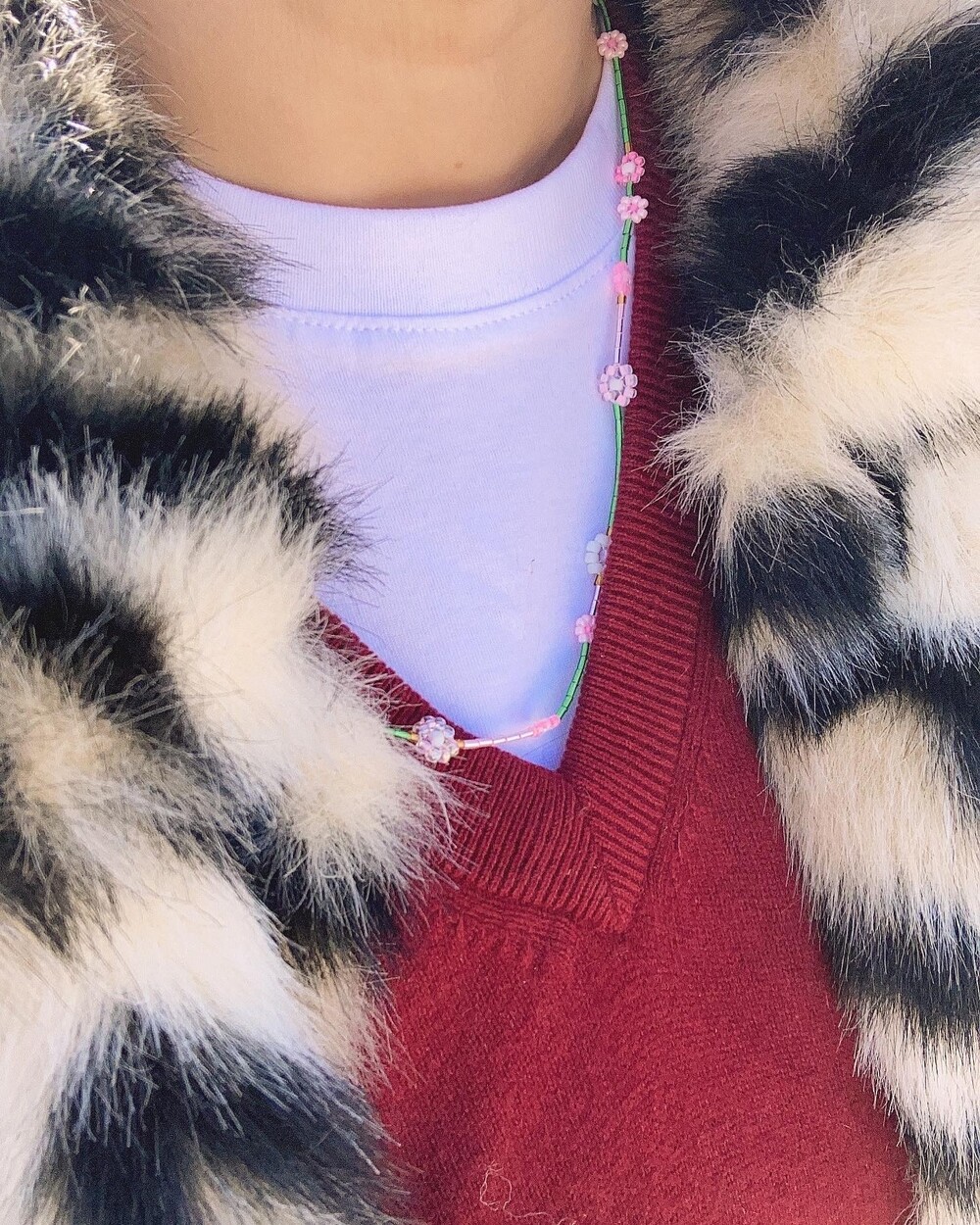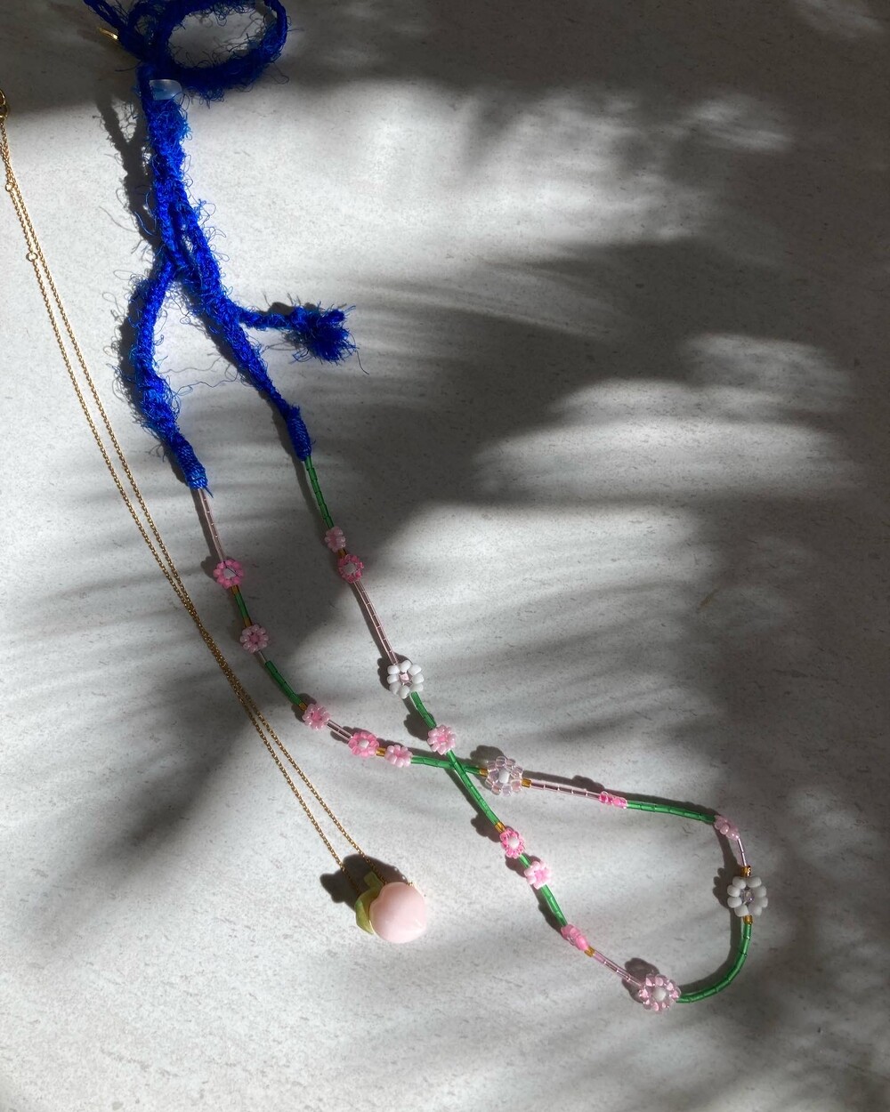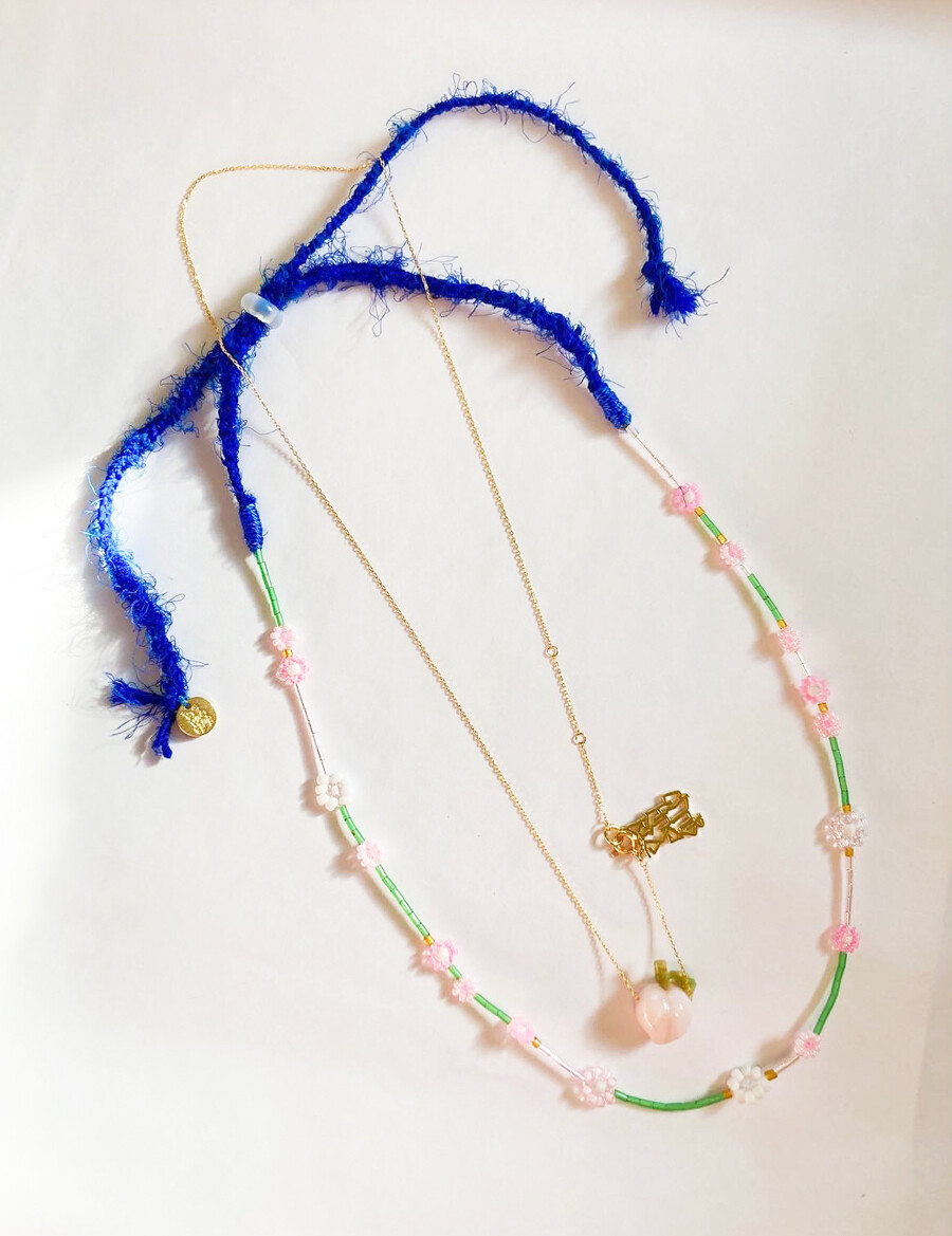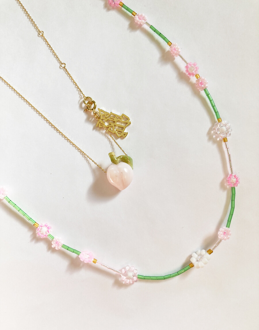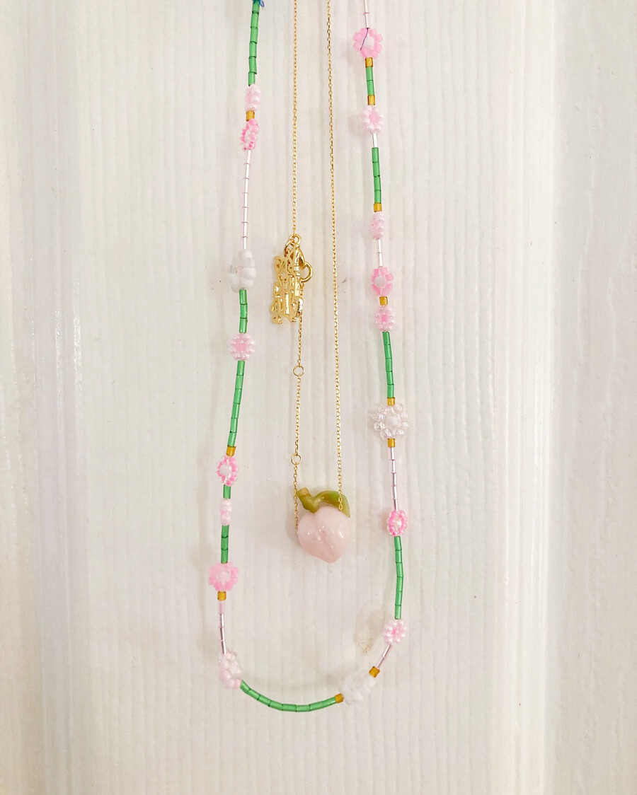 봄, 만개한 복숭아꽃을 일본산 유리 비즈로 형상화 한 목걸이입니다.