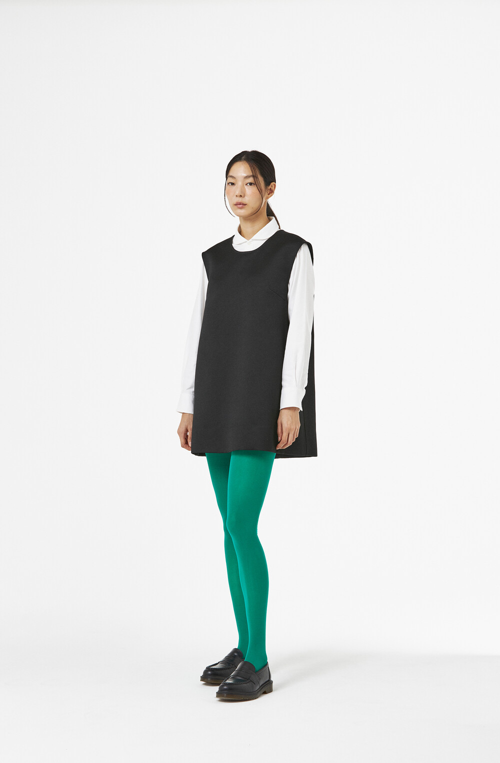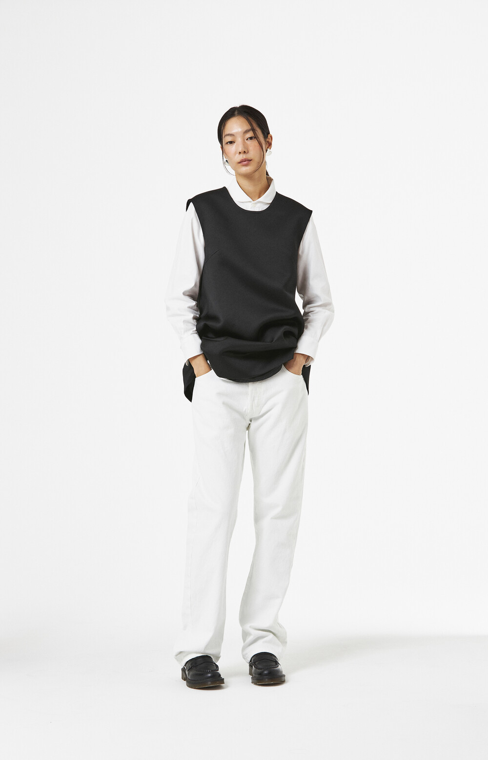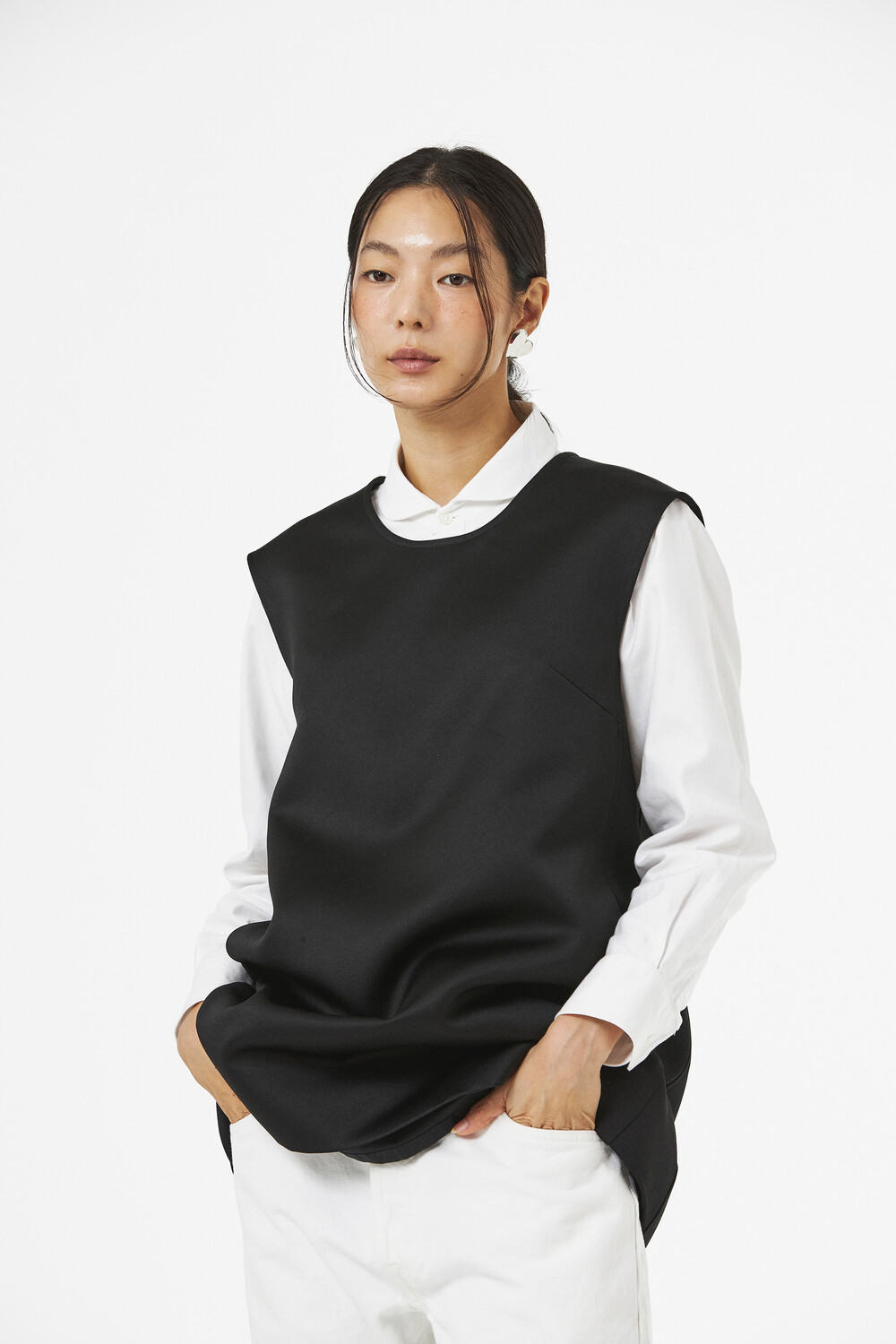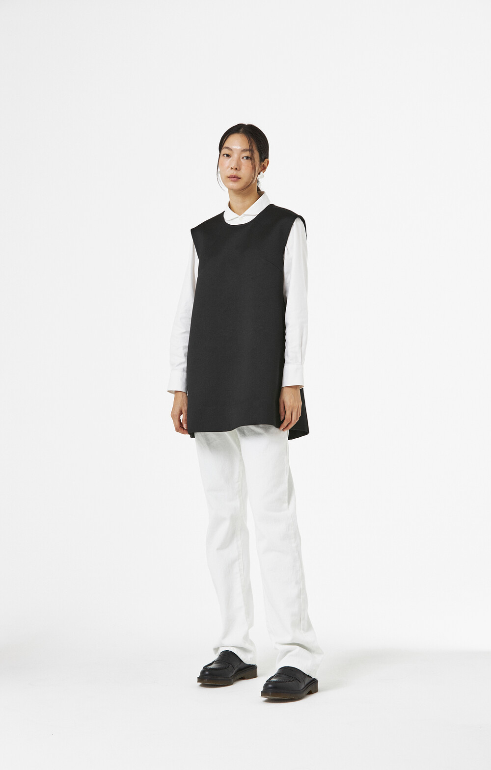 공단 폴리에스테르 원단에 슬리브리스 디자인으로 사계절 모두 착용가능합니다.