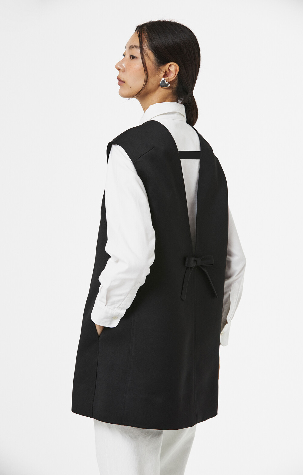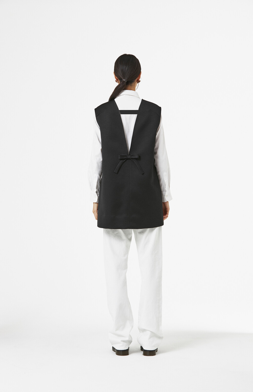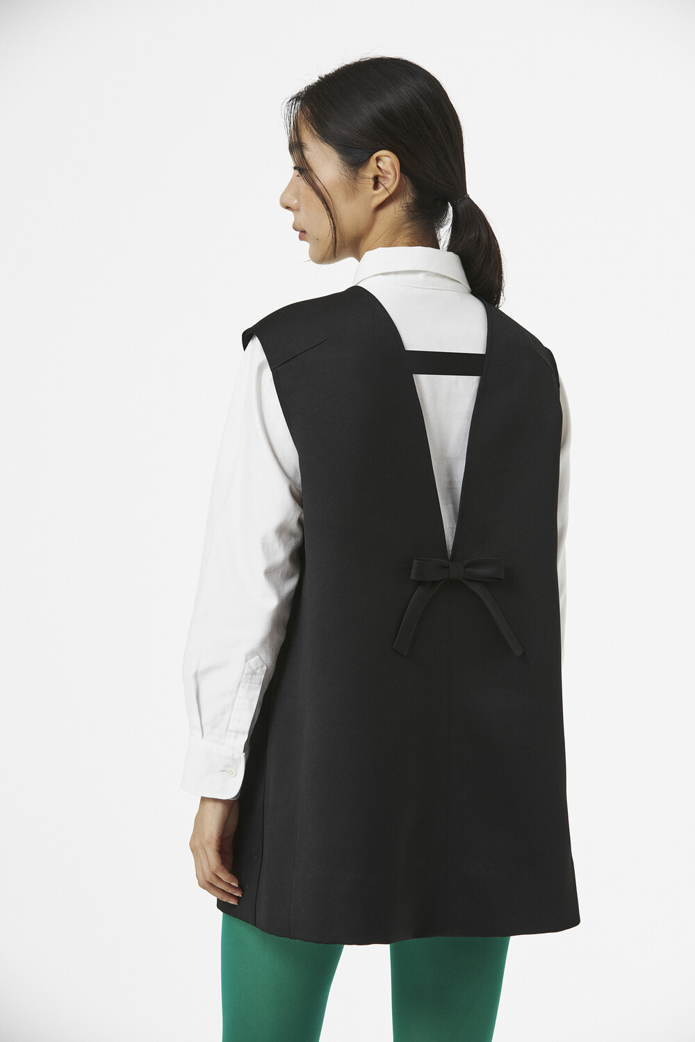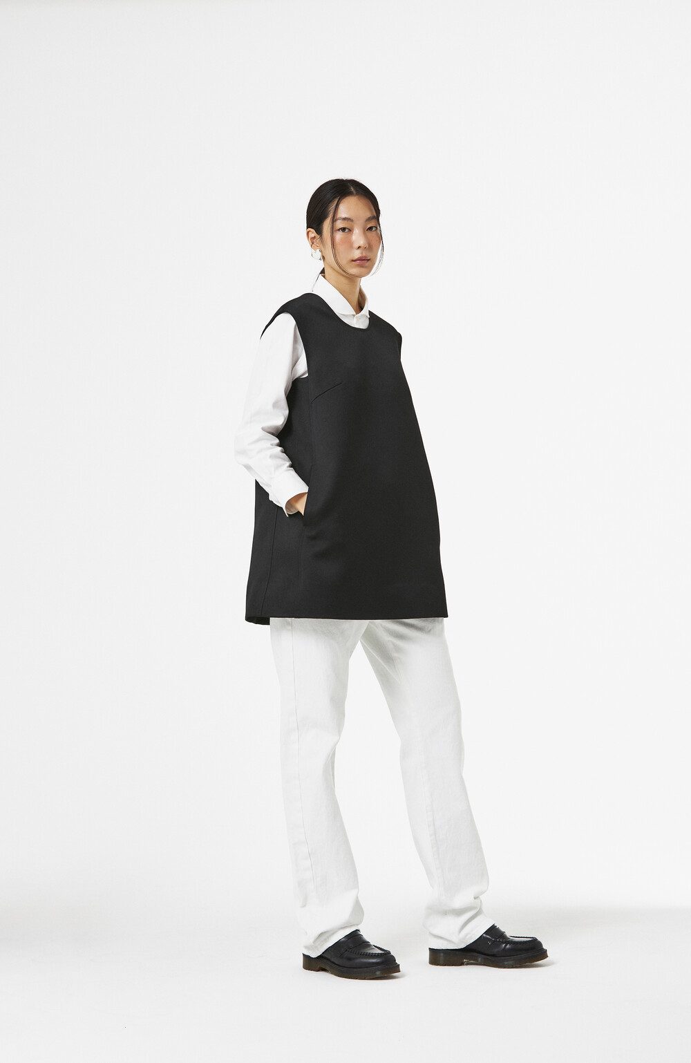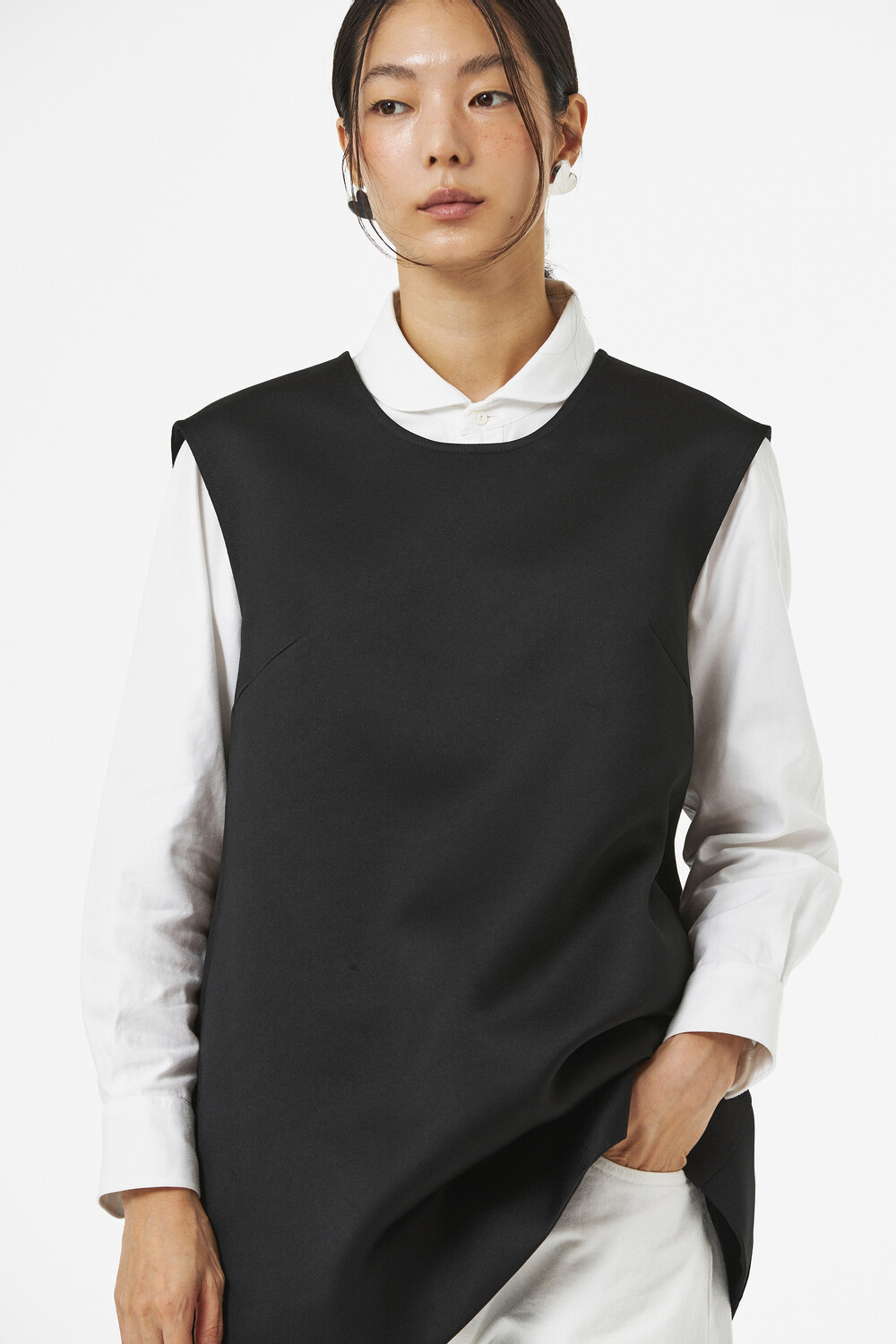 공단 폴리에스테르 원단에 슬리브리스 디자인으로 사계절 모두 착용가능합니다.