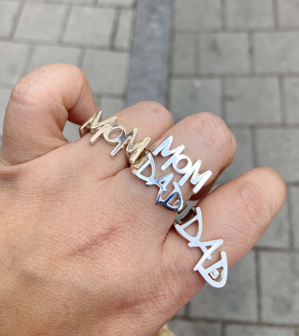 기존의 MOM, DAD반지의 글씨 크기가 작아진 쁘띠 버전의 반지 입니다.