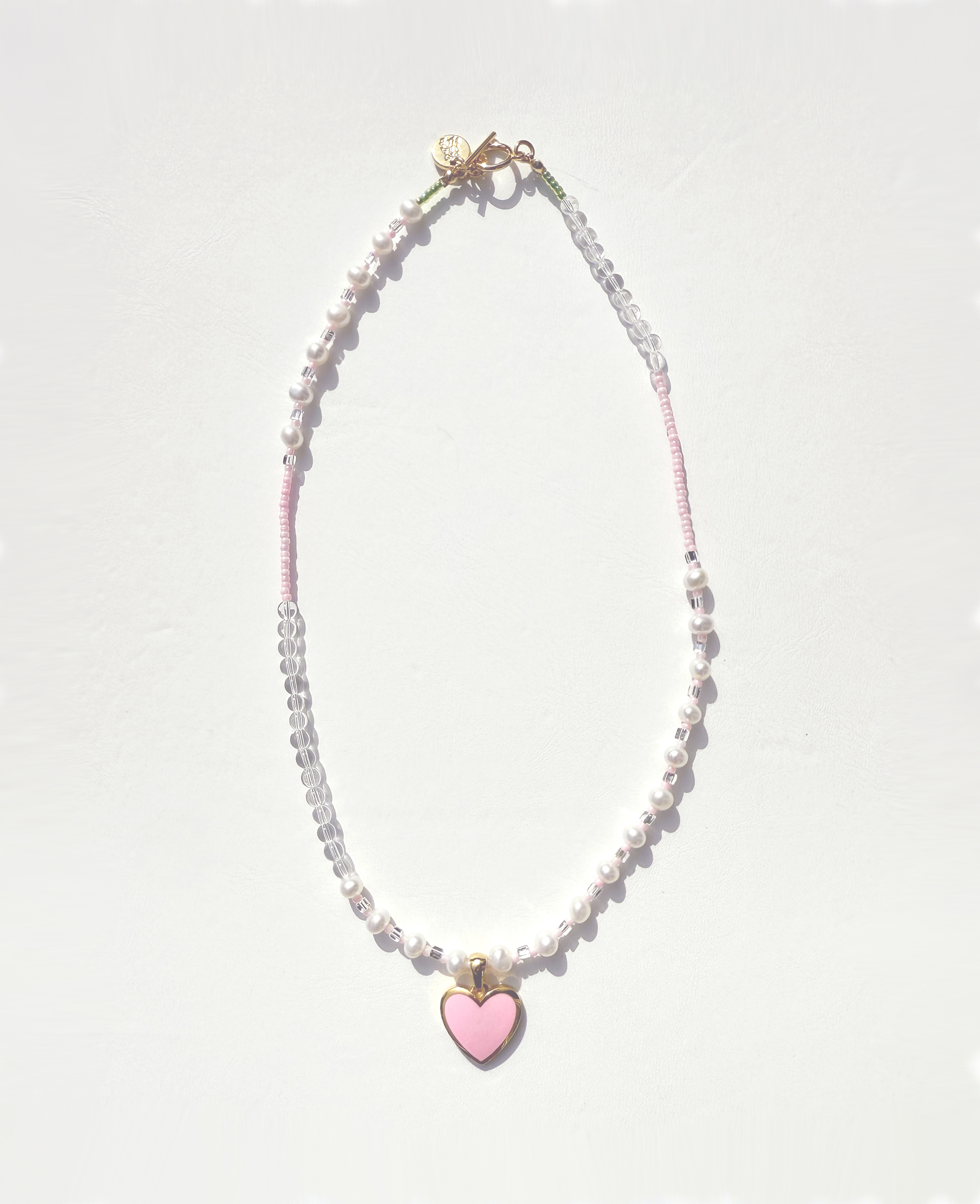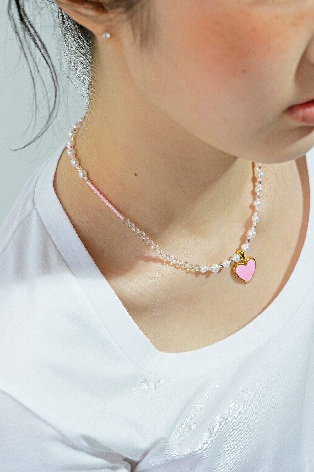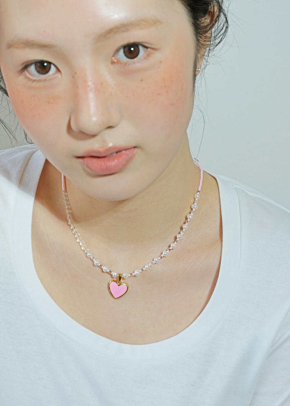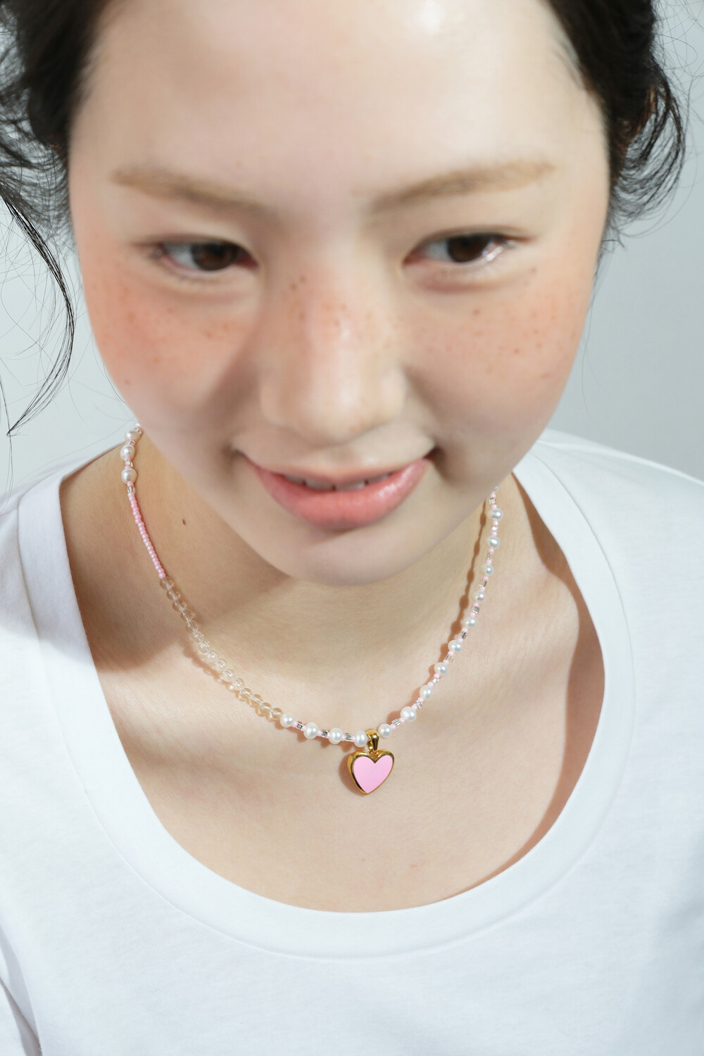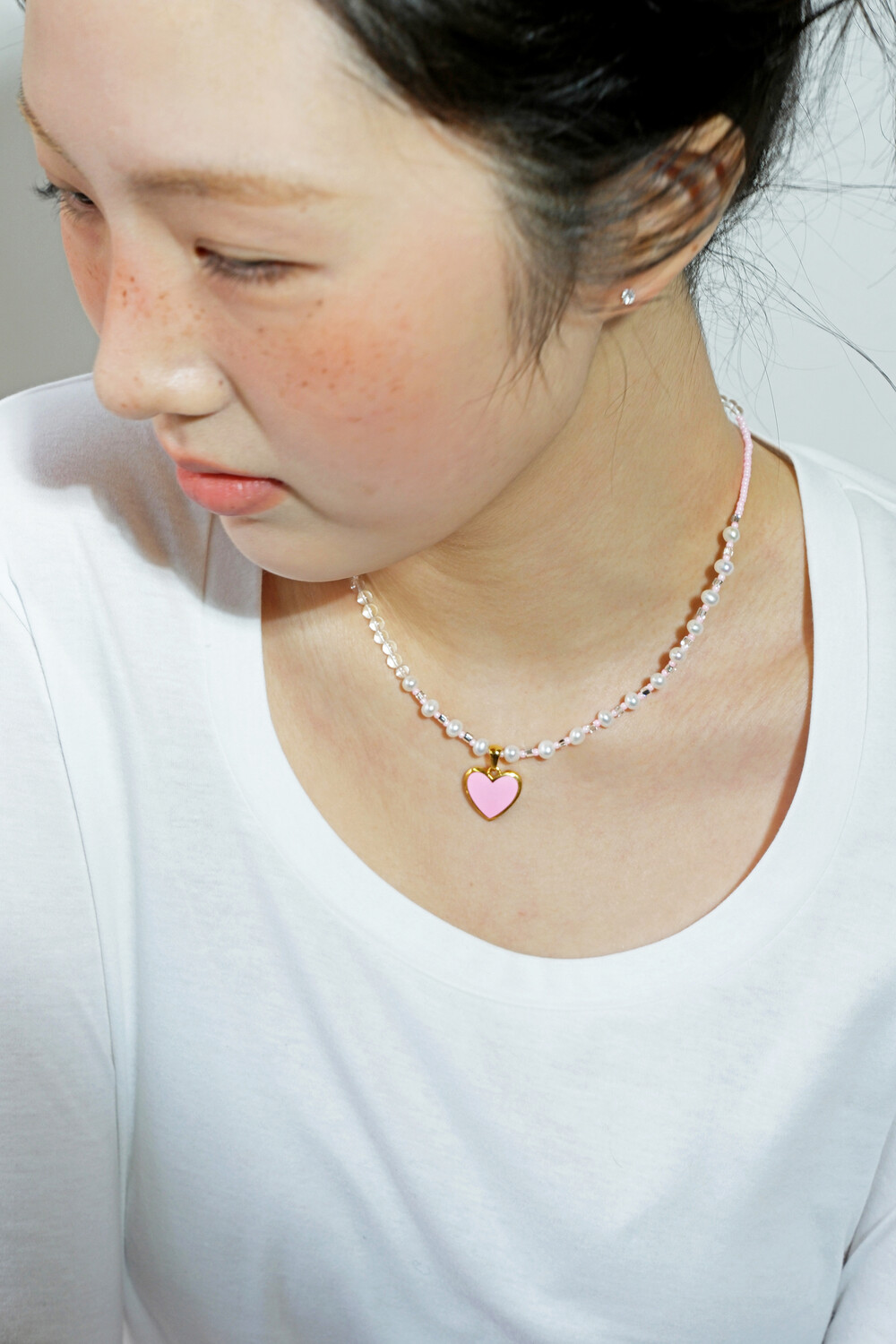 핑크 에폭시 하트 펜던트가 포인트가 되는 목걸이입니다.