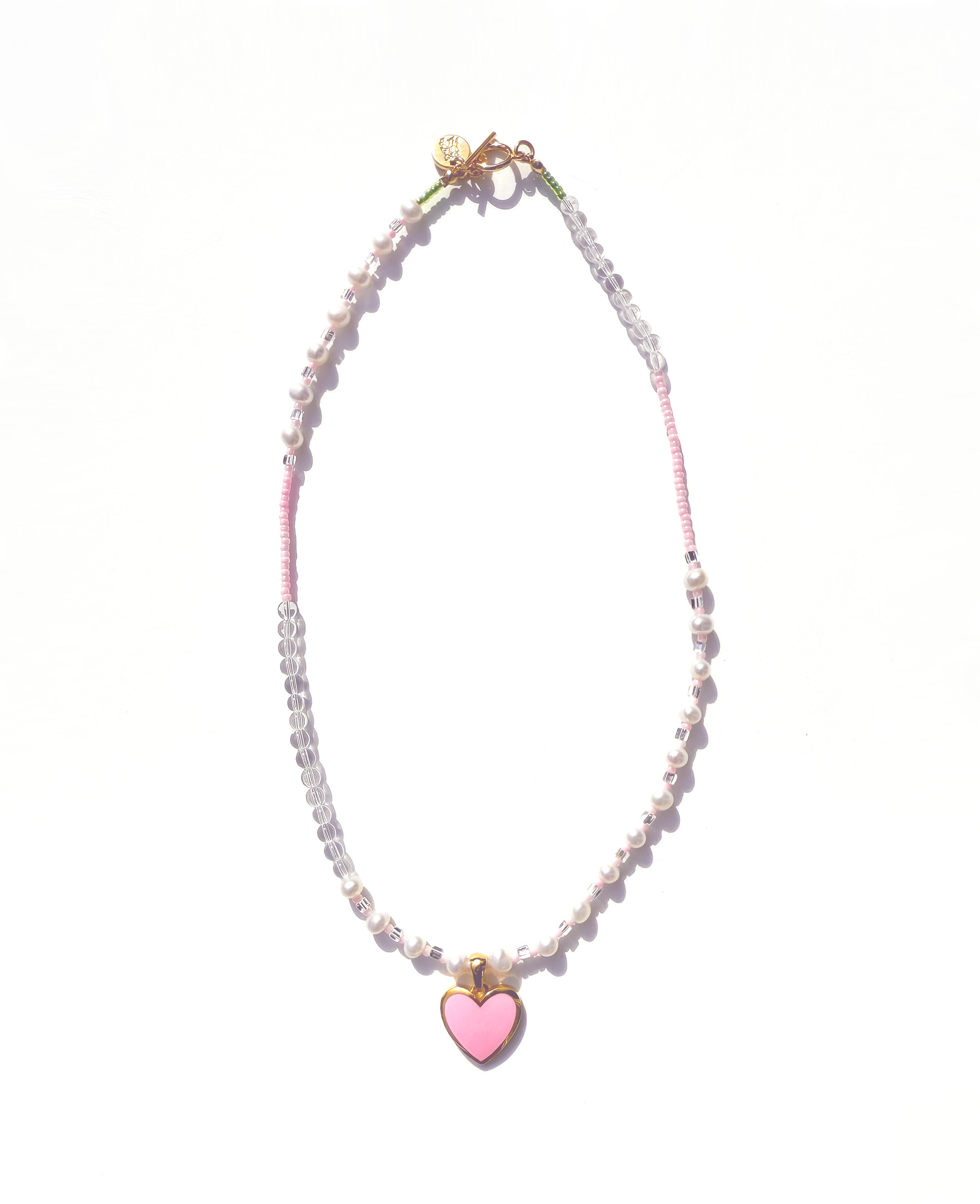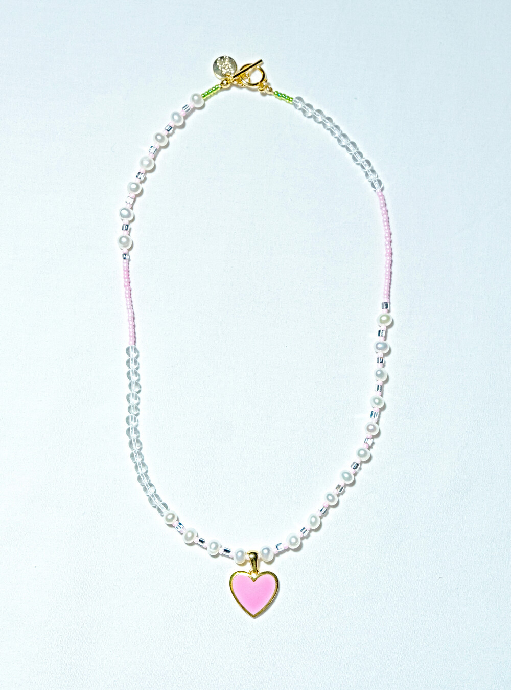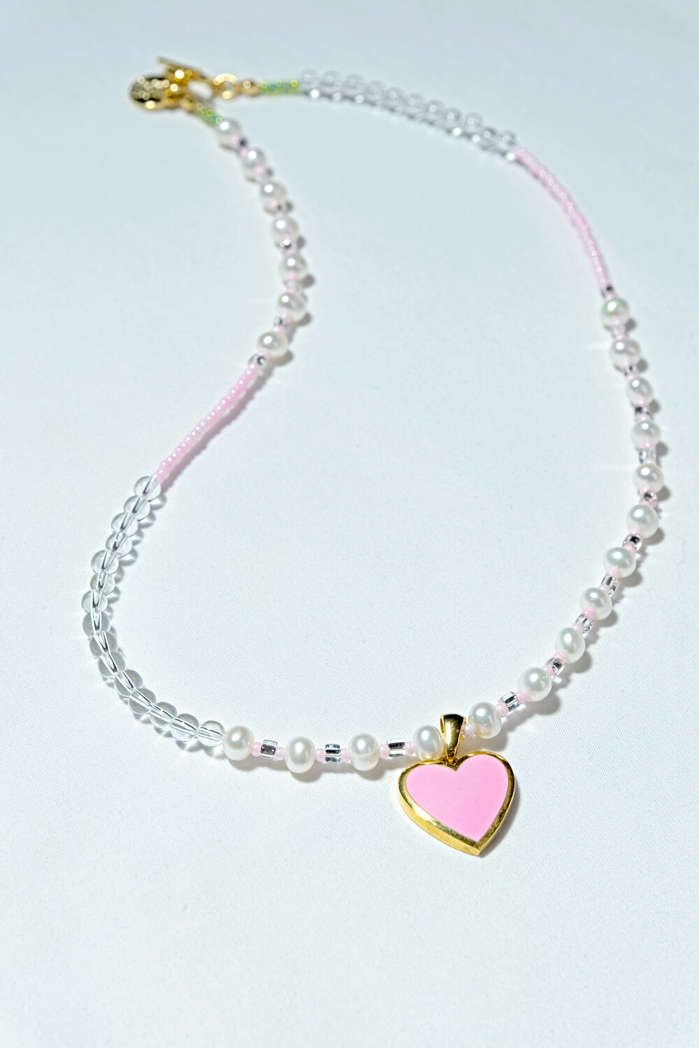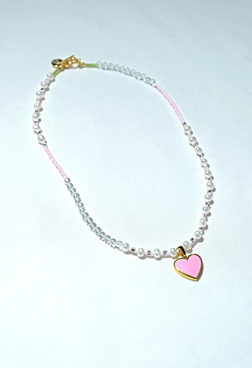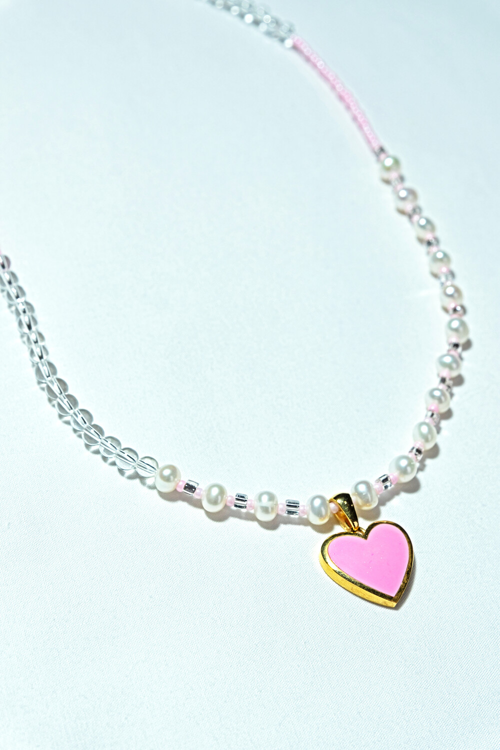 핑크 에폭시 하트 펜던트가 포인트가 되는 목걸이입니다.