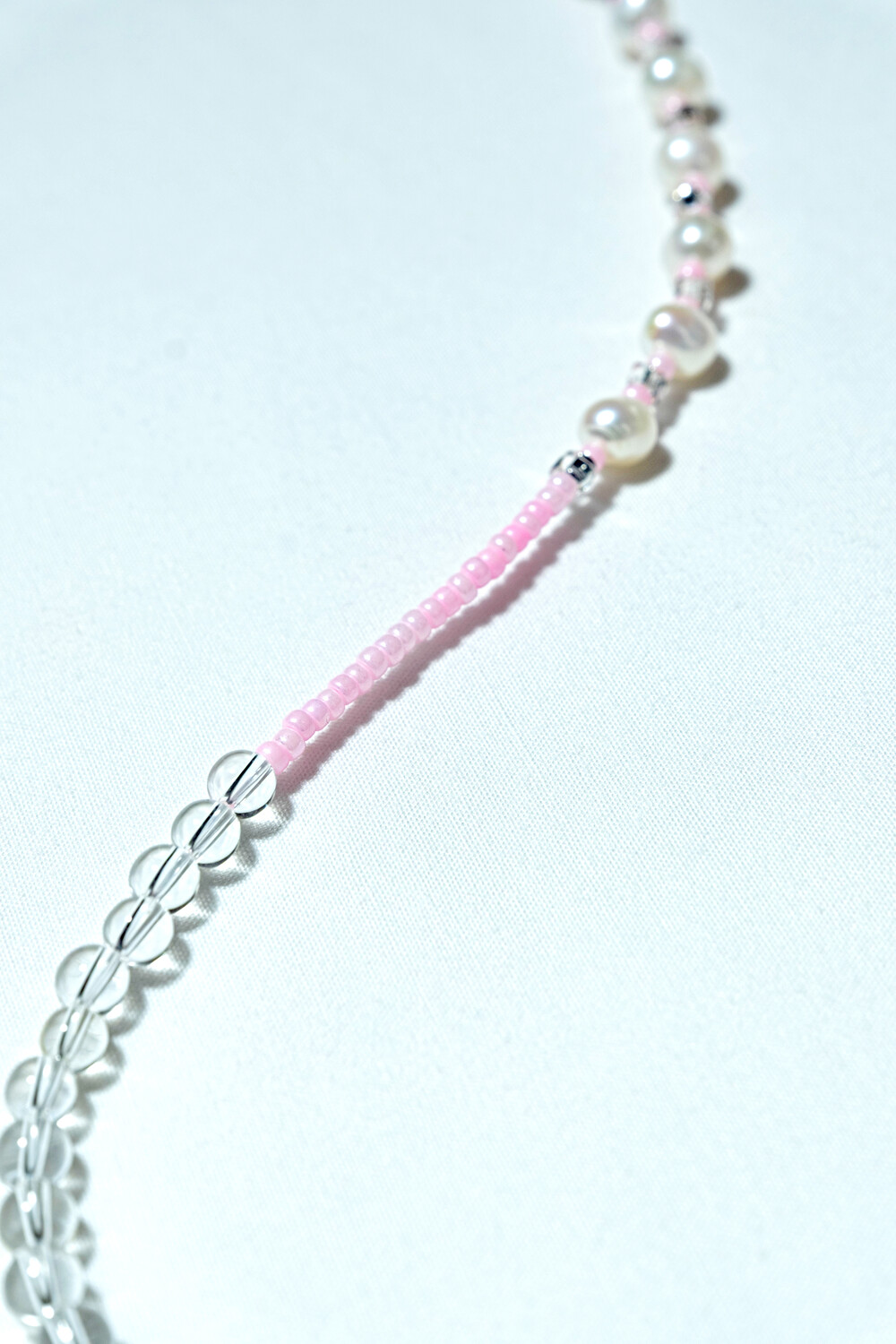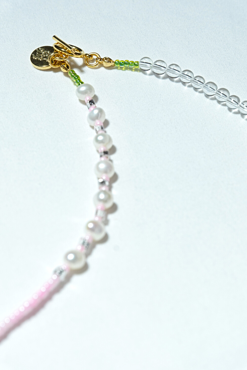 진주와 투명 구슬, 일본산 비즈를 조화롭게 엮어 사랑스럽고 가벼운 무드를 완성했습니다.