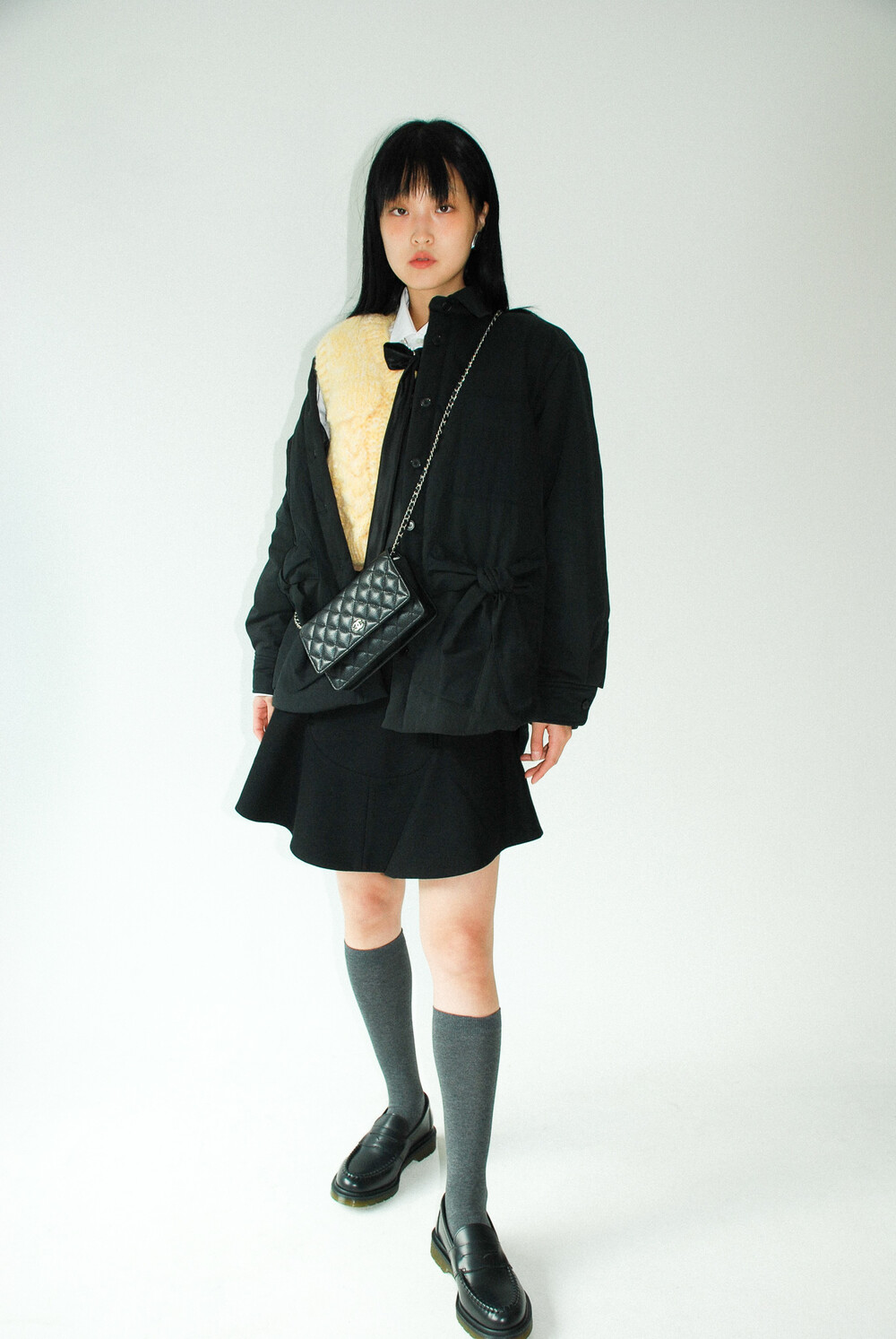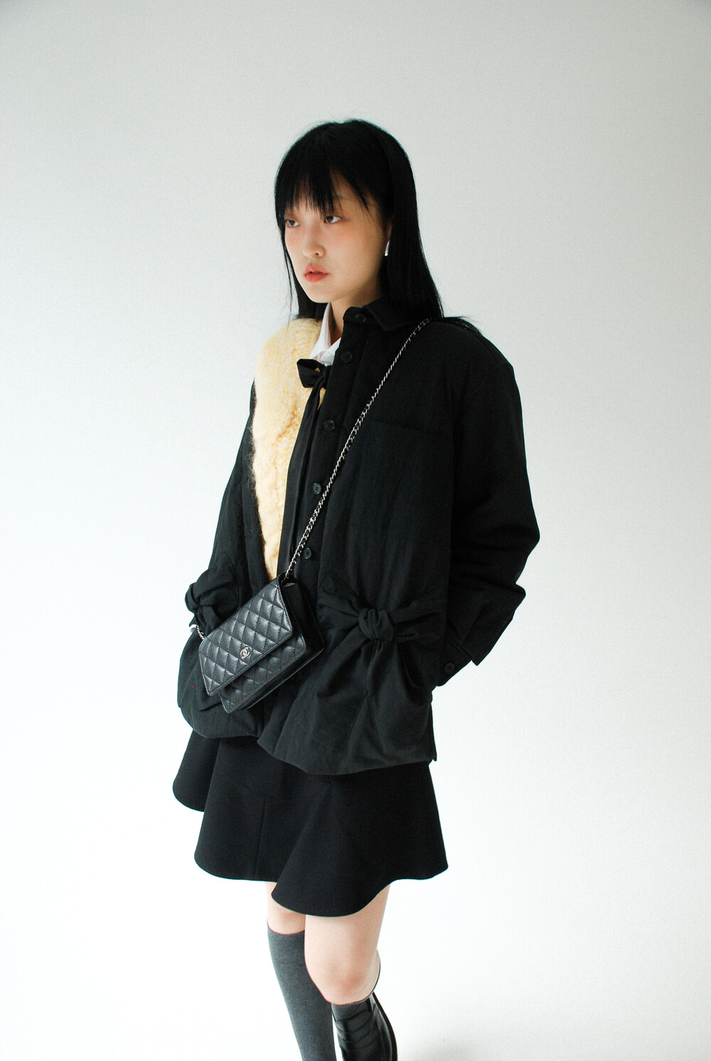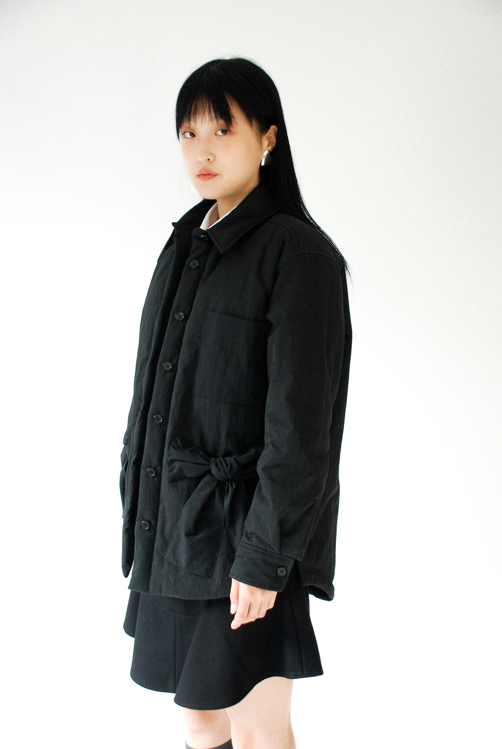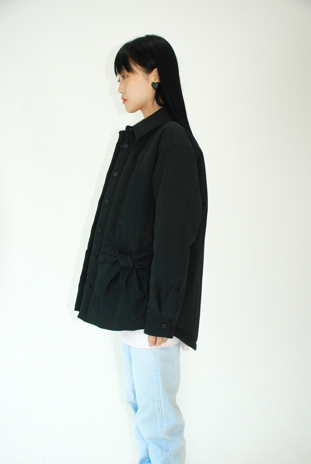 PUFFED OVERSHIRT JACKET WITH BOW_BLACK