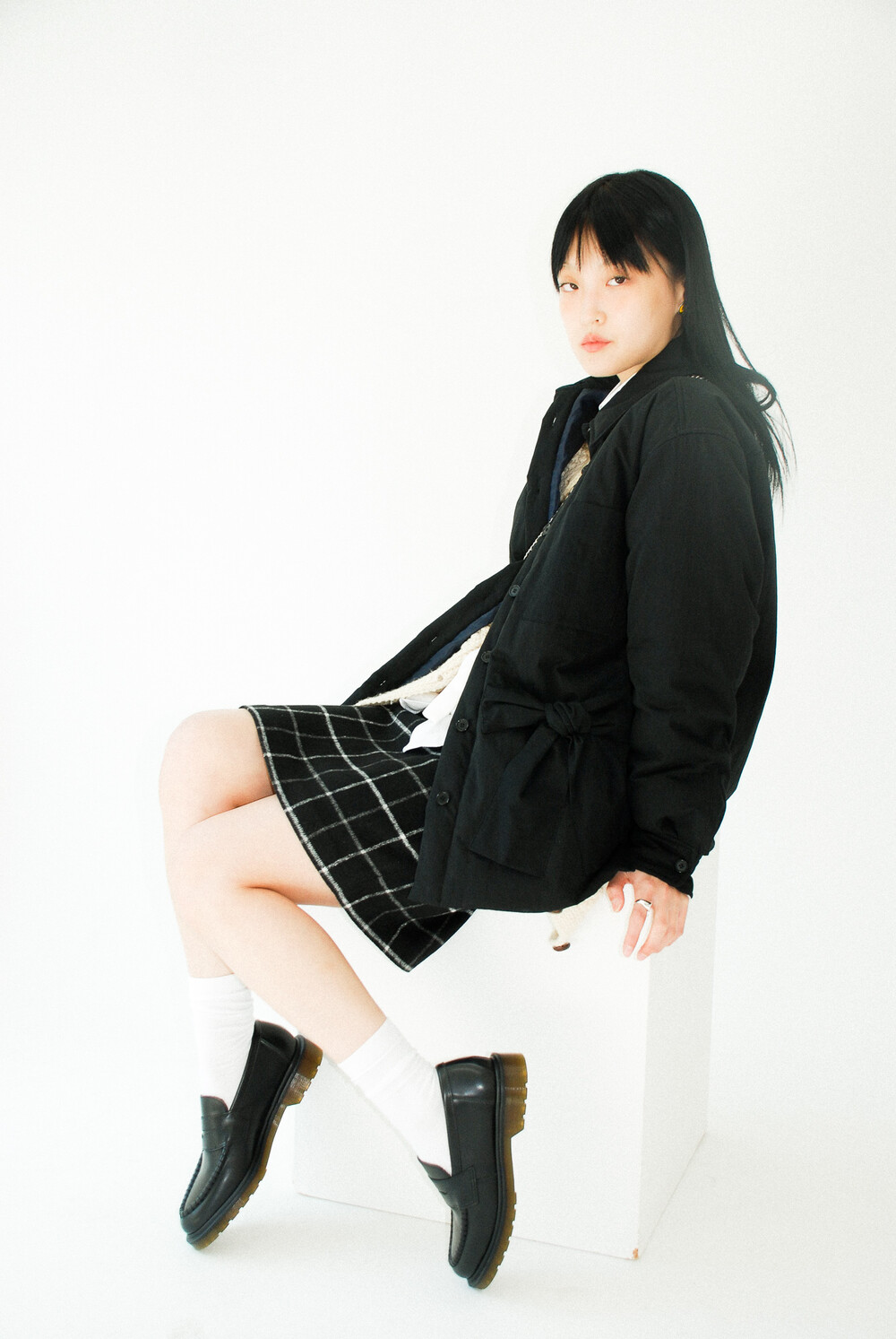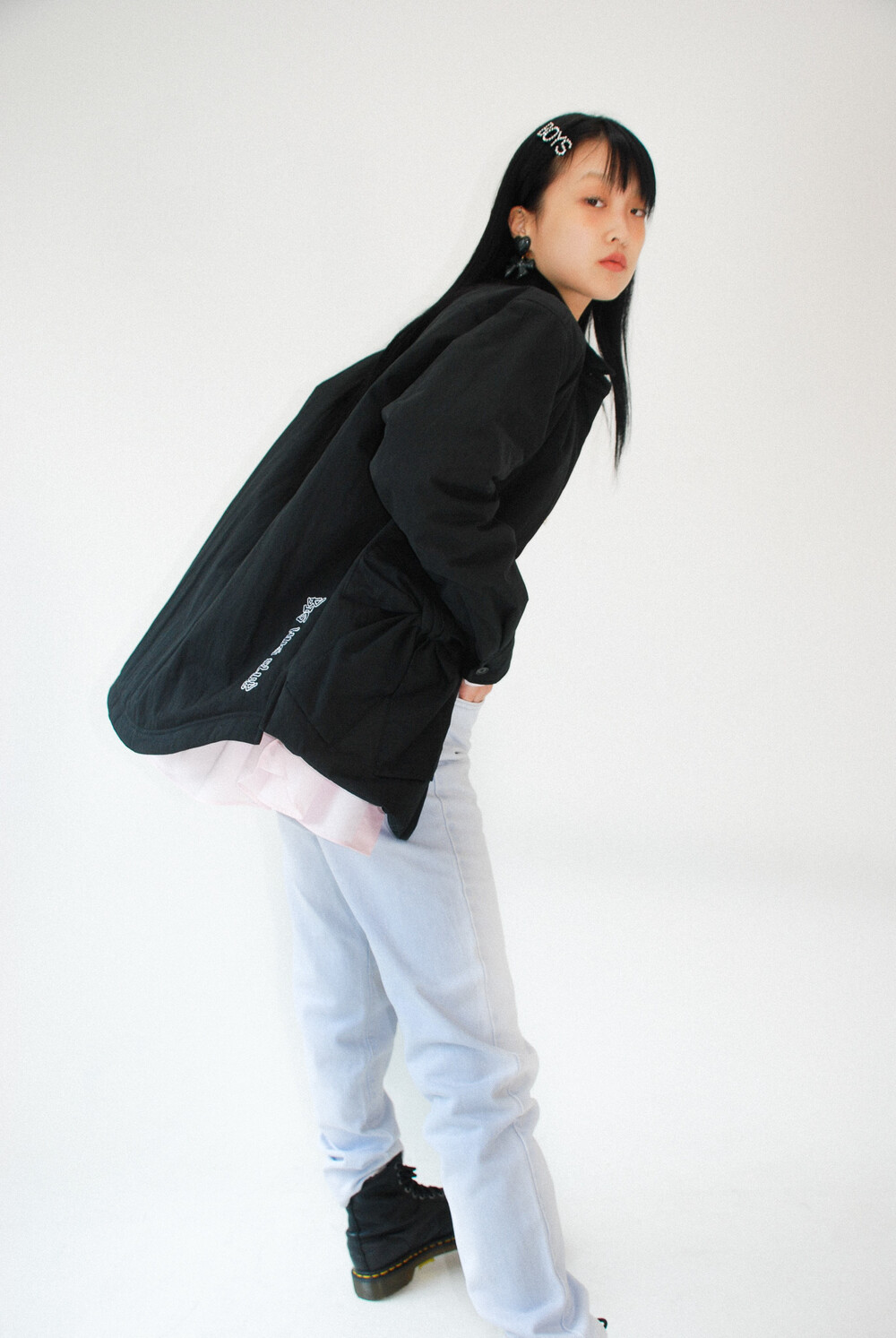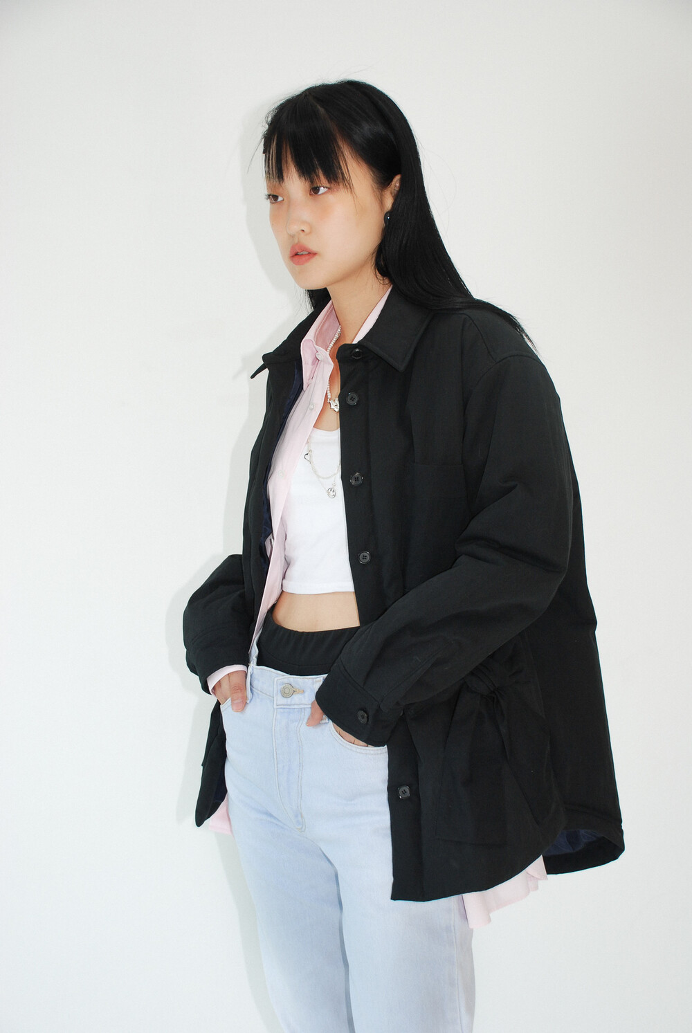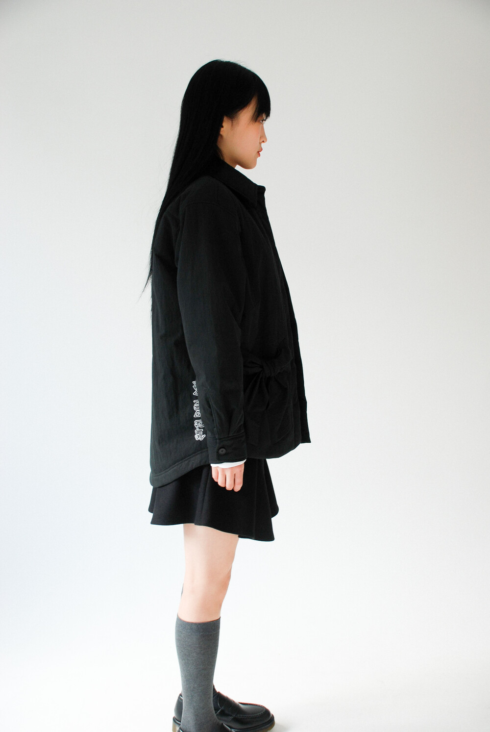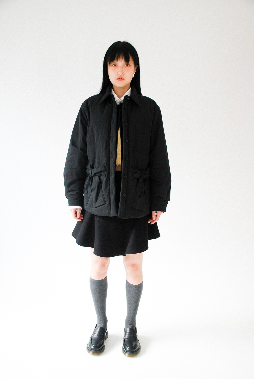 PUFFED OVERSHIRT JACKET WITH BOW_BLACK