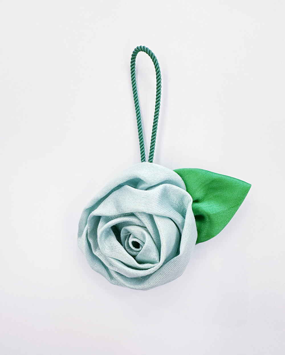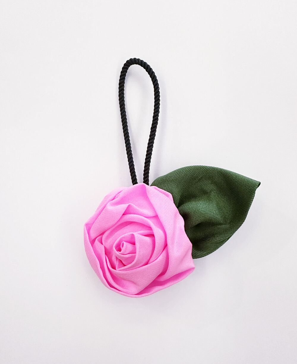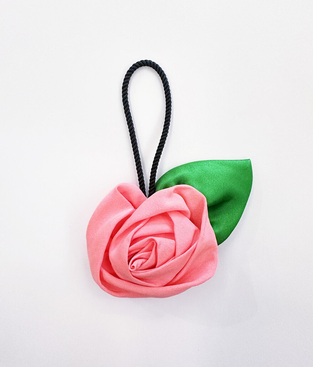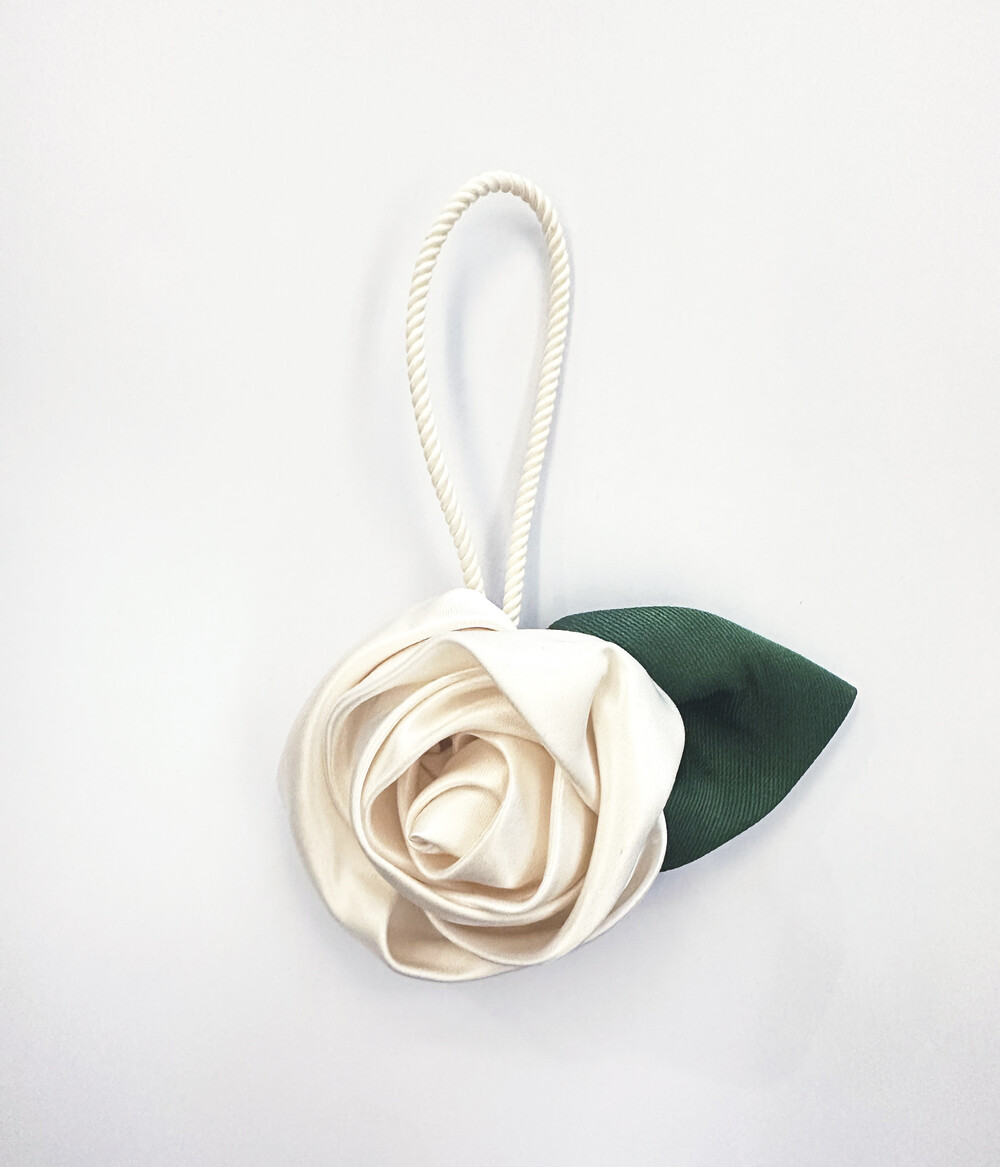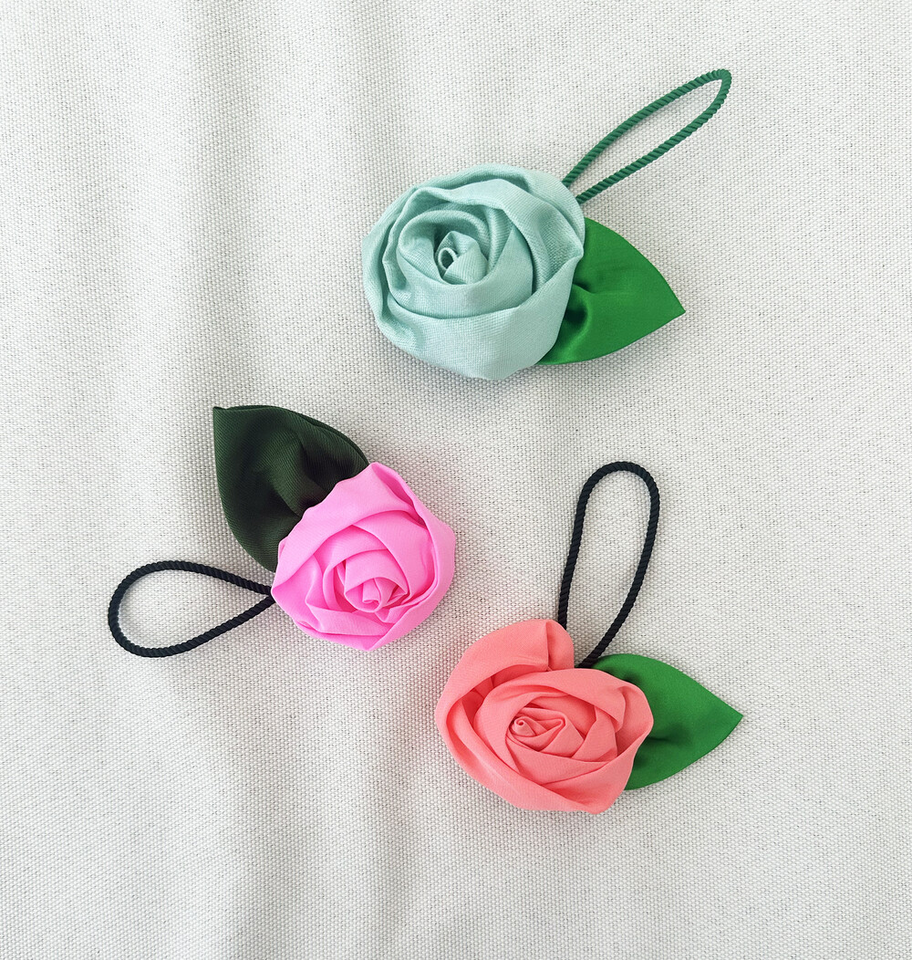 하나하나 손으로 만든 장미로 장식된 핸드메이드 실크 참입니다.