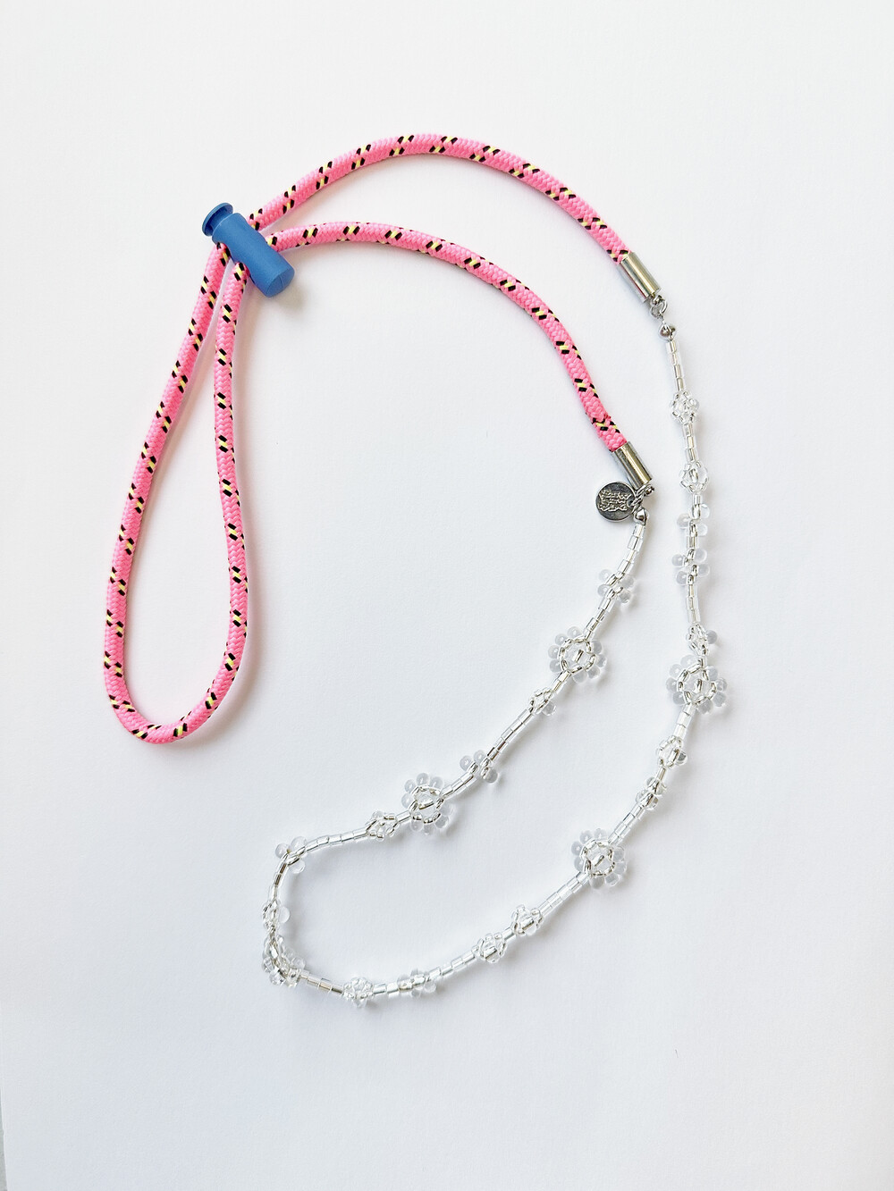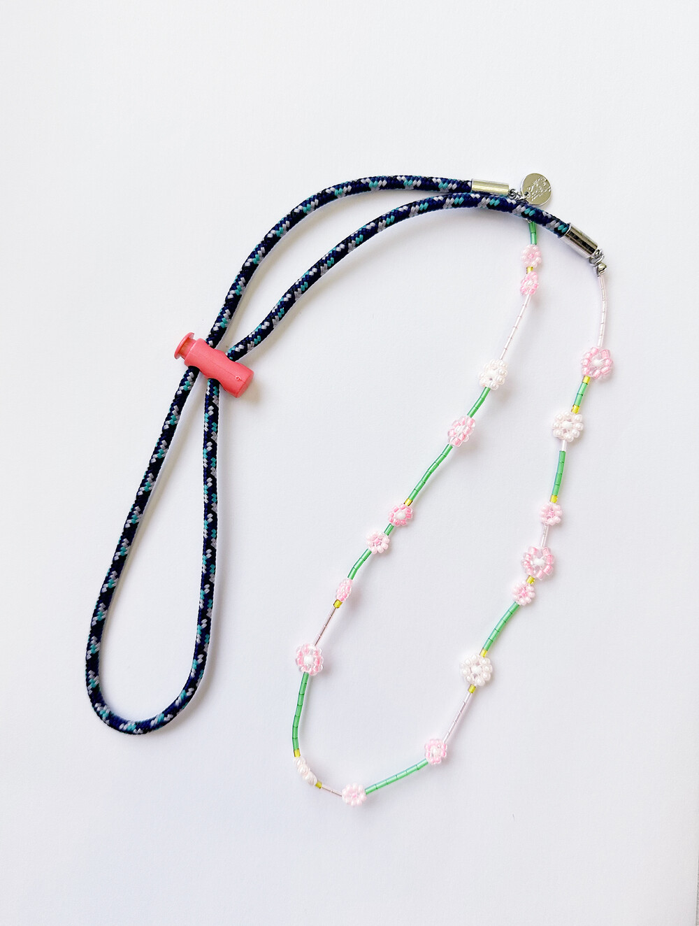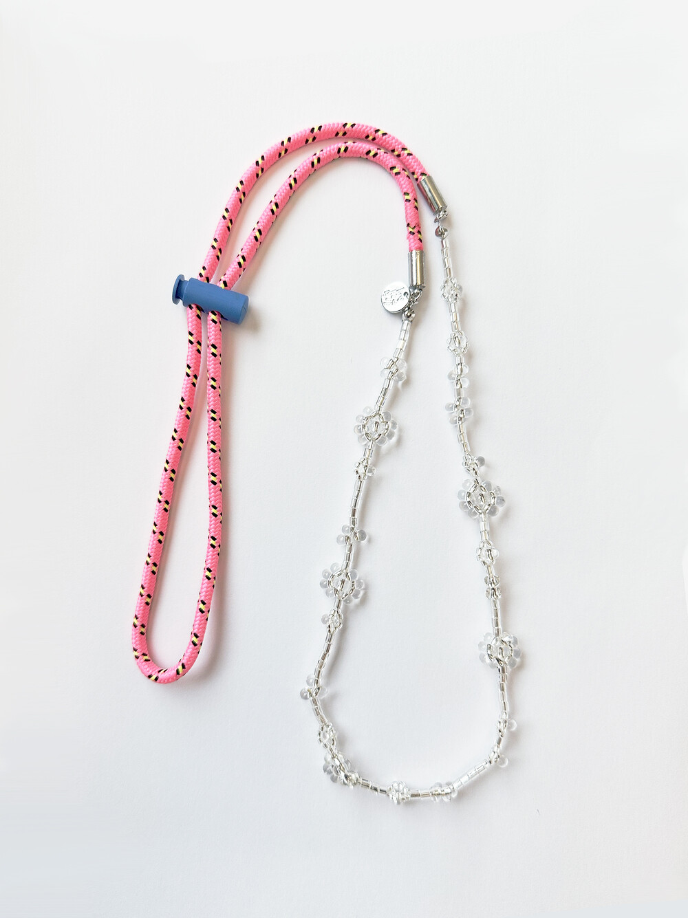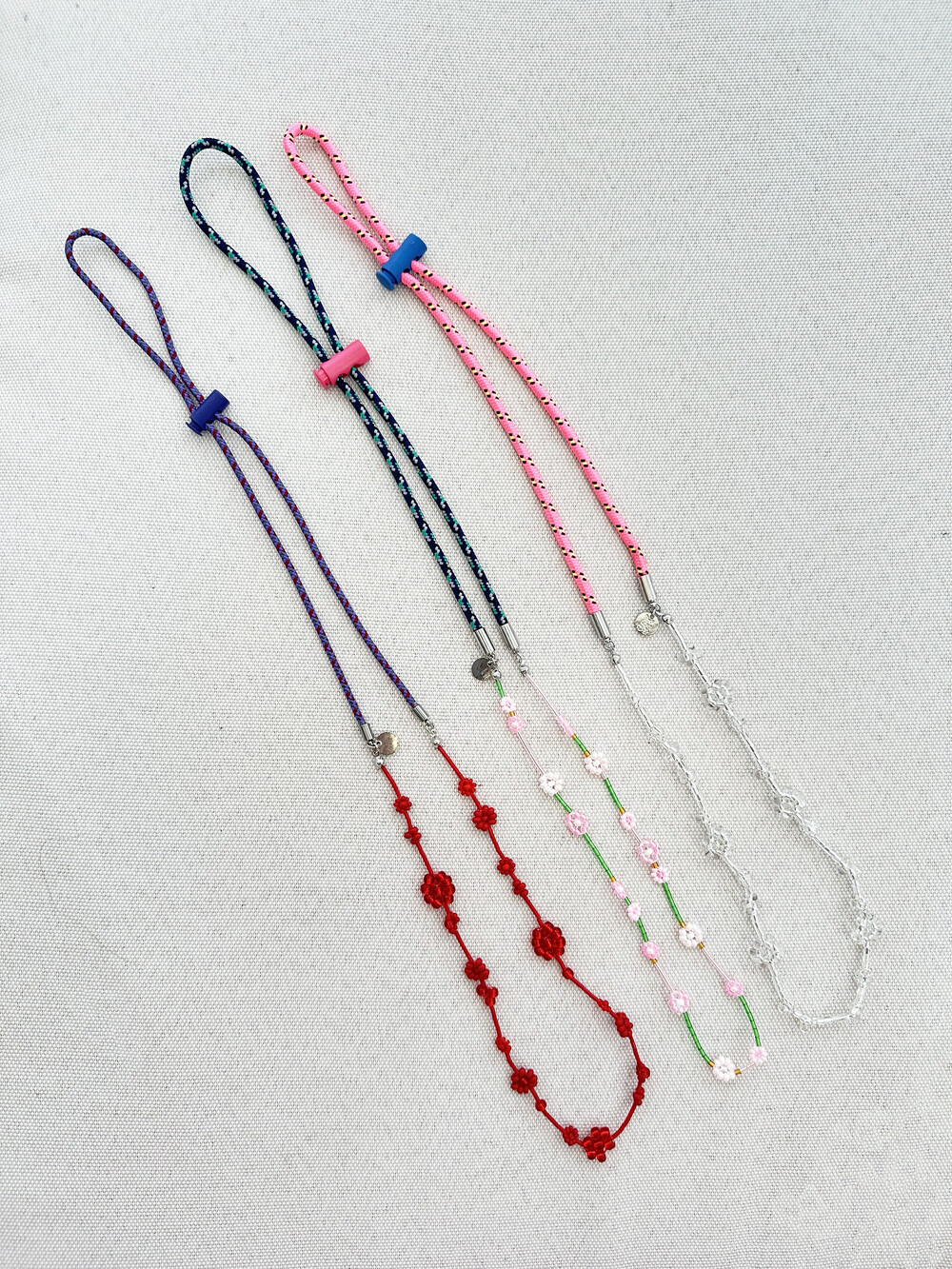 나일론 스트링에 플라스틱 비조로 길이 조정 가능합니다.