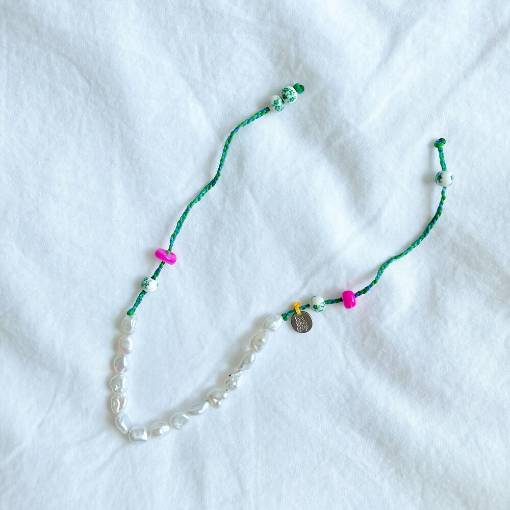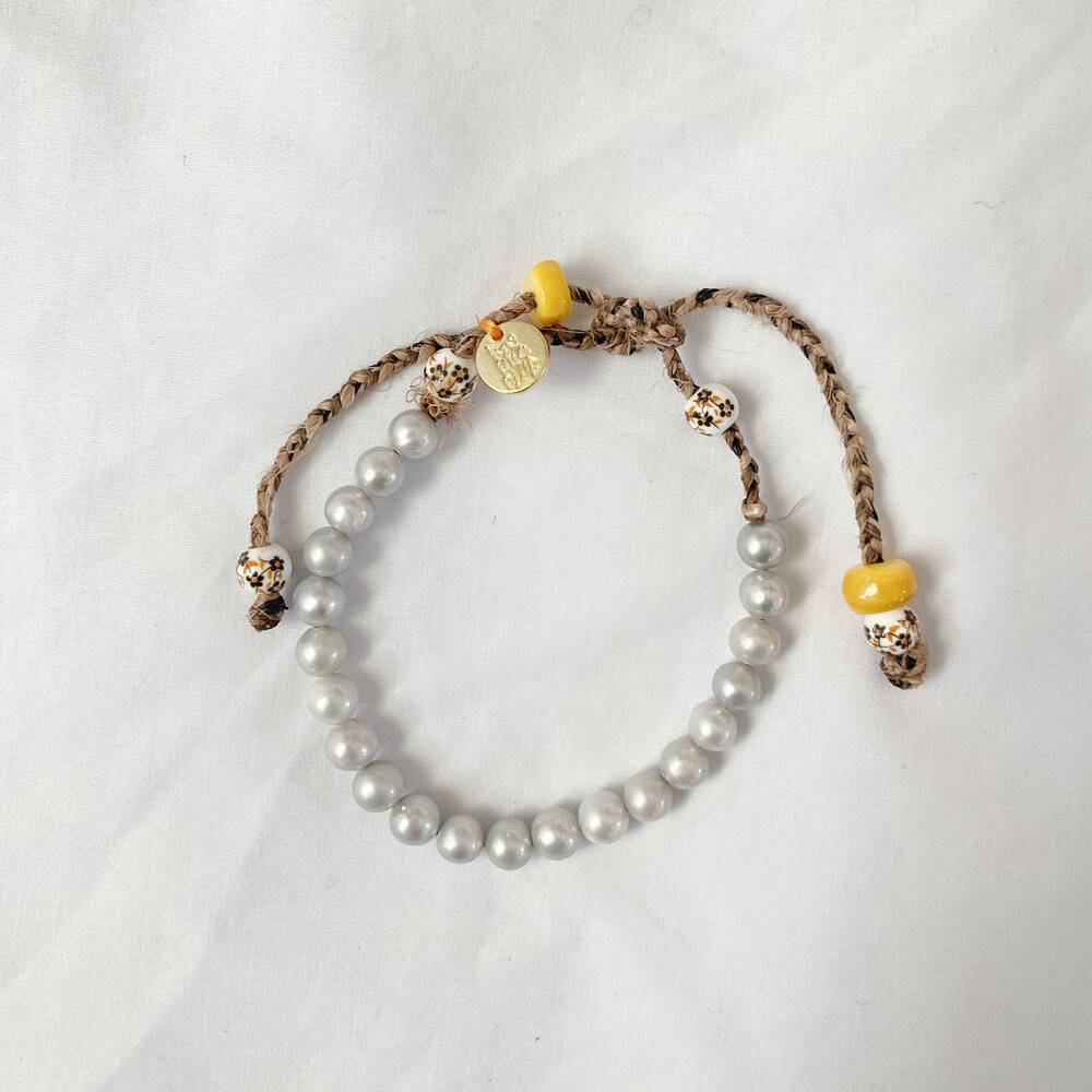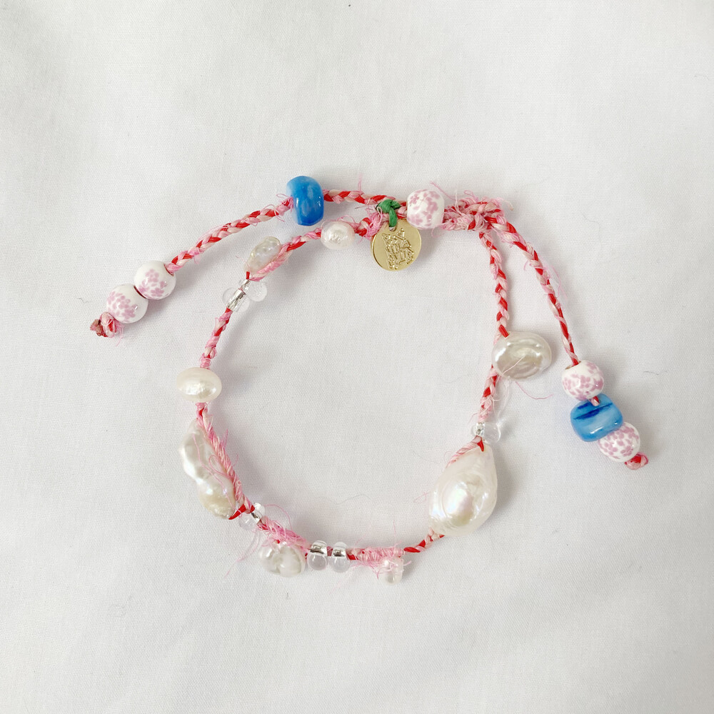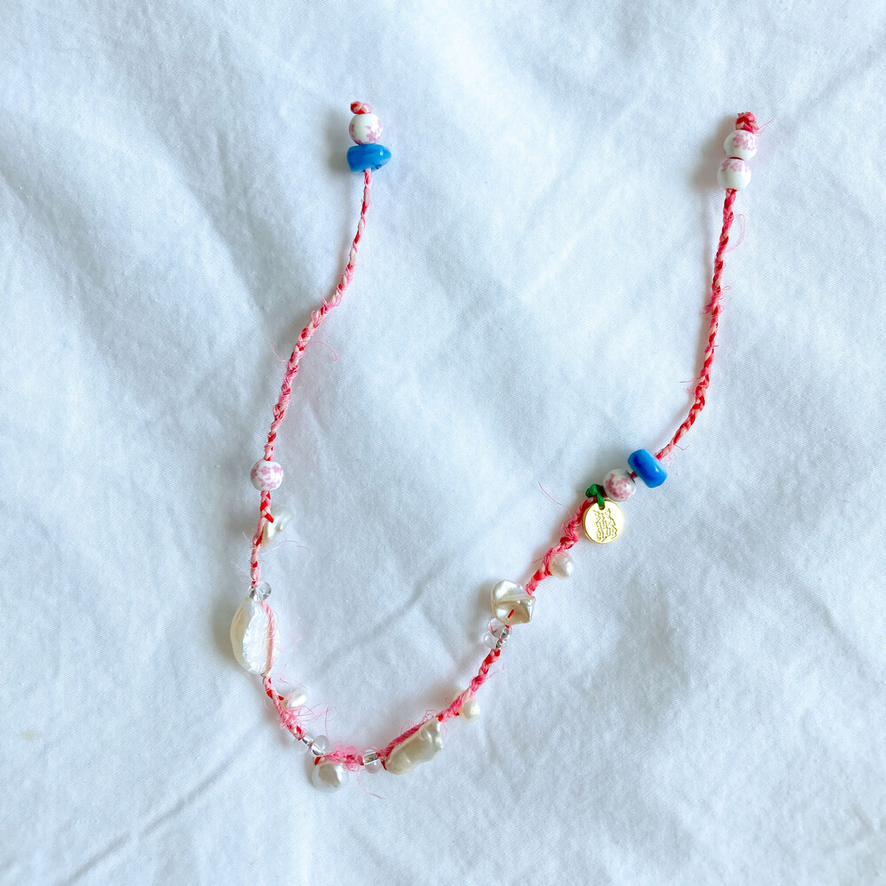 Material: pearls, silk yarn, waxed thread, porcelain, mother of pearl