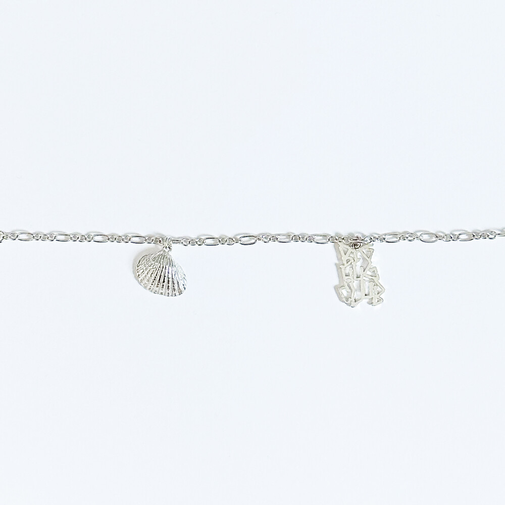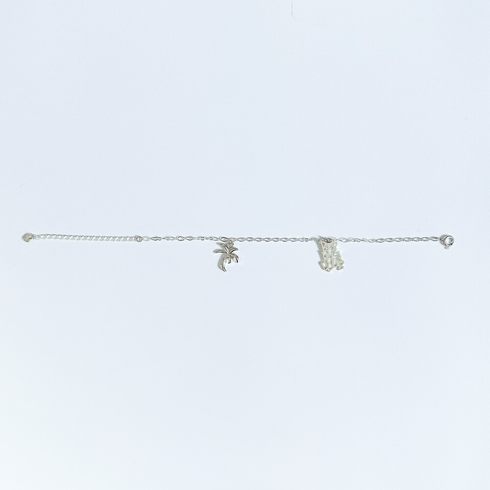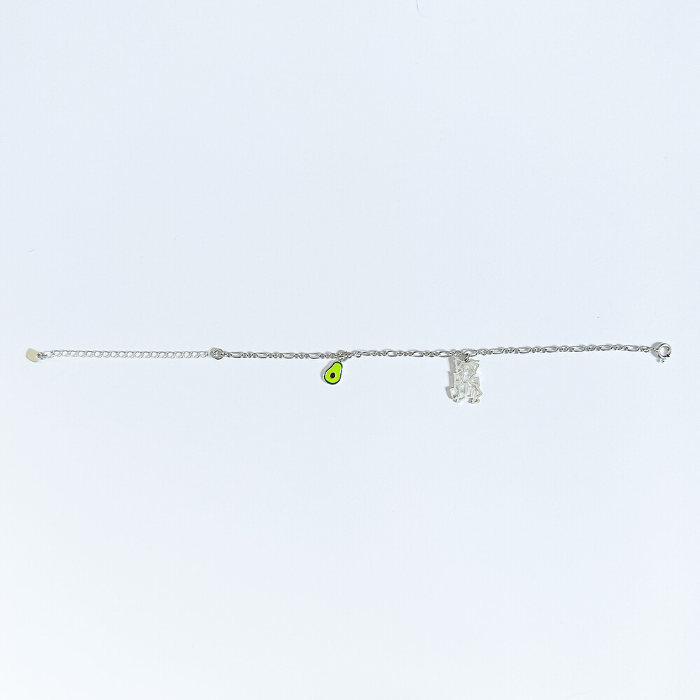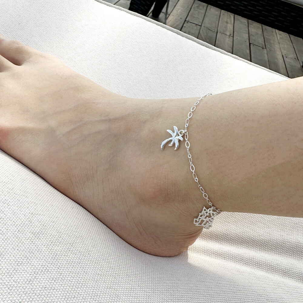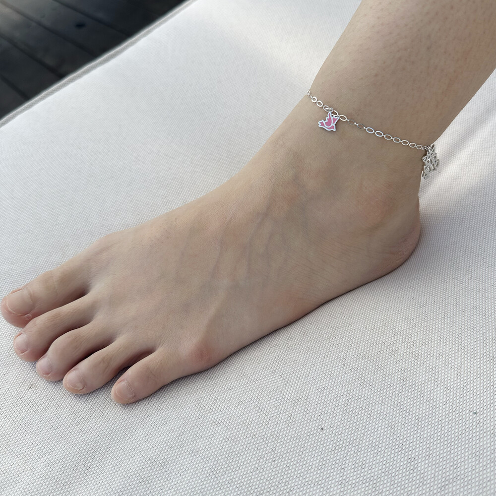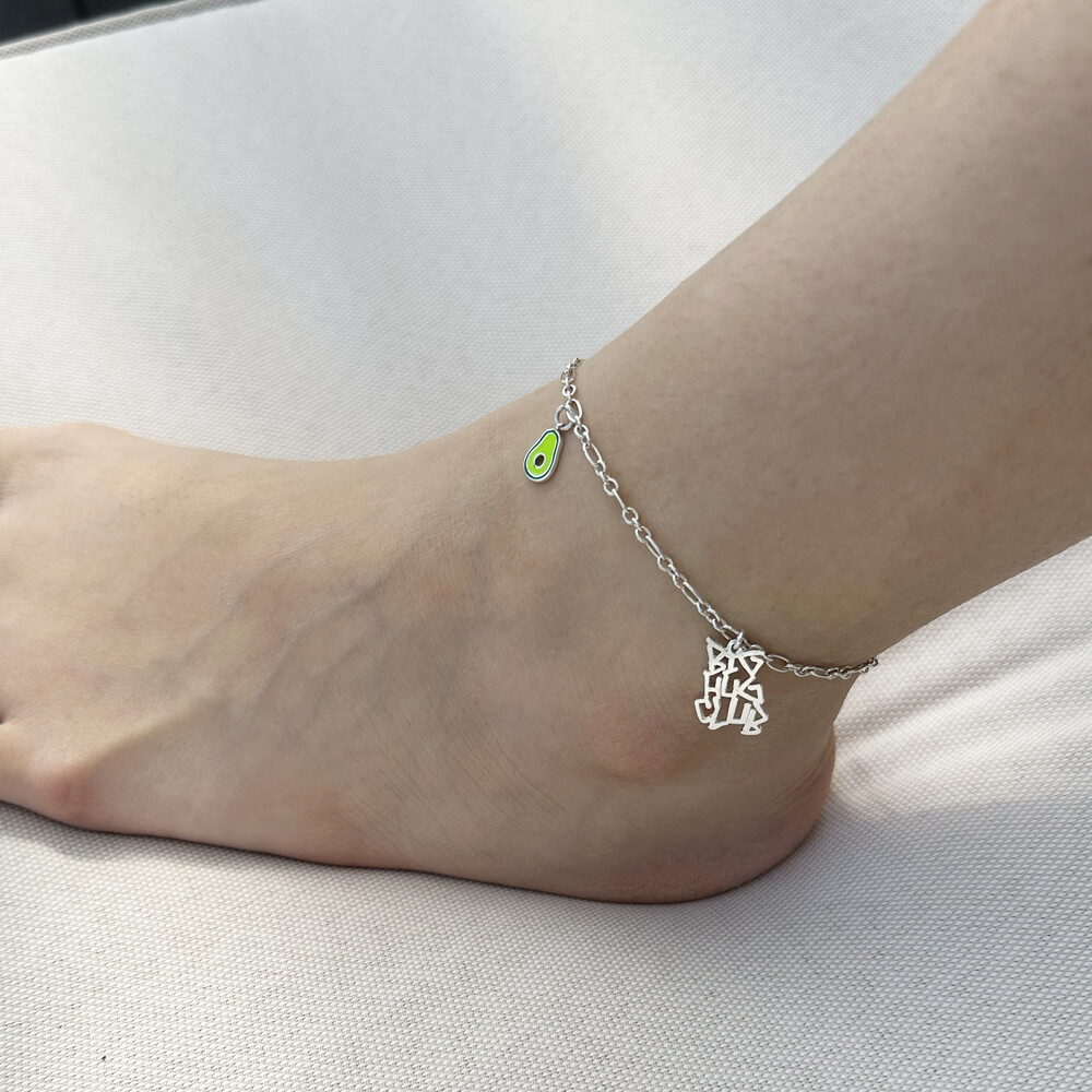 여름에 착용하기 좋은 반짝이는 실버 체인의 앵클렛입니다.