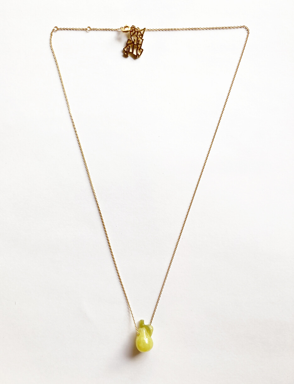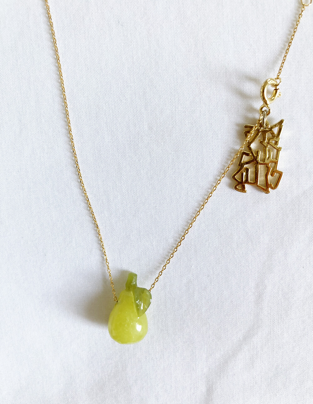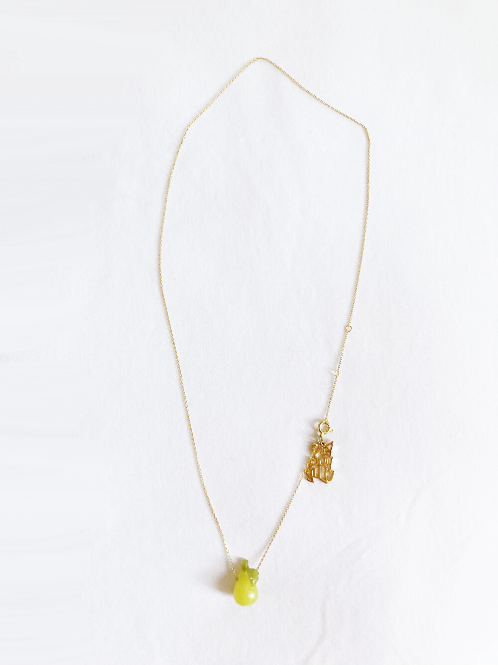 레모나이트로 만든 서양배 모양의 펜던트와 925 실버 체인에 18k 도금입니다.
