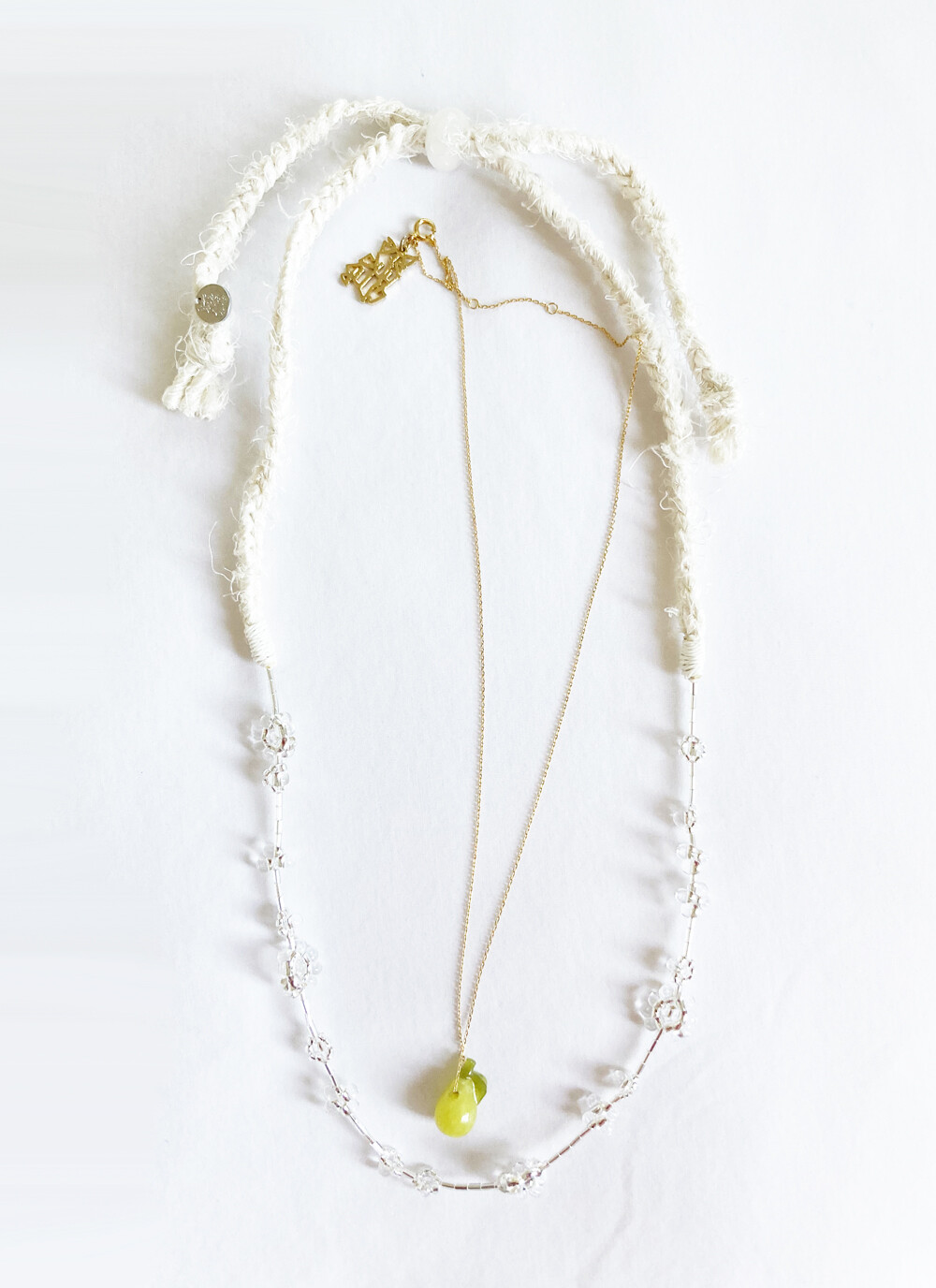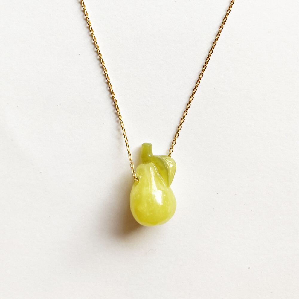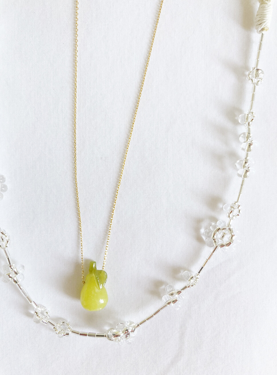레모나이트로 만든 서양배 모양의 펜던트와 925 실버 체인에 18k 도금입니다.