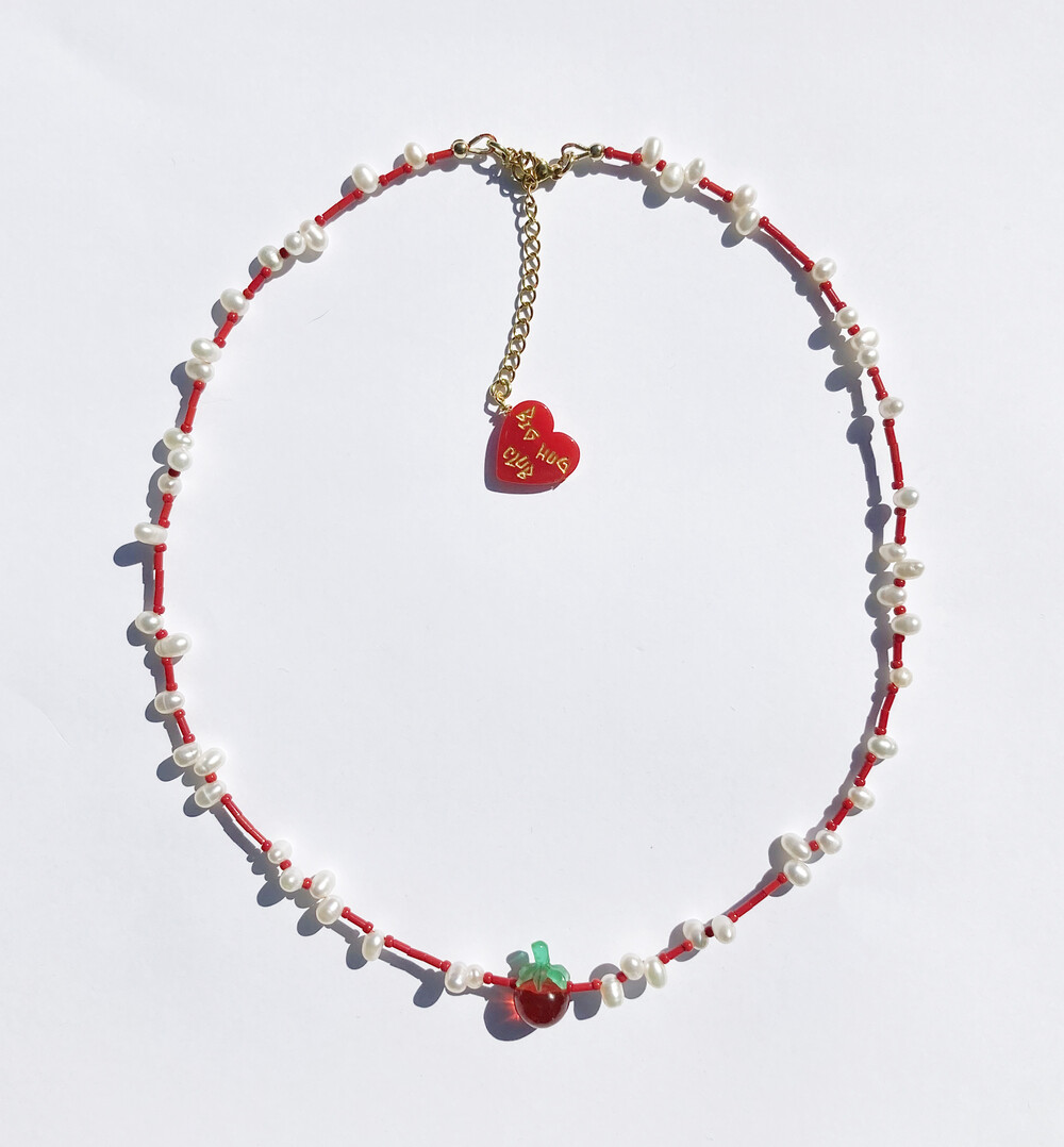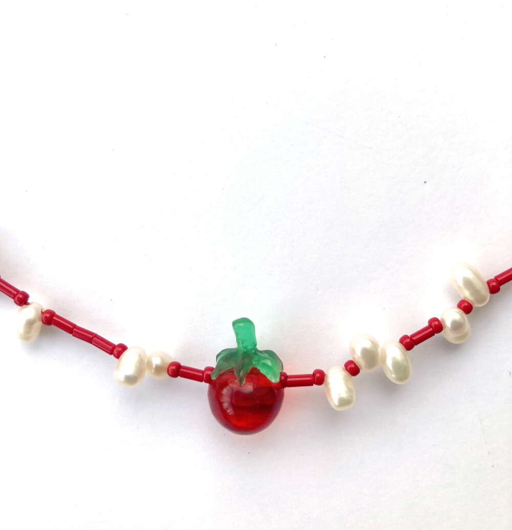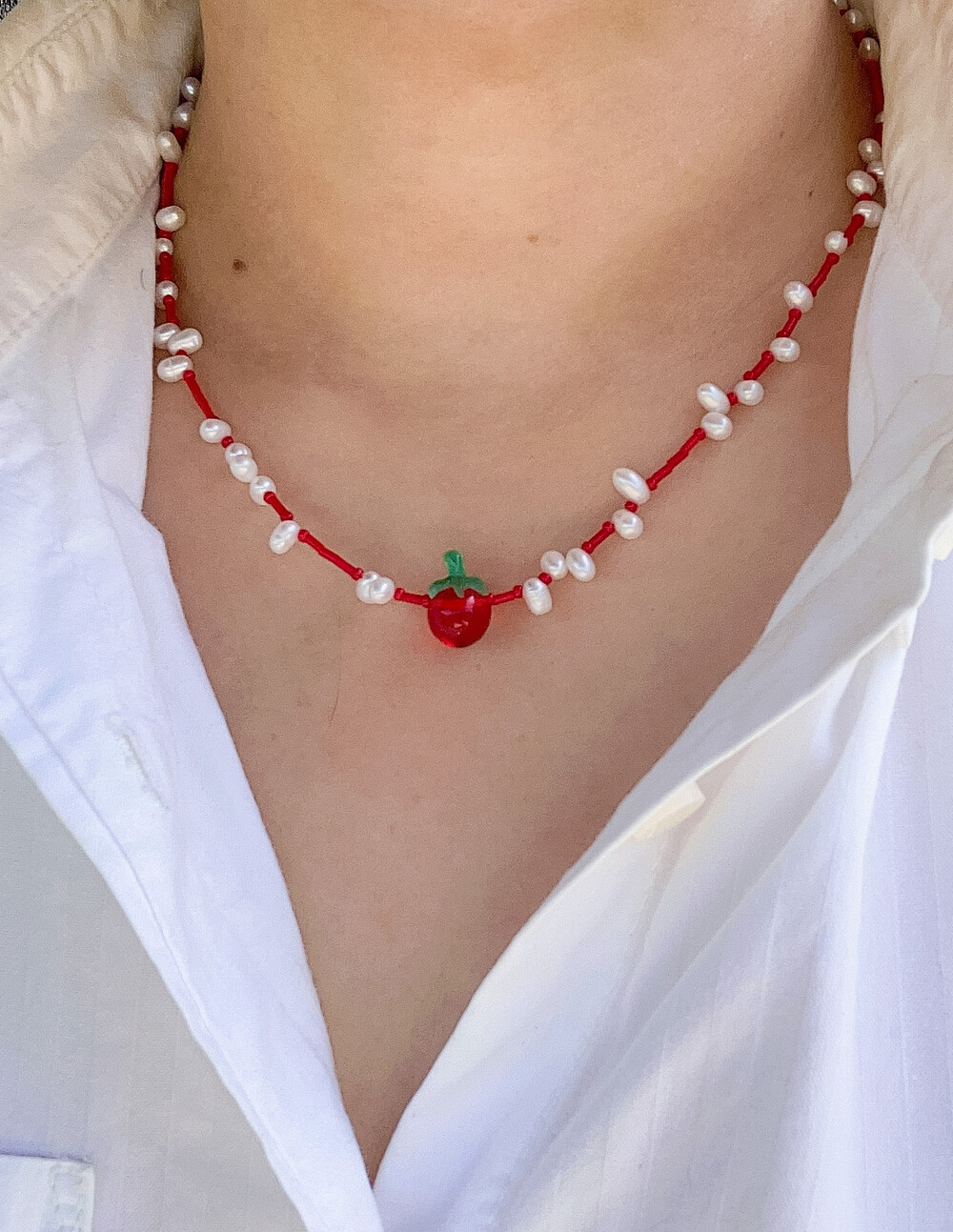 Material: synthetic glass, fresh water pearls , glass, stringing wire