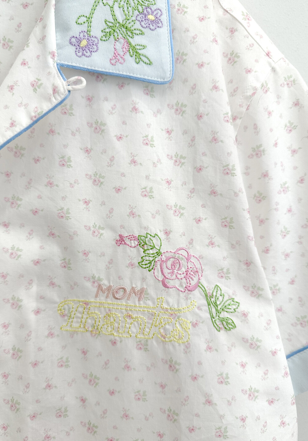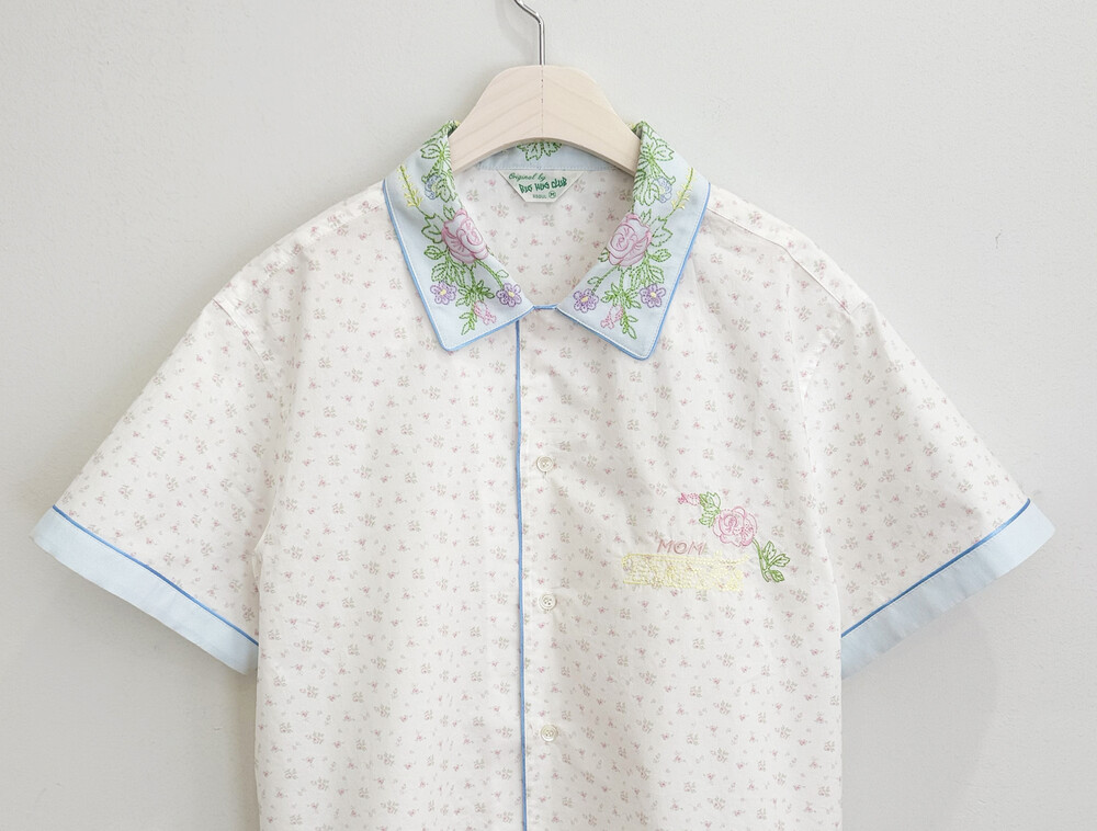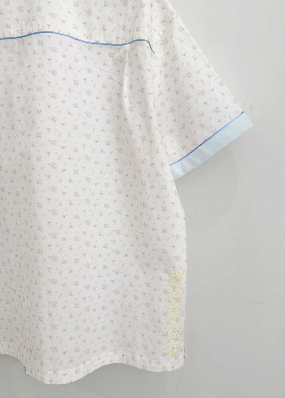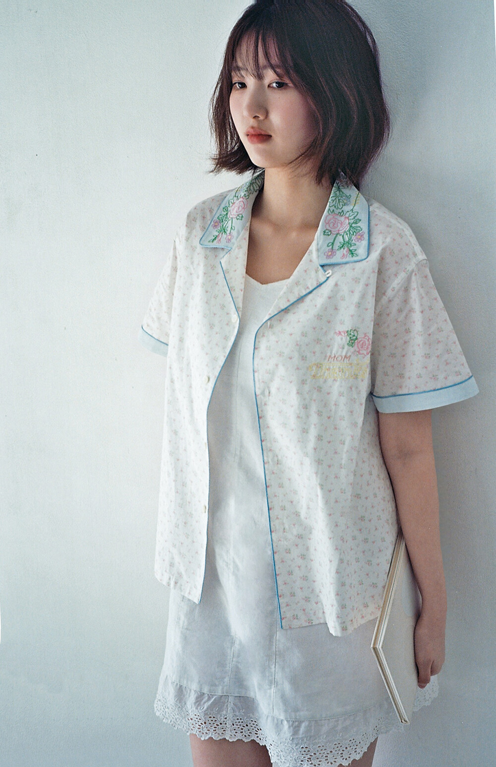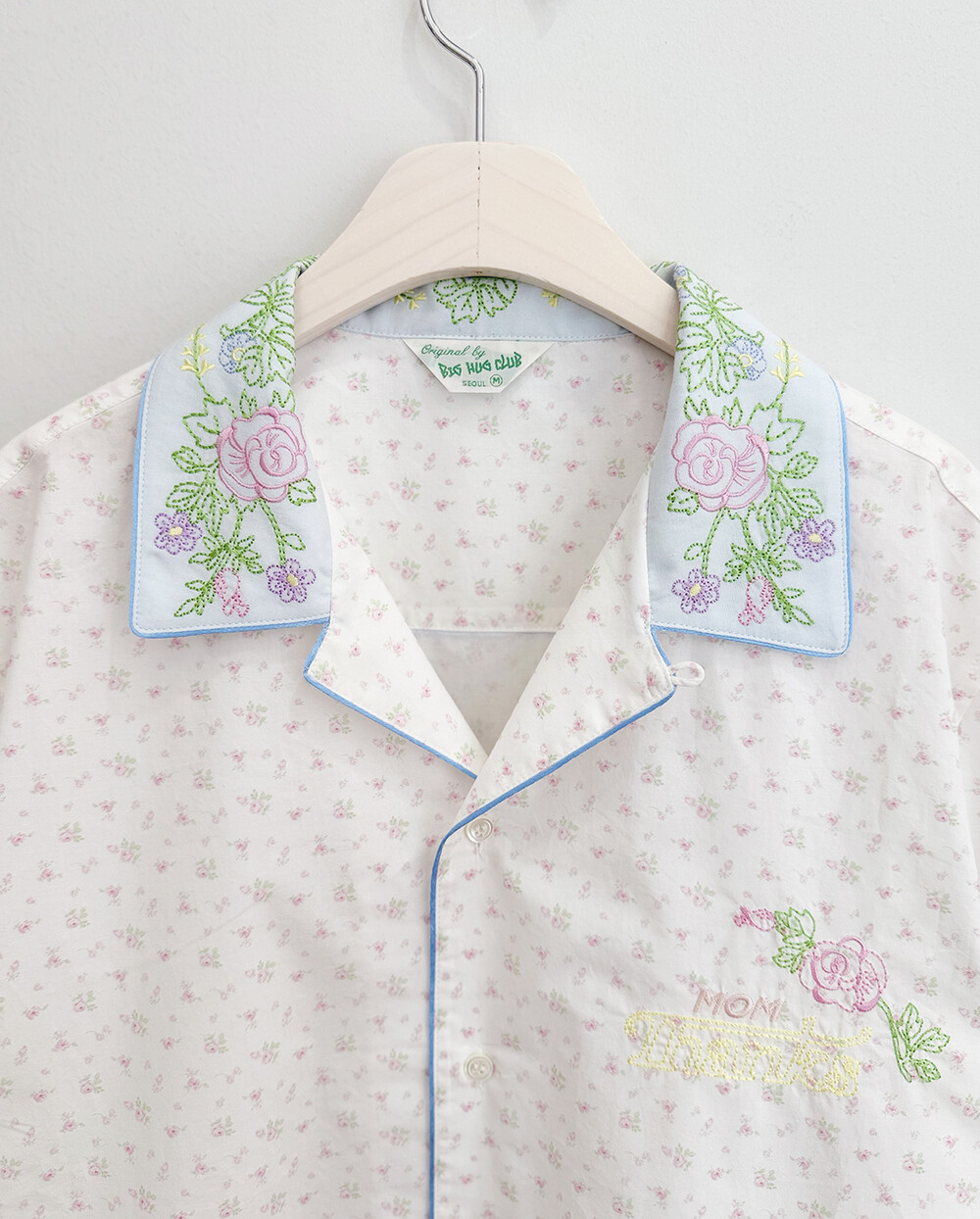 100% 코튼 위에 섬세하게 디지털 프린트된 장미와 새로운 컬러의 자수가 조화를 이루고,