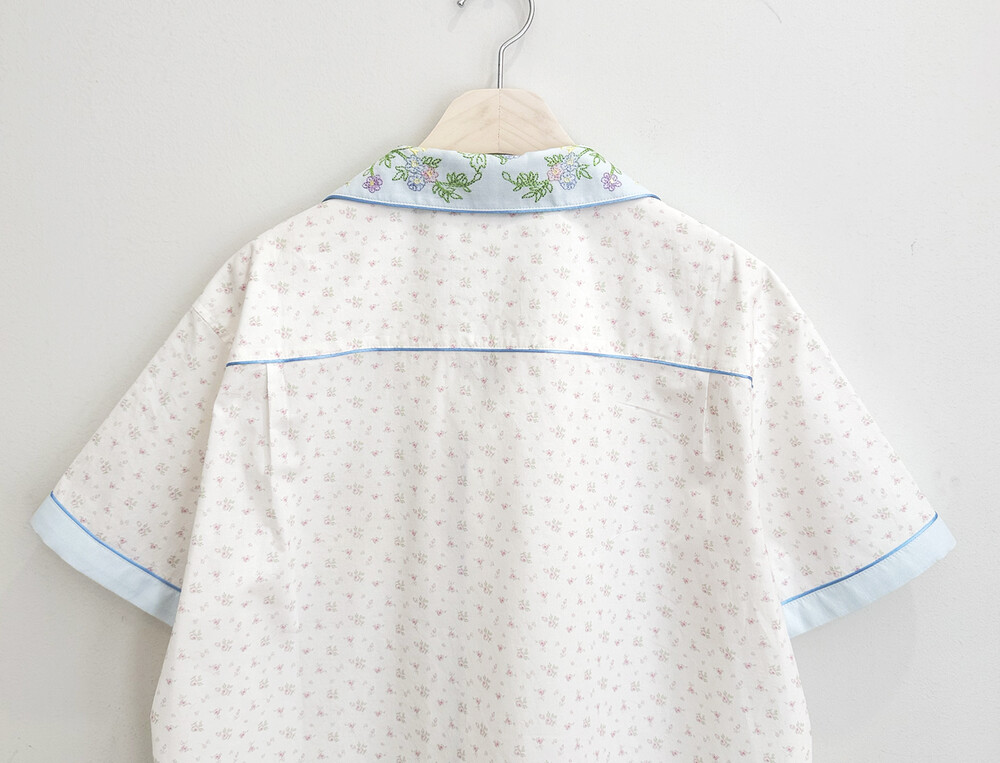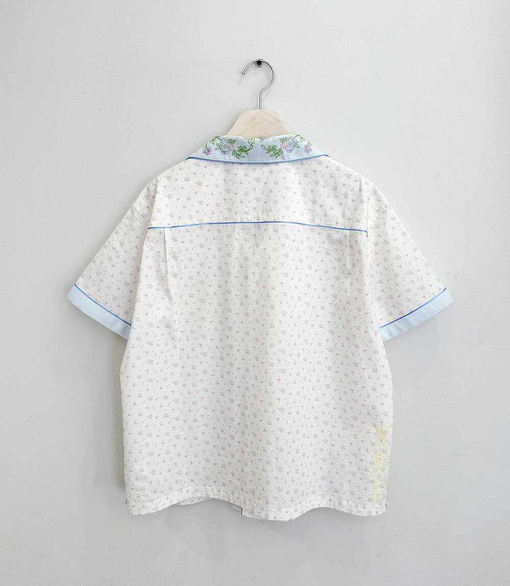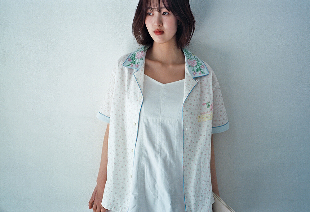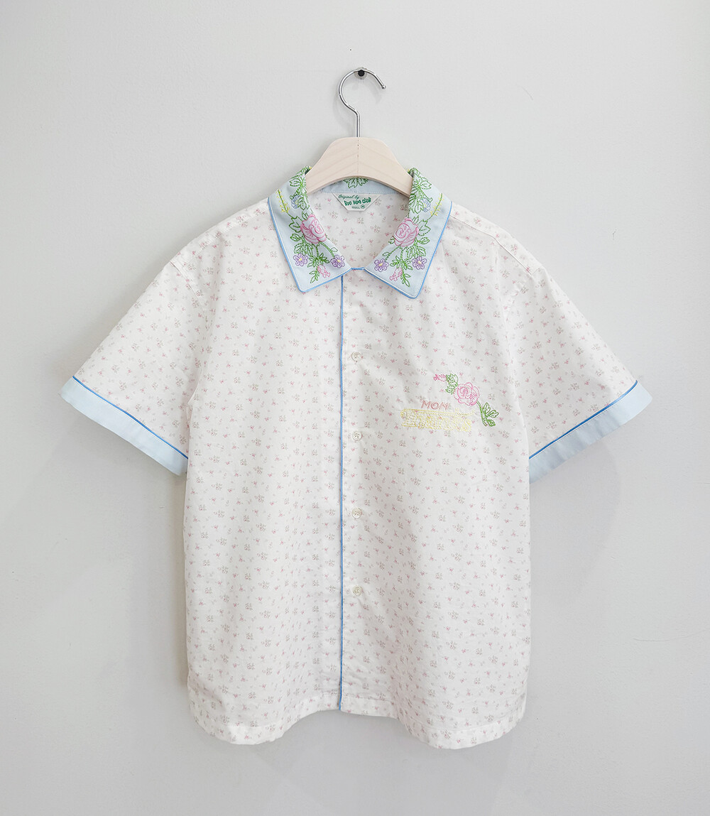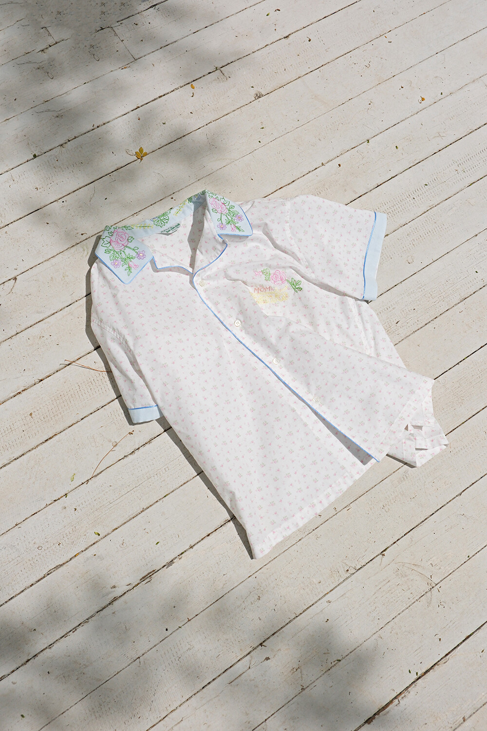 100% 코튼 위에 섬세하게 디지털 프린트된 장미와 새로운 컬러의 자수가 조화를 이루고,
