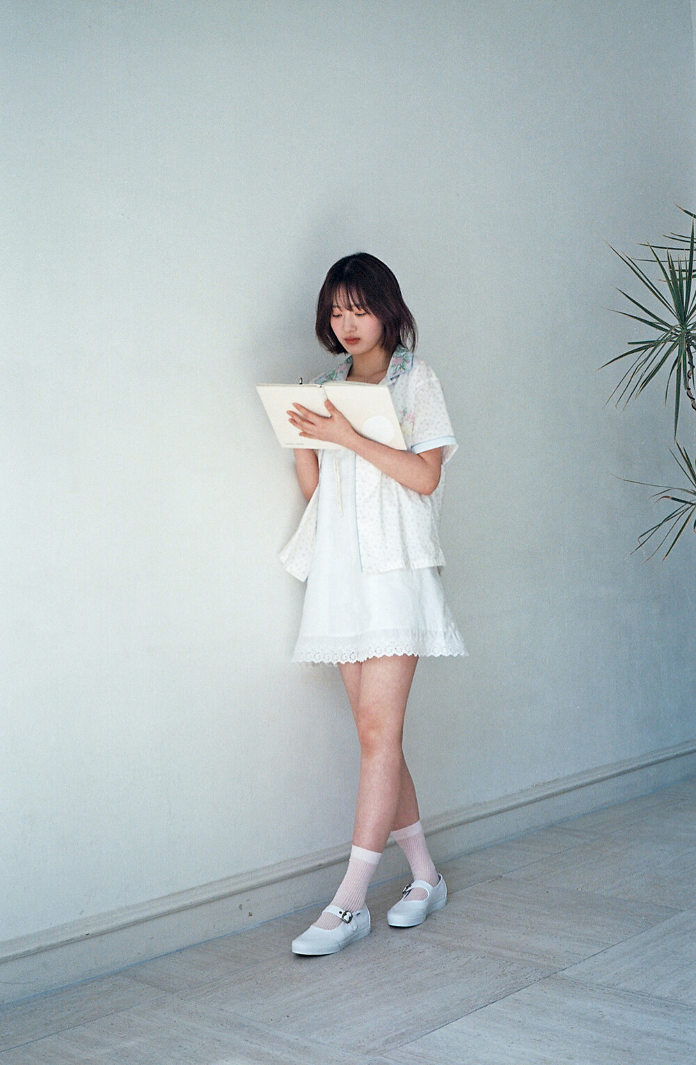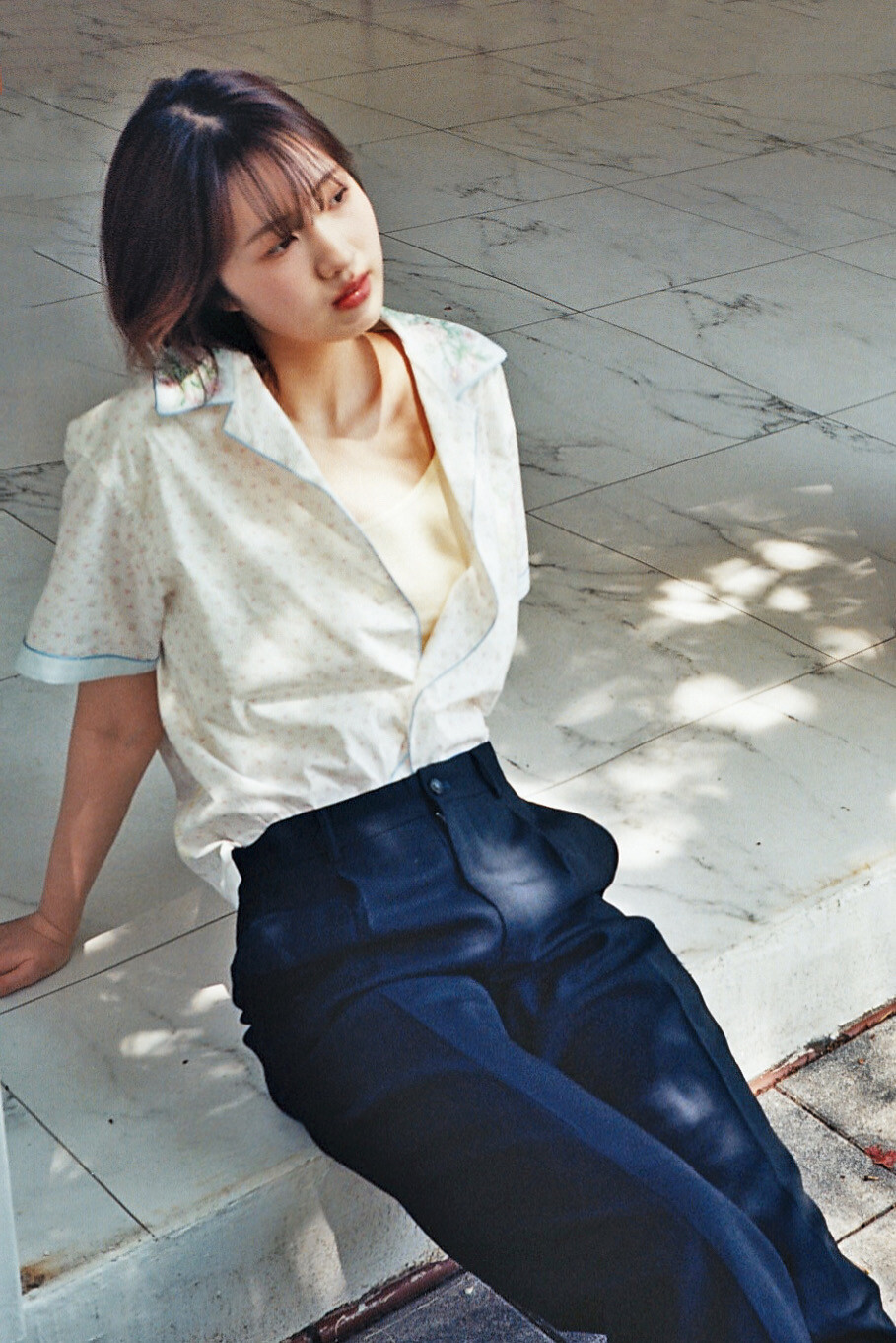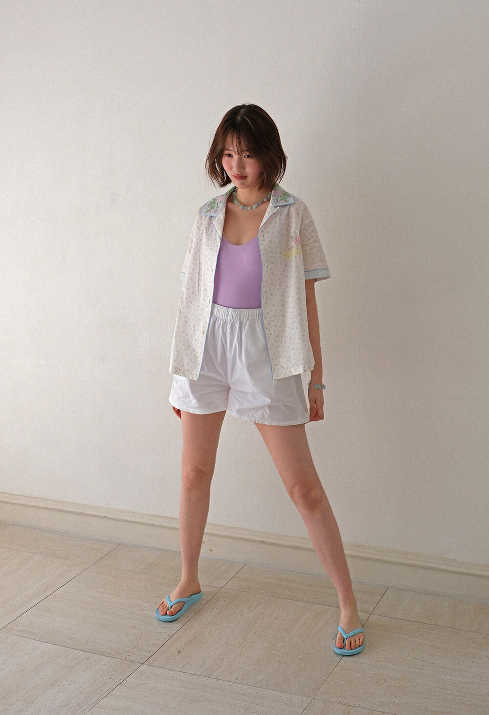 카라와 앞라인은 파이핑으로 마감해 마치 홈웨어처럼 편안한 분위기를 완성합니다.