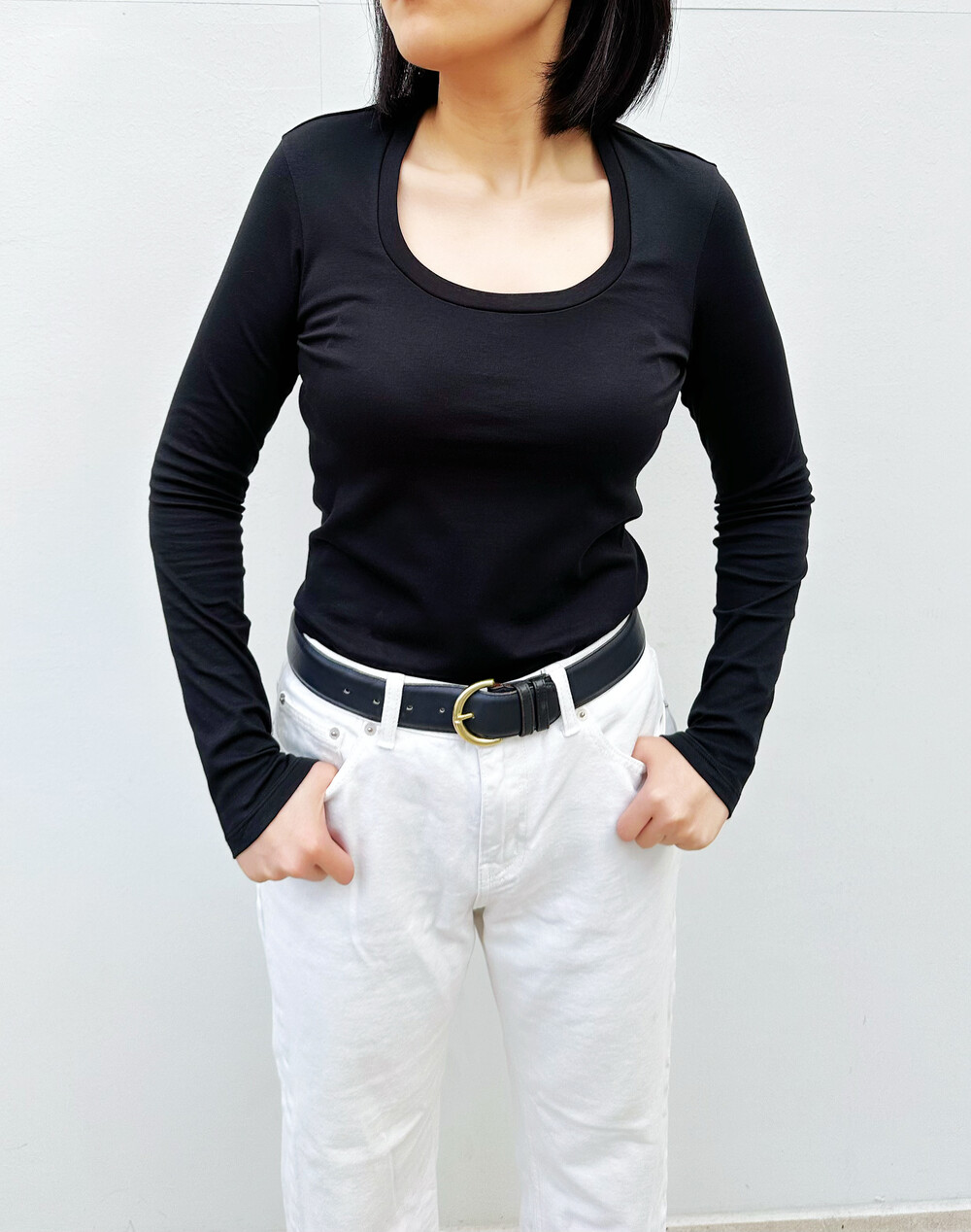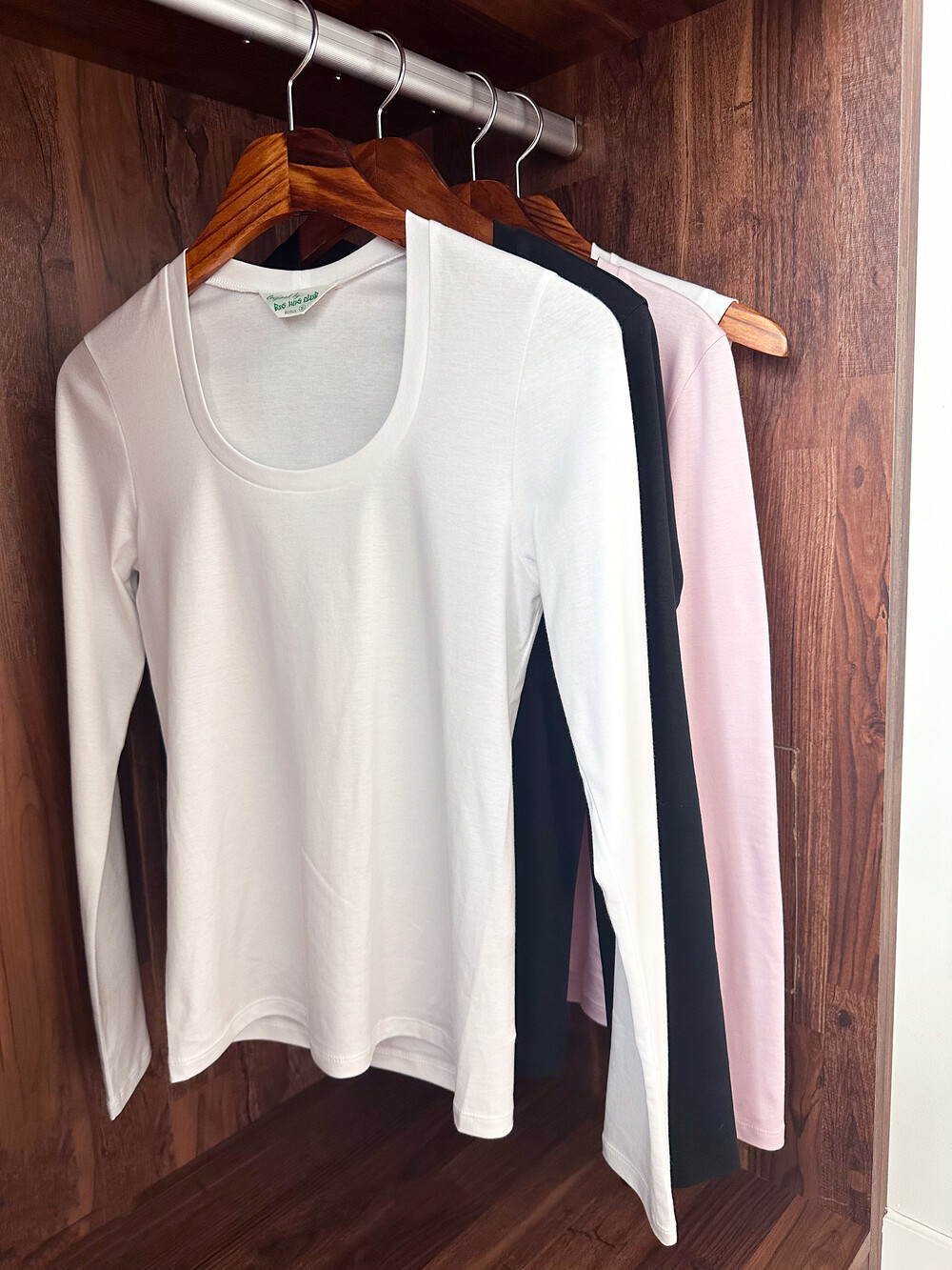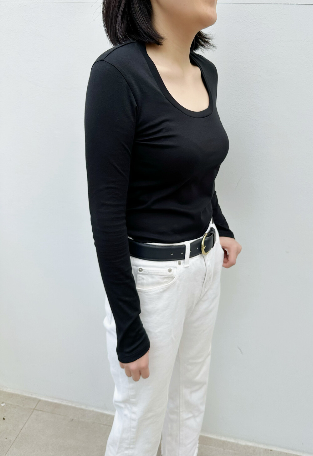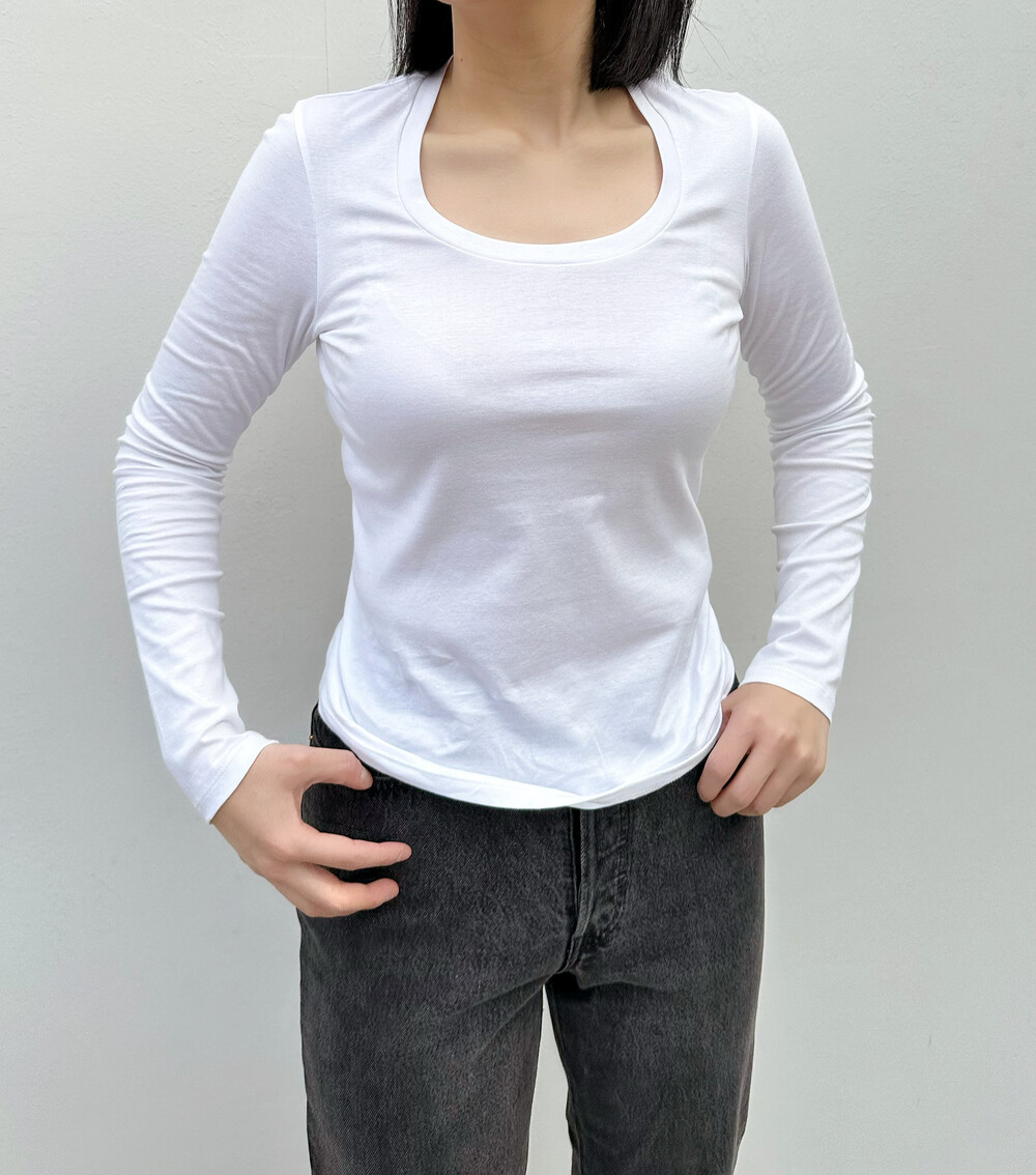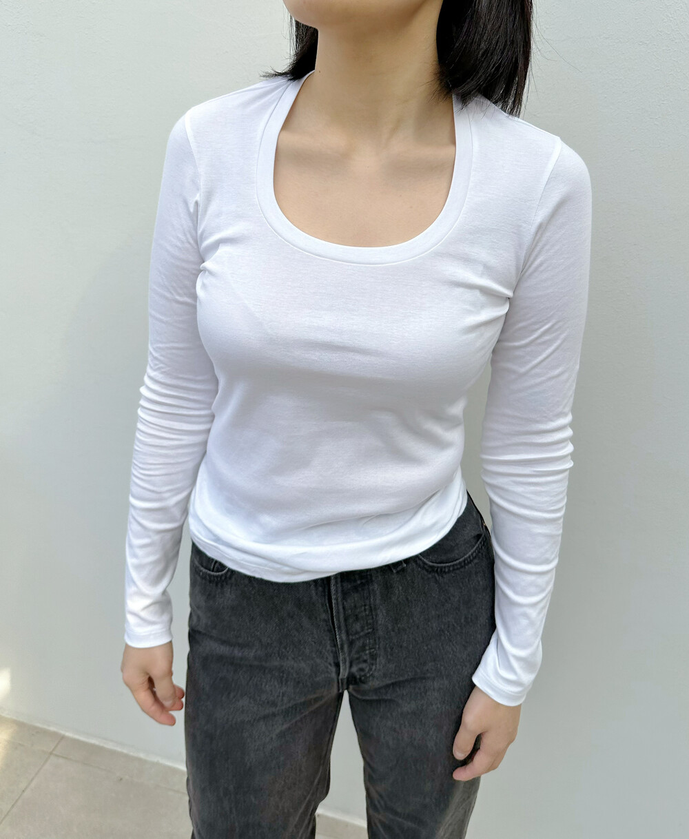 아름다운 U 넥크라인의 긴팔 티셔츠 입니다.
