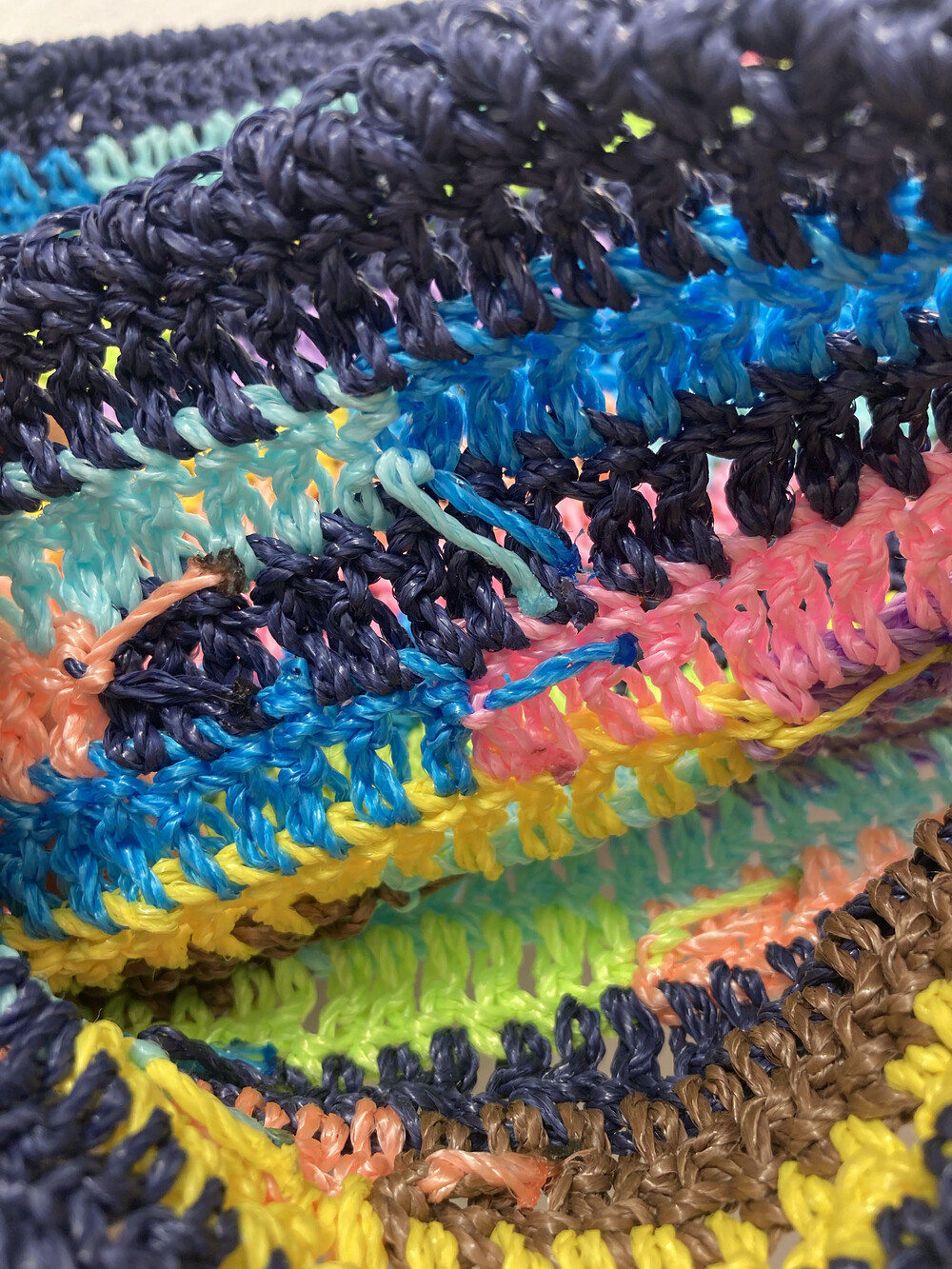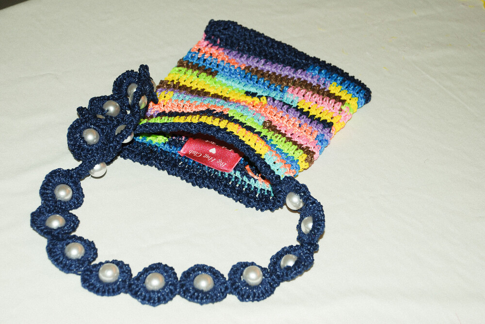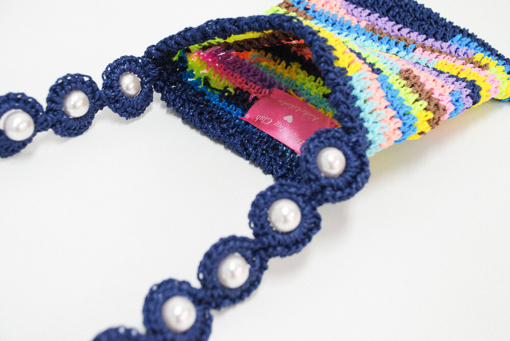 또한 여러 가지 색상의 실을 사용하여 니팅한 제작 특성상 가방 내부에 실 연결 매듭이 보입니다.